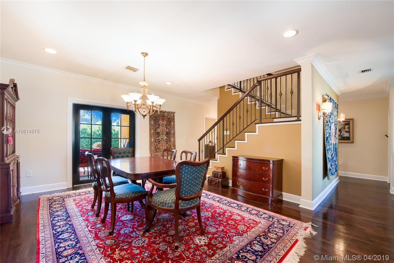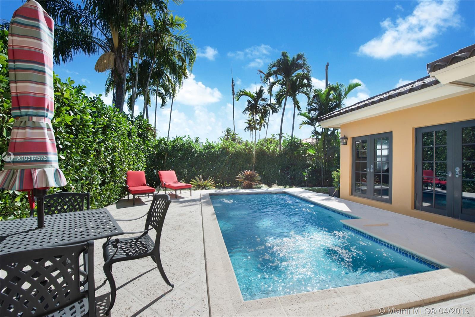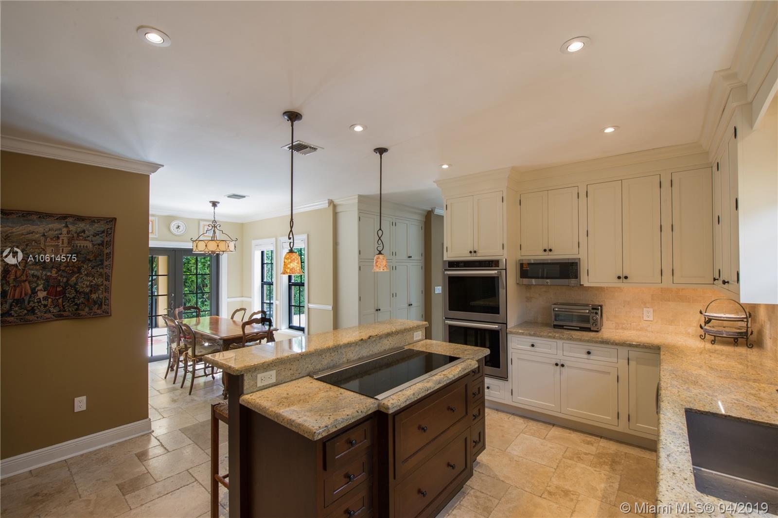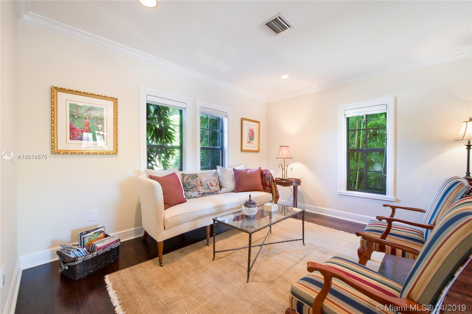 Beautifully remodeled Coral Gables home boasts backyard oasis with pristine heated saline pool and covered patio as well as quaint balconies off of each upstairs bedroom. Custom made wrought iron and impact resistant glass Majestic Entries doors open to foyer, living and dining rooms with hard wood floors and impact windows throughout. Stellar kitchen offers top-of-the-line stainless steel appliances, white wood cabinets, induction cooktop, and granite countertops. Adjacent to the kitchen is a cozy dinette and ample storage. French country stone floors in kitchen, dinette, and family room. Expansive remodeled master bathroom includes large walk-in shower, a second washer/dryer and two walk in closets. An abundance of spaces to relax and enjoy Florida living.