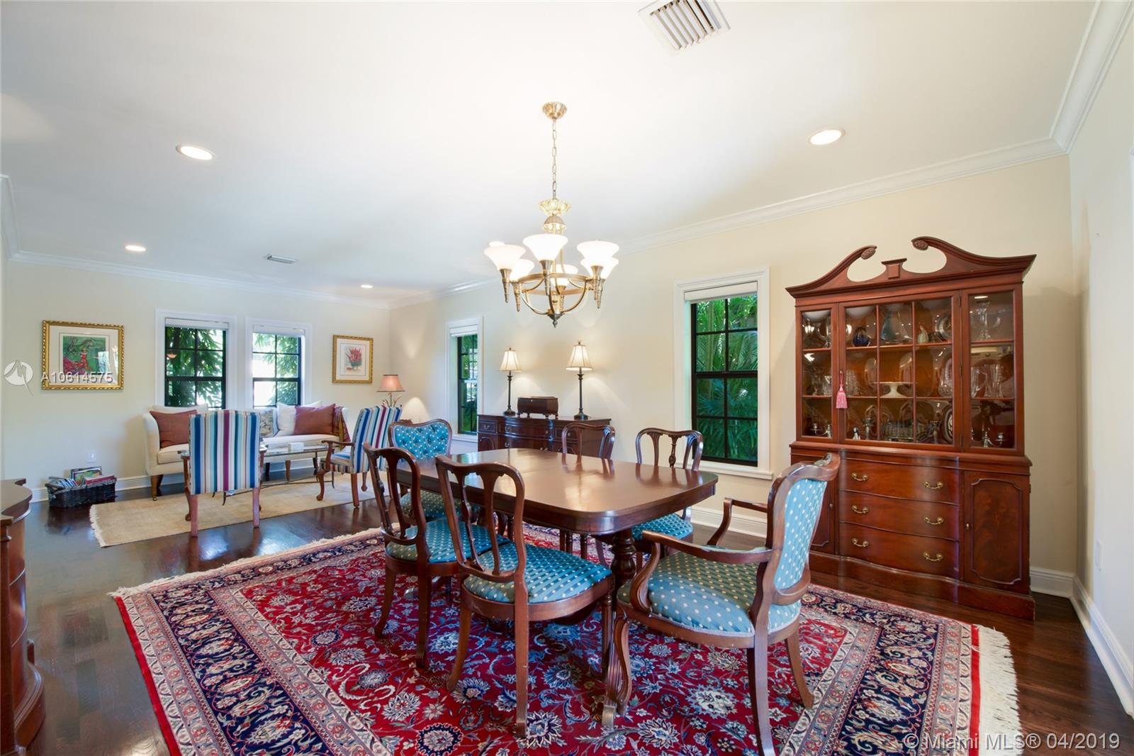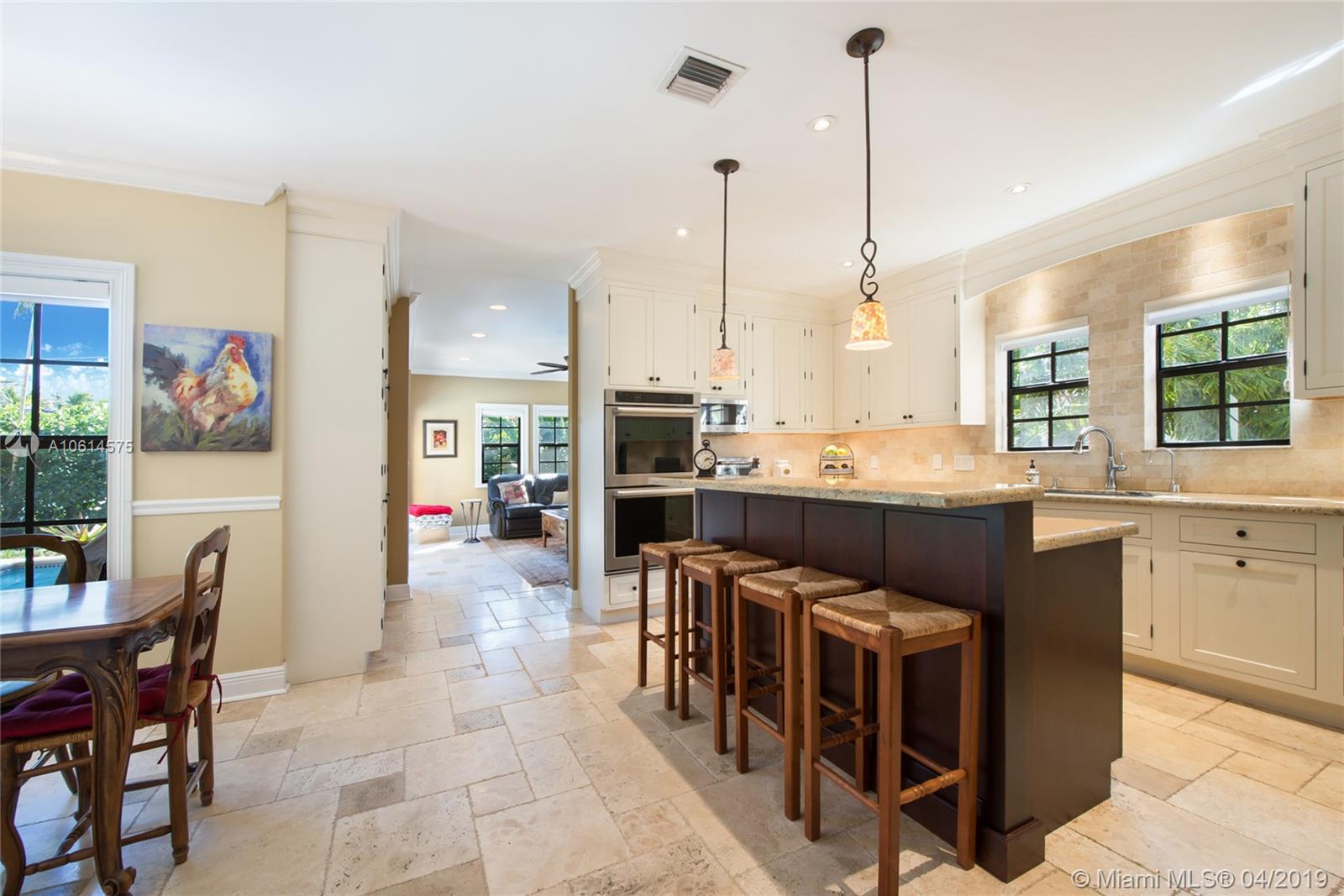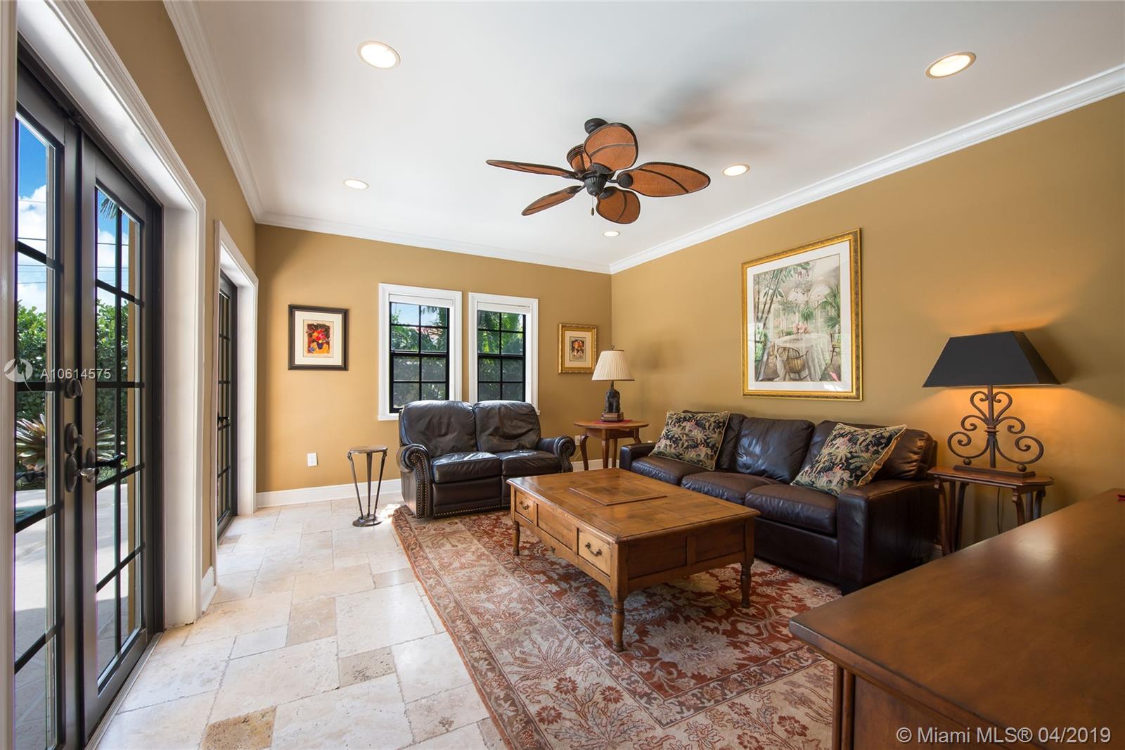 Beautifully remodeled Coral Gables home boasts backyard oasis with pristine heated saline pool and covered patio as well as quaint balconies off of each upstairs bedroom. Custom made wrought iron and impact resistant glass Majestic Entries doors open to foyer, living and dining rooms with hard wood floors and impact windows throughout. Stellar kitchen offers top-of-the-line stainless steel appliances, white wood cabinets, induction cooktop, and granite countertops. Adjacent to the kitchen is a cozy dinette and ample storage. French country stone floors in kitchen, dinette, and family room. Expansive remodeled master bathroom includes large walk-in shower, a second washer/dryer and two walk in closets. An abundance of spaces to relax and enjoy Florida living.