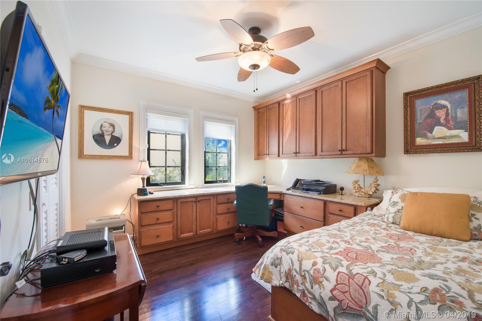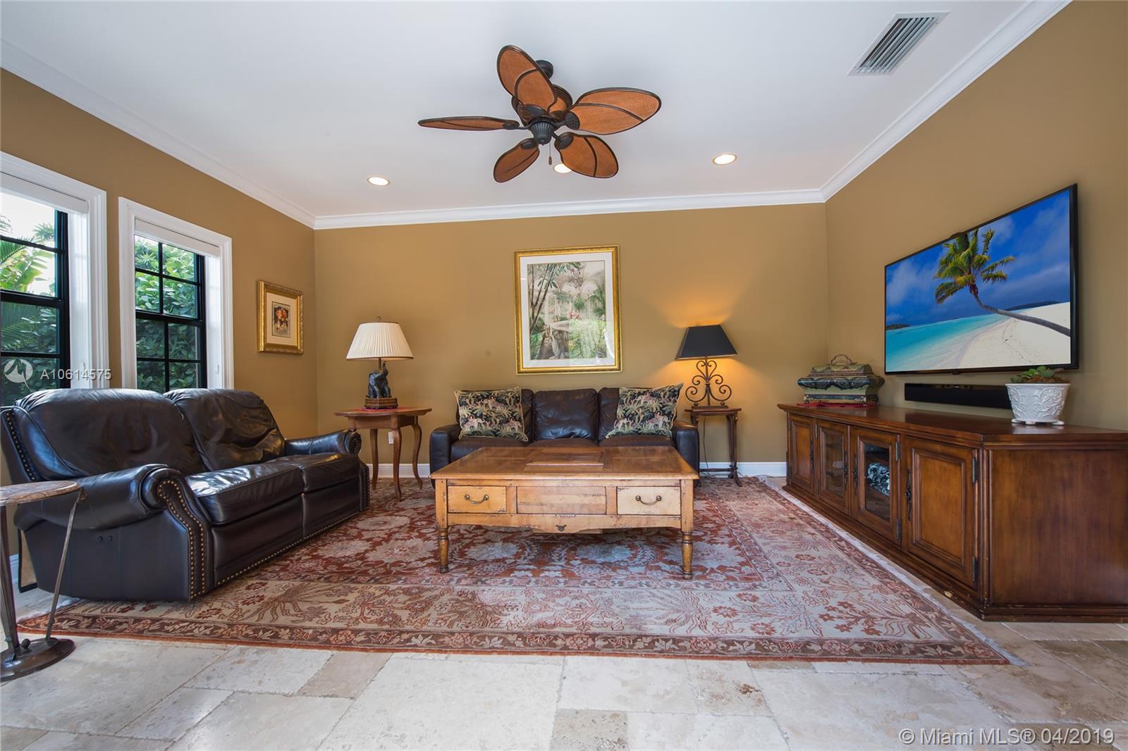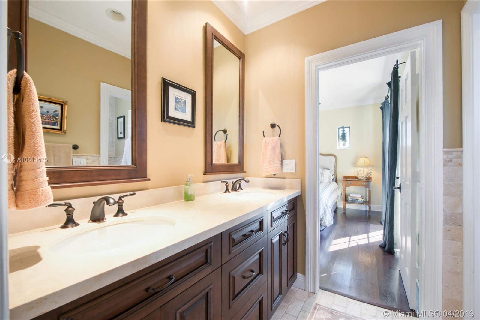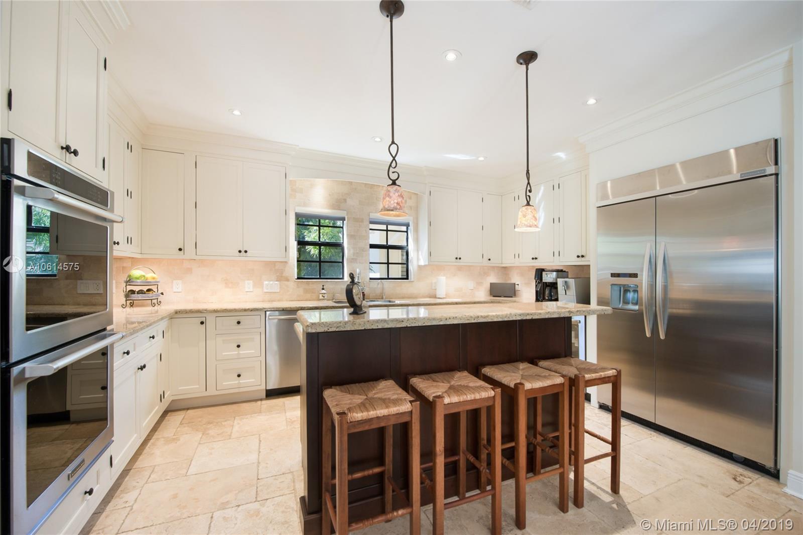 Beautifully remodeled Coral Gables home boasts backyard oasis with pristine heated saline pool and covered patio as well as quaint balconies off of each upstairs bedroom. Custom made wrought iron and impact resistant glass Majestic Entries doors open to foyer, living and dining rooms with hard wood floors and impact windows throughout. Stellar kitchen offers top-of-the-line stainless steel appliances, white wood cabinets, induction cooktop, and granite countertops. Adjacent to the kitchen is a cozy dinette and ample storage. French country stone floors in kitchen, dinette, and family room. Expansive remodeled master bathroom includes large walk-in shower, a second washer/dryer and two walk in closets. An abundance of spaces to relax and enjoy Florida living.