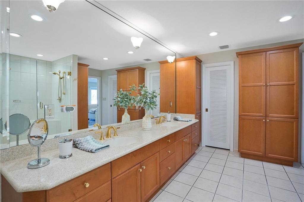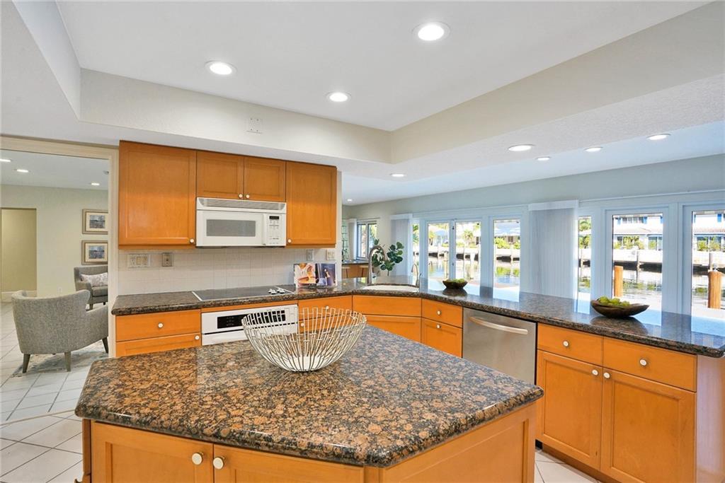 Fronting 100 ft of deepwater with dockage, this single story gated 4 bedroom, 3.5 bath, split-bedroom estate sits just 4 homes from the Intracoastal Waterway on a quiet cul-de-sac street offering ocean access with no fixed bridges. The backyard has a large resort-style outdoor entertainment area. The foyer flows into the family great room offering an abundance of natural light through a wall of glass overlooking the water. The exceptionally large Master Suite offers a sitting area/office, both with water/pool views. Master bath has glass enclosed shower, jetted tub, separate water closet, double sink vanity, dual walk in closets with built-ins. Kitchen has granite counters, wood cabinets. A formal dining room and living room are off the foyer. Generator.