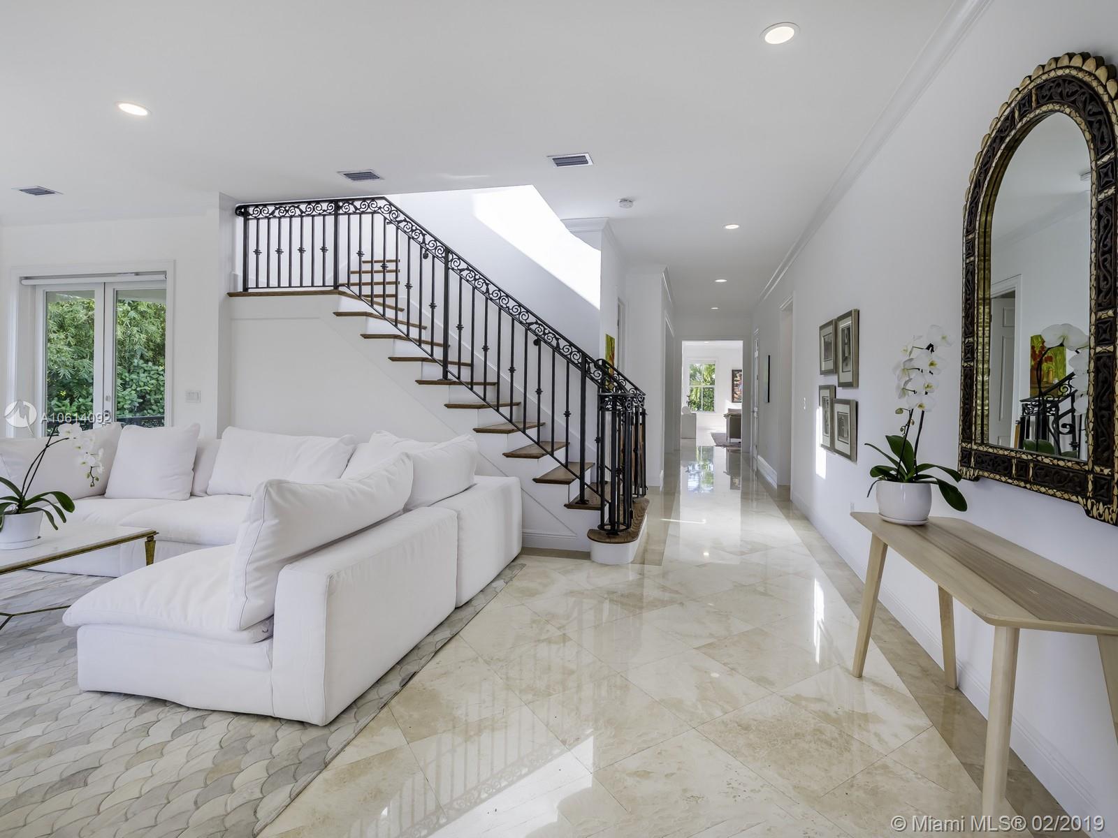 Exquisite island home ideal for family living & entertaining. Just remodeled in 2018 - ready for a quick and easy move-in. Very well built! The elevated home offers high ceilings and natural light throughout. The formal living, dining and great family room give way to a large wrap around terrace overlooking the pool and tropical landscape. The second level offers four bedrooms with en suite baths and a family area for homework and play. Best of all is the perfect location - walking distance to the Yacht Club, excellent schools, restaurants & the Village Green. A pleasure to visit!