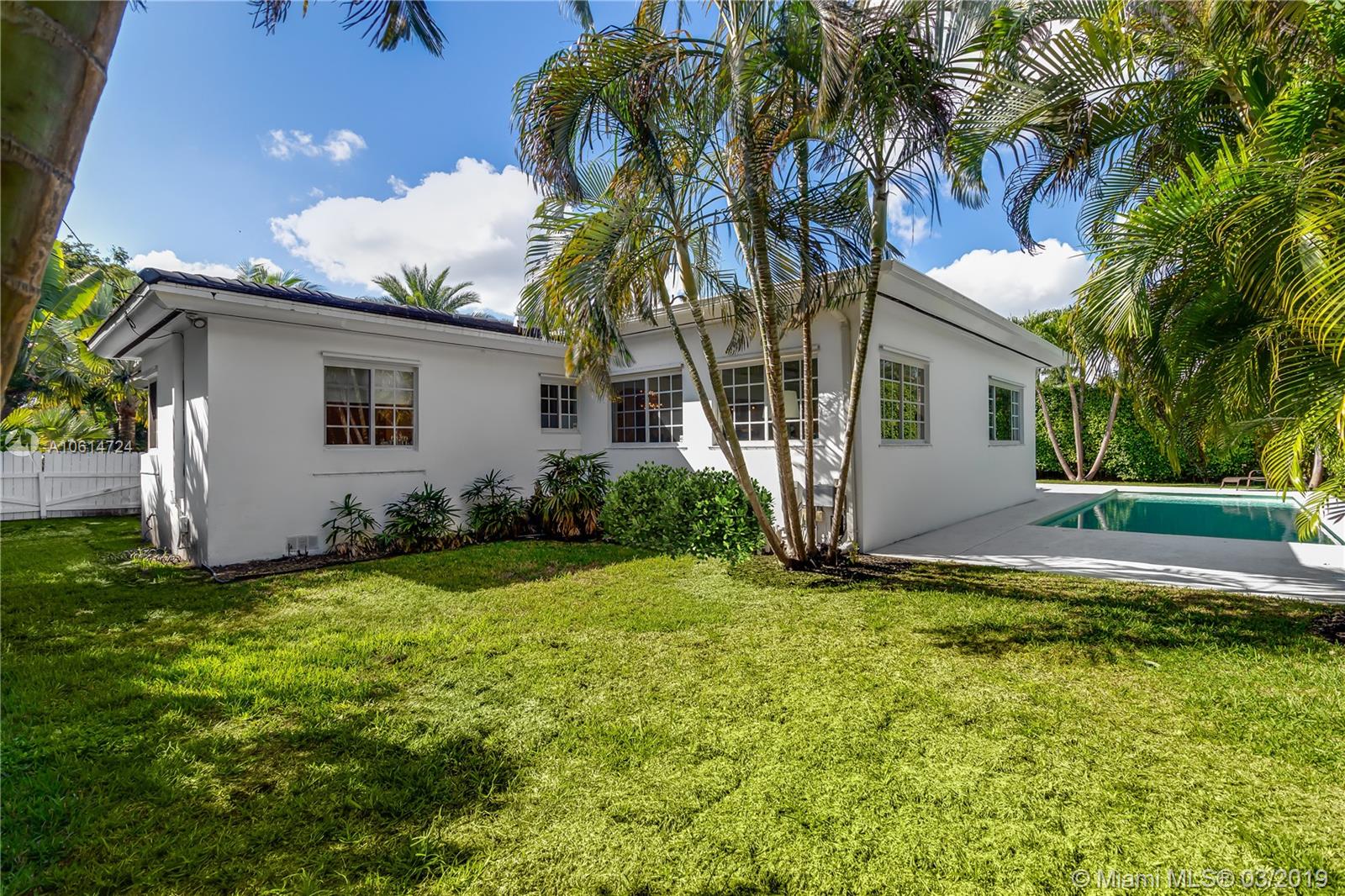 Immerse yourself in this stylish rejuvenated house w/designer finishes & a warm family atmosphere. 4 bedrooms (1 is used as an office) & 2 full baths. Located in the lush community of Miami Shores. Completely renovated, picture perfect kitchen w/newly installed elegant cabinets & an Italian marble accent-wall with dining bar. Beautiful Terrazzo floors accentuate the home's elegant style. Wood floors, well maintained & recently upgraded. Open layout, perfect for entertaining, with great natural light. 2 car garage with A/C perfect for a home gym & great for storage. Windows with shutters, & a new roof. Pool & patio with outdoor shower. Private fenced yard & nice landscaping. Near shopping, restaurants & Biscayne Bay. Quiet no-through street. Exclusive neighborhood with great schools.