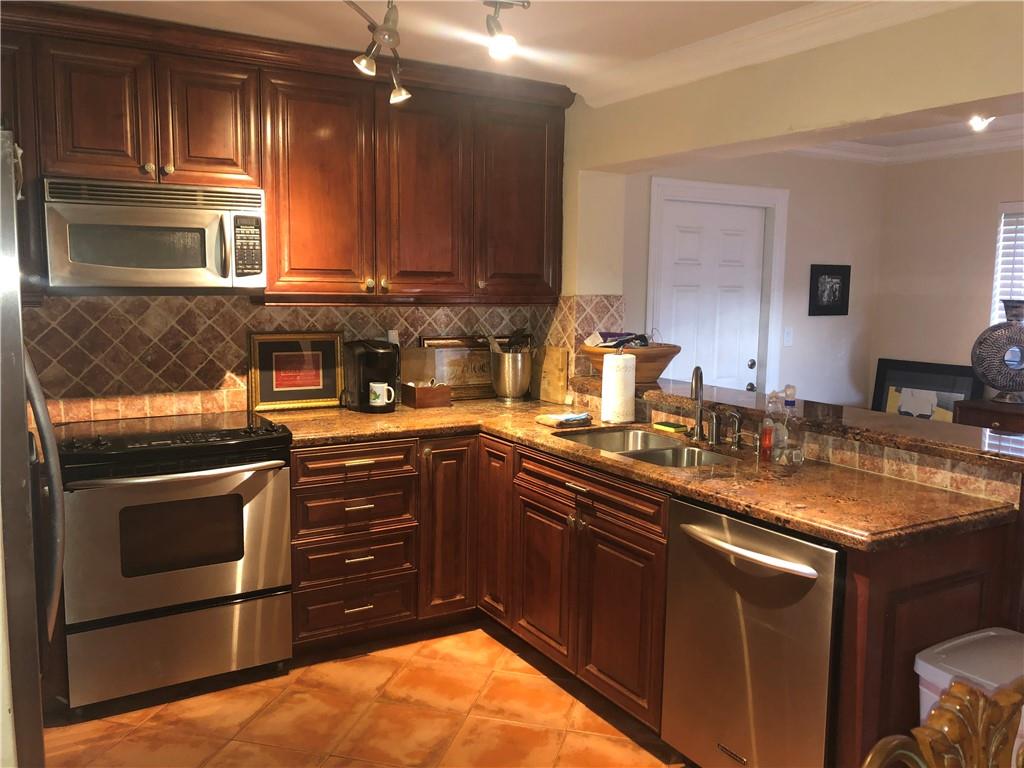 >>> REDUCED <<< MOVE-IN READY! Beautifully renovated 3BR, 2BA home with family room and carport in great neighborhood, close to beach, shopping, golf, tennis, etc...Split floorplan, spacious eat-in kitchen w/maple cabinets, granite counters, stainless steel appliances. Mexican tile in kitchen and family room, harwood floors in living room and master bedroom, carpet in other 2 bdrms. Renovated bathrooms, w/travertine & slate in guest bath. Impact windows & doors, newer roof and A/C. Inside laundry room w/washer & dryer. Front yard nicely landscaped, with wood deck patio. Private, fully fenced backyard with extensive paver terrace and large shed. Room for a pool!