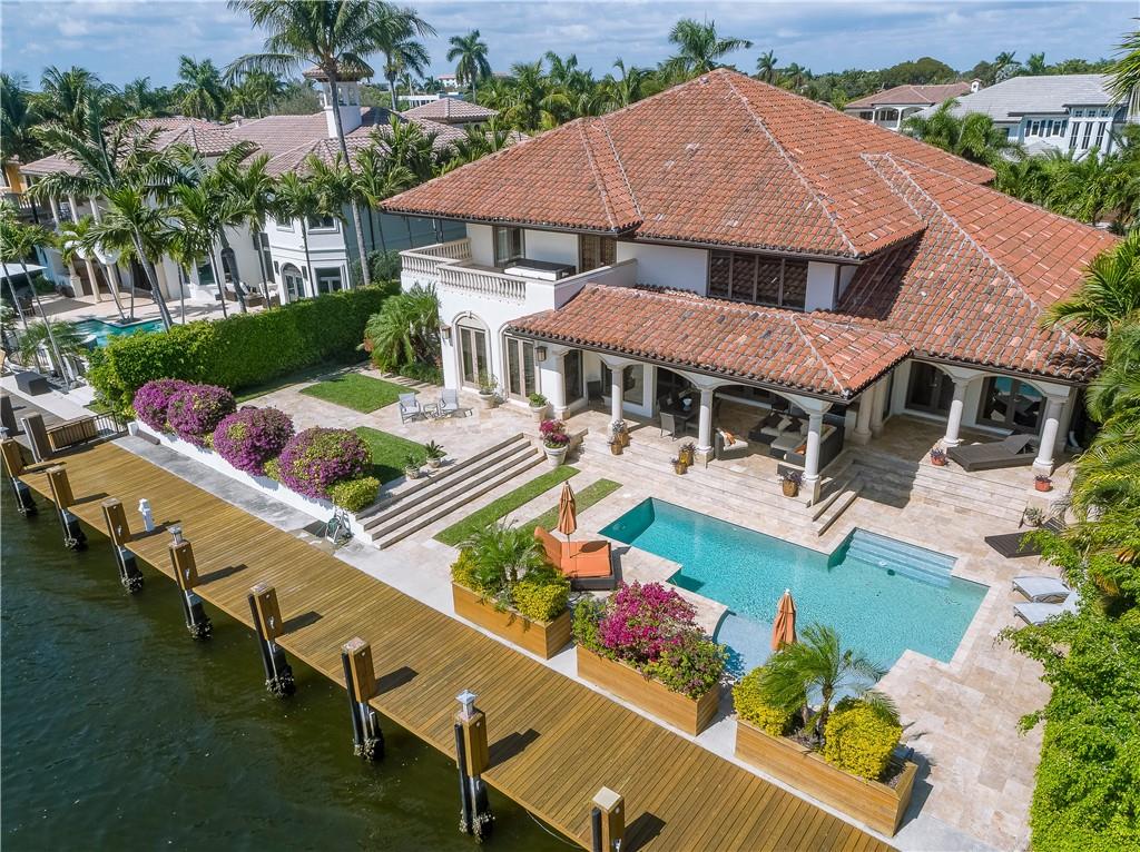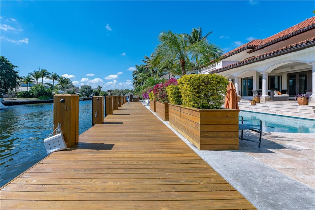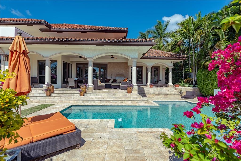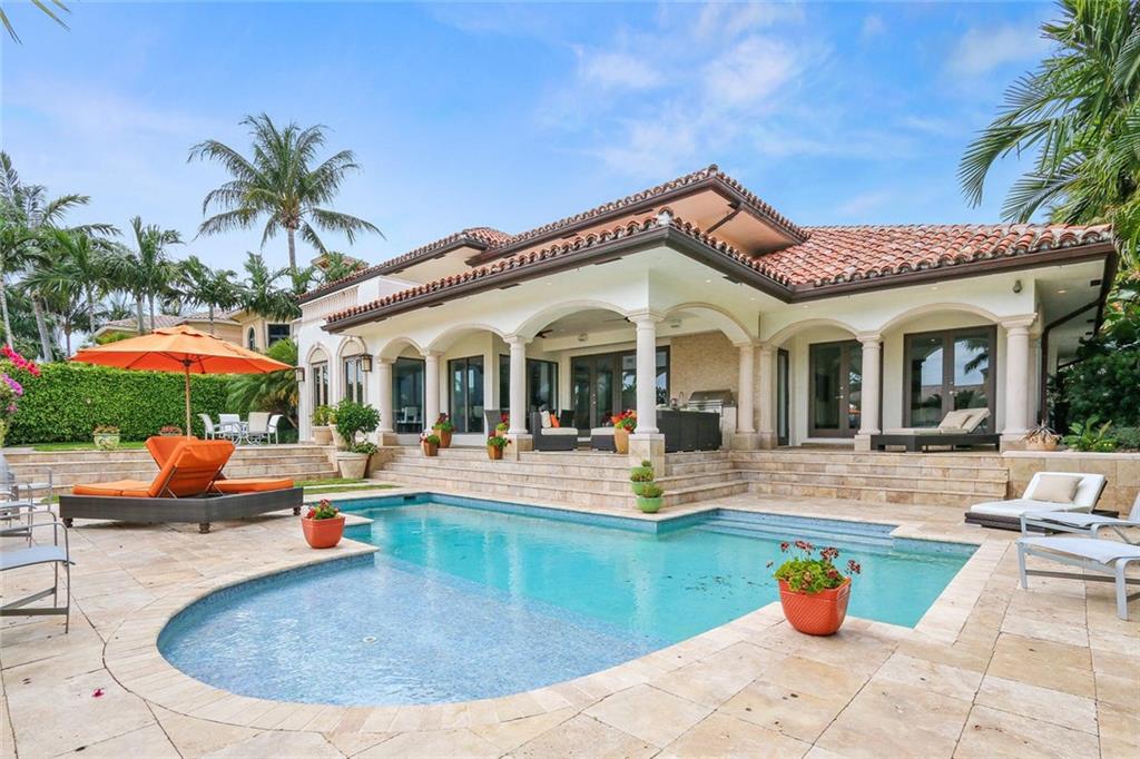 Completely updated, this magnificent waterfront home exemplifies Florida living at its best. The home boasts Pedini Italian Kitchen Cabinets and Miele appliances, two Sub Zero Glass Front Refrigerators, Quartz Countertops, Stainless Steel Island, and built in bar area. The exquisite Master Suite is on the first floor. Formal dining and eat in kitchen are perfect for entertaining. Lush landscaping completes the tropical environment both in front of the house and on the pool patio and waterfront area. The property has 100 feet of waterfront with no fixed bridges. The home also has all impact windows and a gas generator. Superior Coral Ridge location!