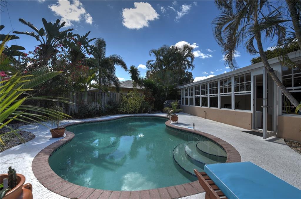 Charming East Fort Lauderdale 2BR/2BA house on quiet street. Perfect home for a family looking to move into the Floranada School District or Buyers just looking to enjoy year-round Florida living with oversized Florida room overlooking pool and tropical yard. Fresh white kitchen with stainless appliances and quartz counters. Split bedroom plan with tile flooring throughout. Indoor utility room with washer, dryer and additional storage/pantry. Two car garage plus circular driveway.