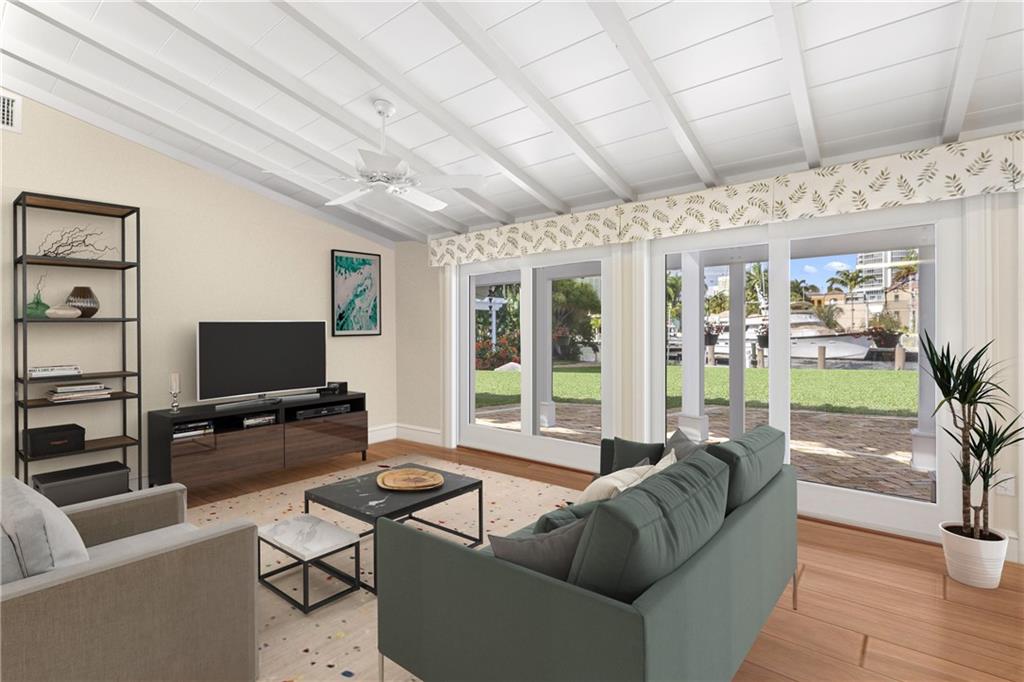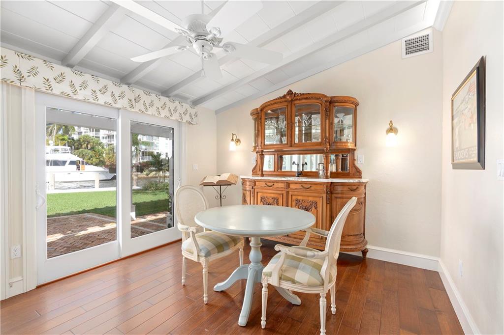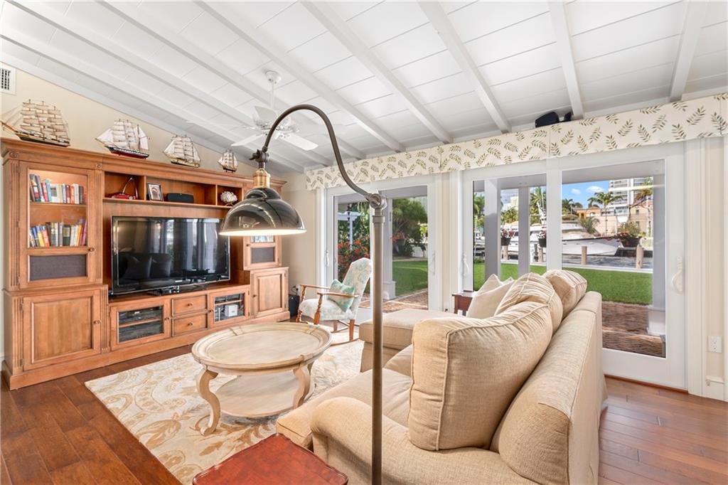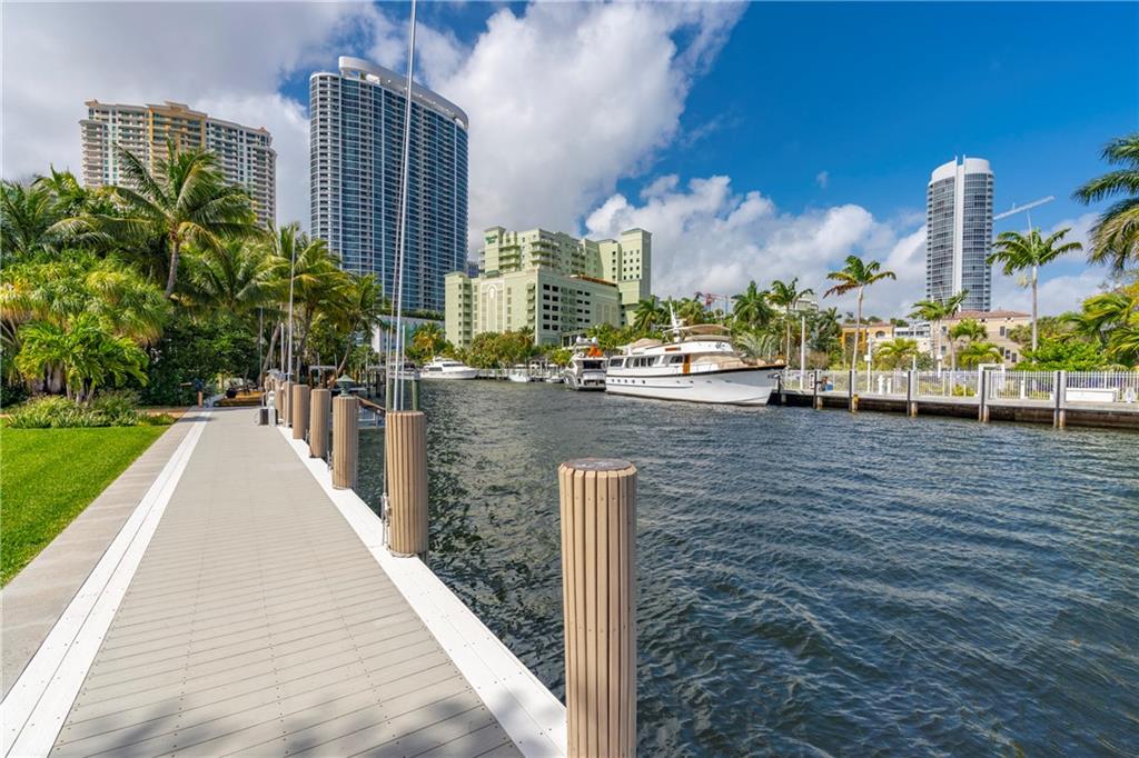 Superbly remodeled Rio Vista estate, yacht owner's dream w/ 106' of deep water frontage directly on Tarpon River. Newer seawall + composite dock w/ 50 amp power & 24,000 lb boat-lift. Enjoy spectacular views & a boat parade every day! Rare ranch-style home has old FL charm, tastefully updated in 2014. Spacious floor plan features beautiful wood + stone flooring, gas fireplace, gourmet kitchen with butler's pantry & water views. Perfect for outdoor entertaining, beautiful large gazebo with summer kitchen and meticulously maintained lawn. Custom lush landscaping throughout. Attached 4 car garage & full A/C workshop. Walking distance to Las Olas-conveniently located near Down Town + major highways! "Original photography & virtual staging in photographs."