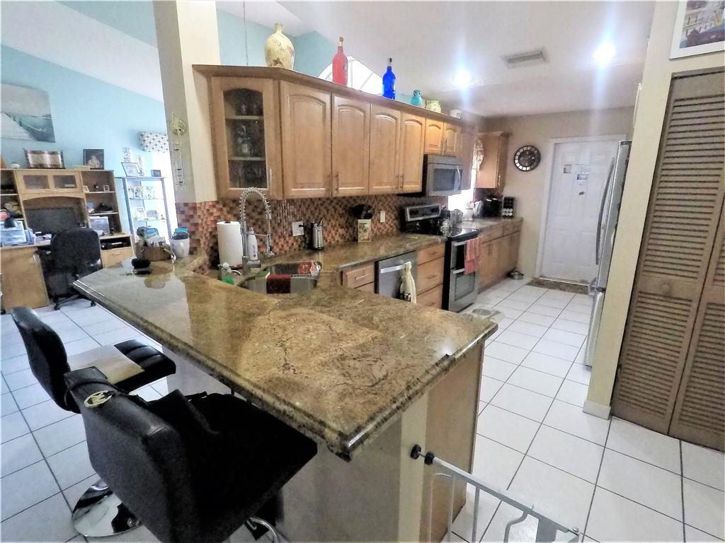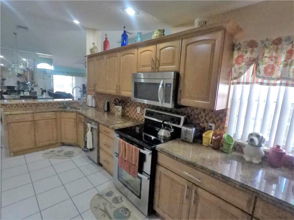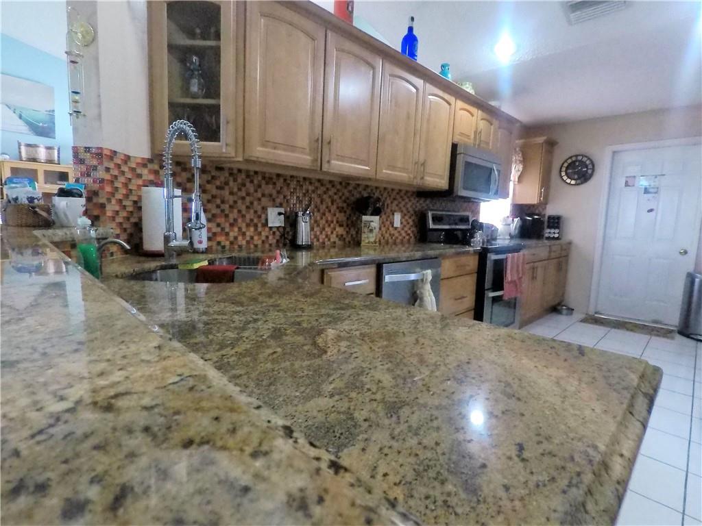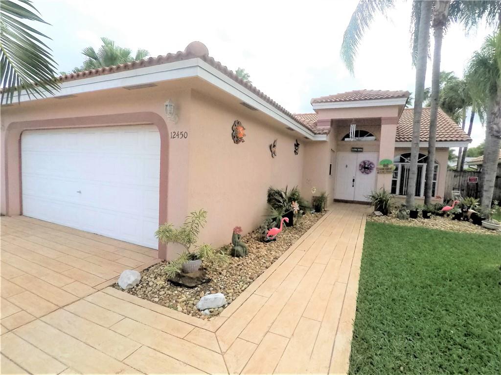 Beautiful home located in a quiet cul-de-sac with great schools! Home features 3 bedrooms and 2 upgraded full baths with 2 car garages. Newer Roof, Kitchen has upgraded cabinets, granite tops, newer stainless-steel appliances. Tile floors through-out living areas and laminate floors in bedrooms. Very nice open floor plan with cathedral ceilings. Huge master Bedroom with walk in closet, attached bath with double vanity, spa-tub and separate shower! Screened covered patio and open barbeque backyard area for entertaining with extra hurricane-proof storage shed. Very well maintained with lots of charm and more!