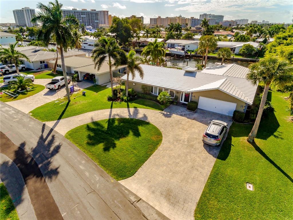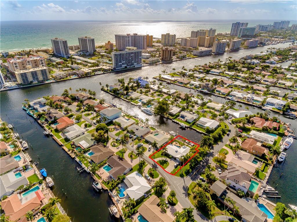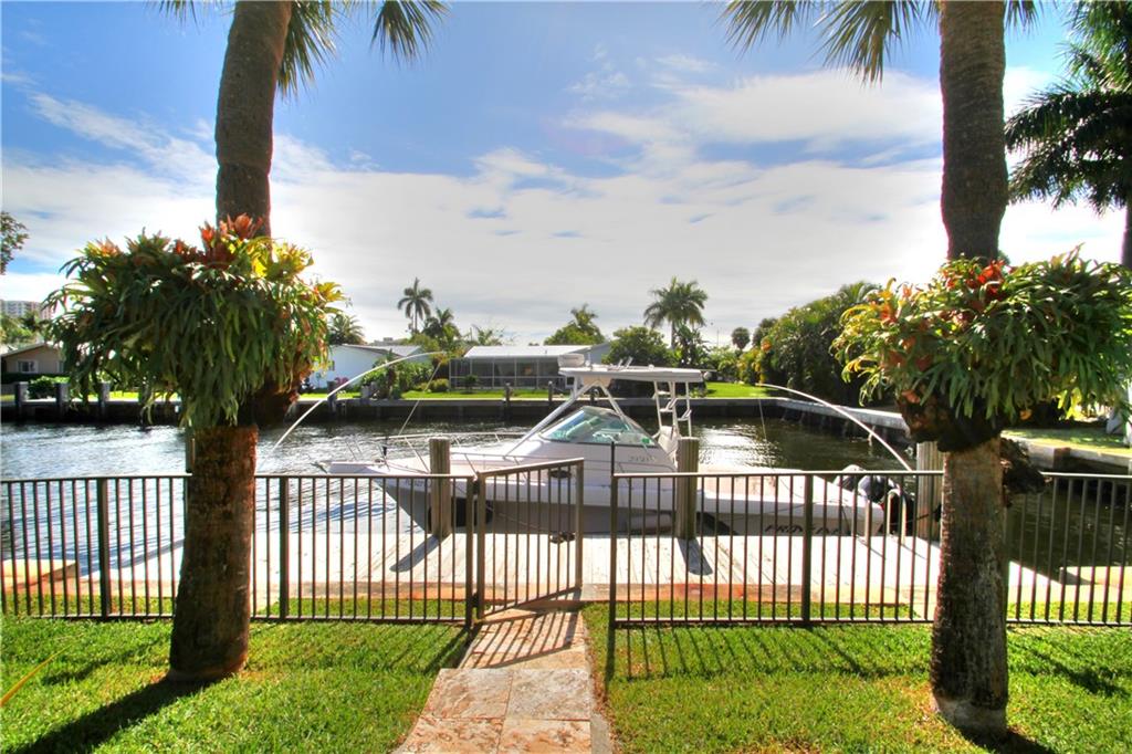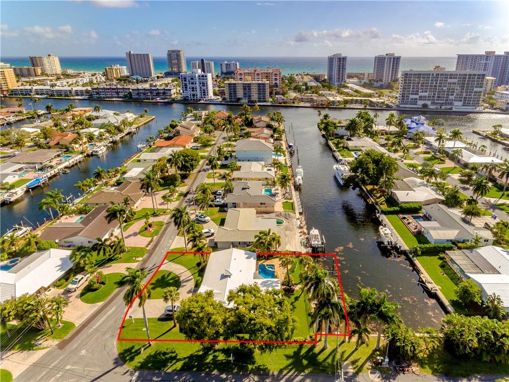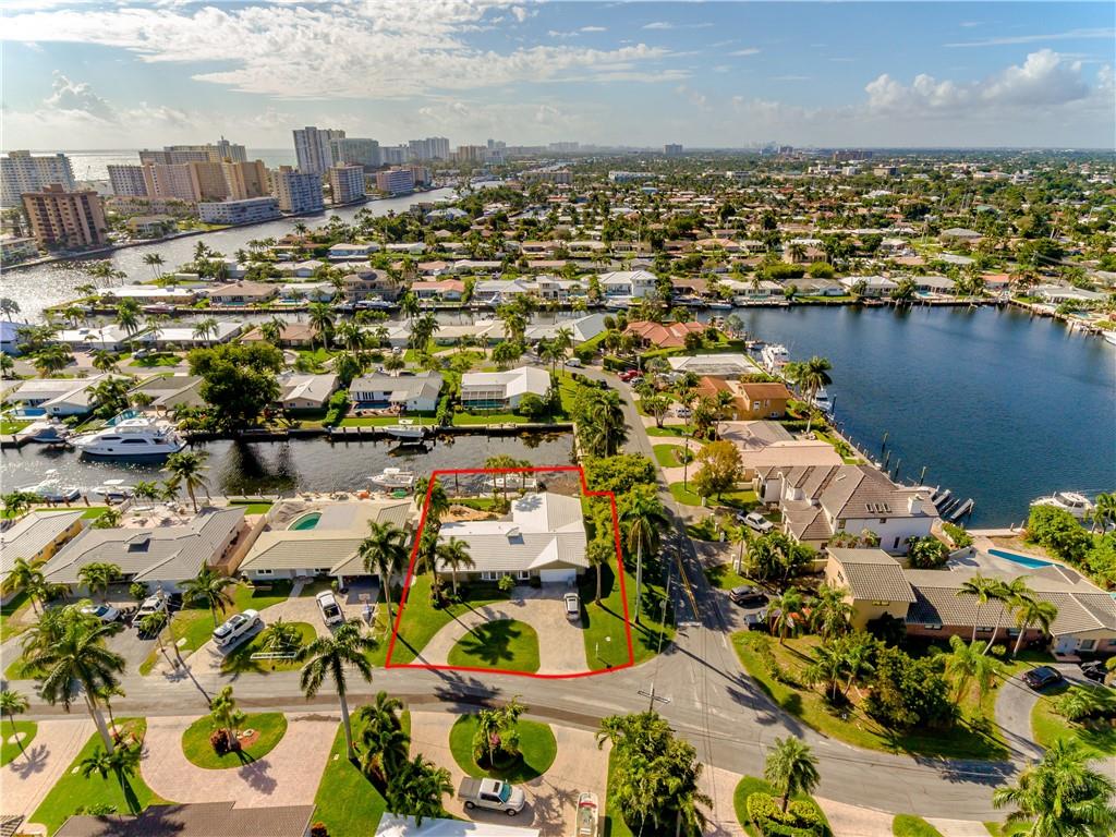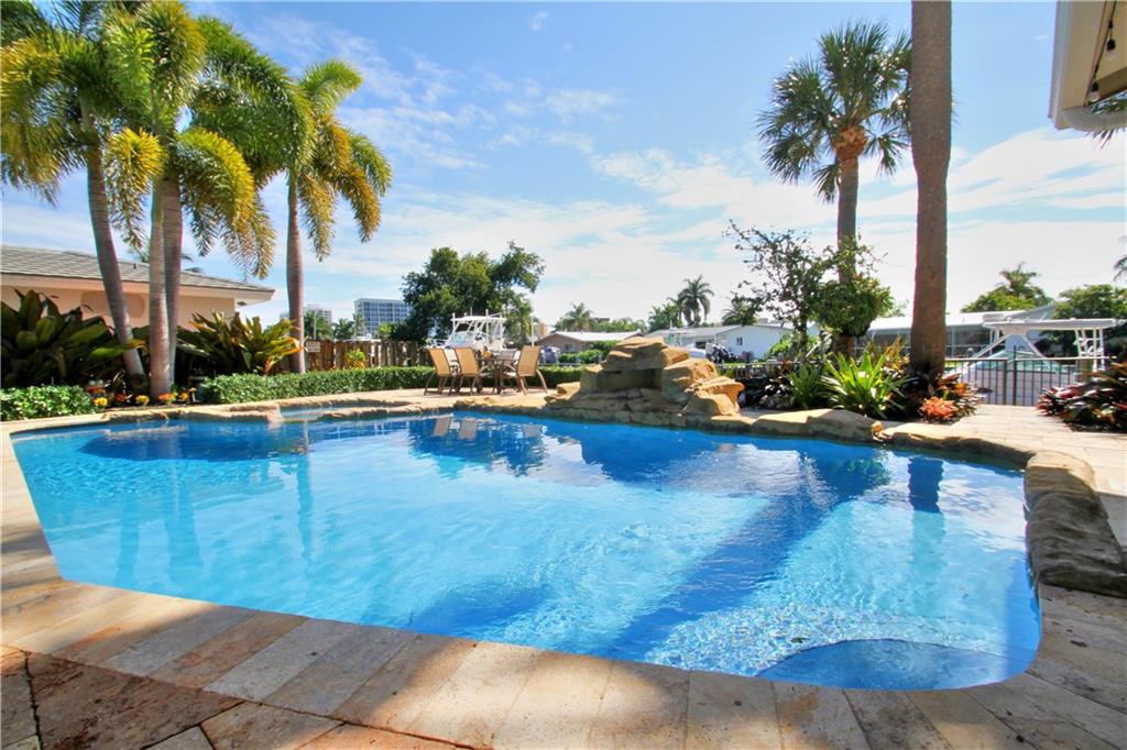 No Fixed Bridges ! 83 ft and additional 50 ft on "L" shaped corner lot with direct ocean access. 3/3 pool home facing south in desirable Harbor Village.Upgraded kitchen/baths and impact windows/sliders. Current family room could be 4th bedroom (as built). Hardwood floors in the living/dining area. Heated saltwater Pool/Spa and patio remodel includes travertine deck and relaxing waterfall. Circular paver driveway accommodates many vehicles in addition to the 2 car garage. Plenty of green yard space for activities on this beautifully landscaped property with stunning views down the waterway. Wide canal-7 lots from the Intracoastal Canal and just a few minutes to the Hillsboro Inlet. Corner lot also includes 10x5 green area to the south overlooking canal.