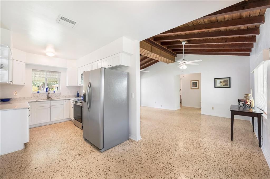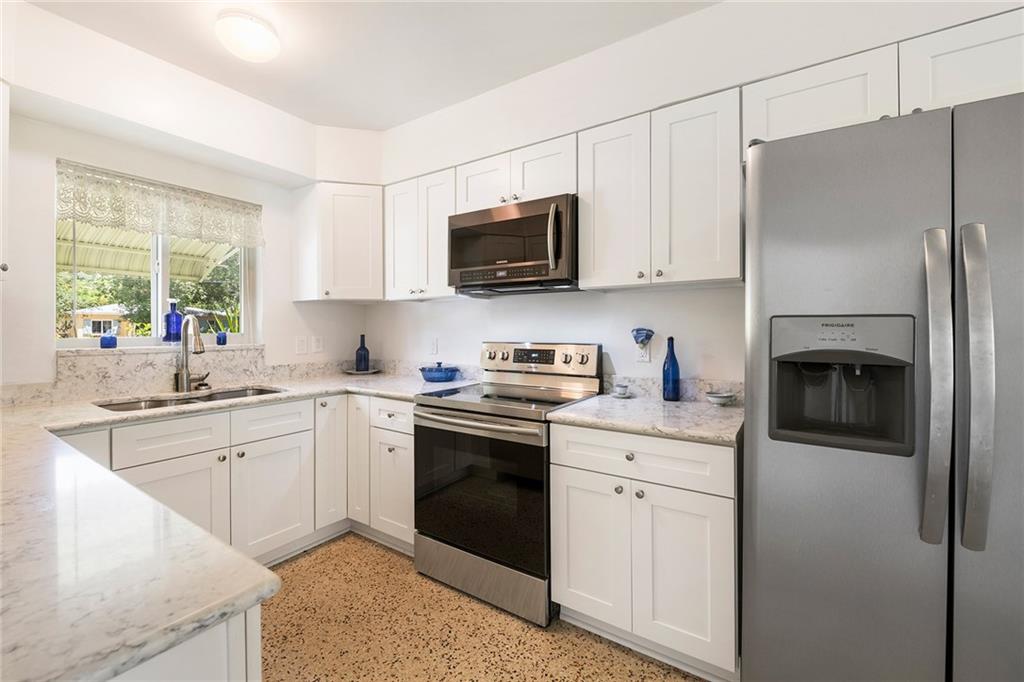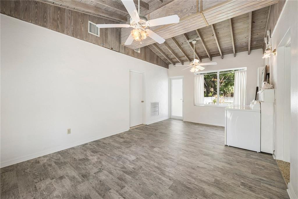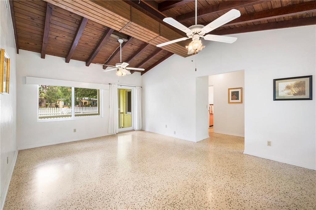 MAIN HOUSE 3/2 with additional GREAT room with vaulted ceilings PLUS separate Mother-in-Law Cottage ON TWO LOTS ON 100' OF TARPON RIVER!!! Beautifully updated 3BR, 2BA house w/1 BR, 1 BA separated studio. Large main living area w/ wood vaulted beamed ceilings. All new kitchen w/stainless steel appliances, granite countertop & wood cabinets. Large master BR. Retro master bath w/ new tub fitter. Large secondary bedrooms. Polished terrazzo floors throughout. NEW IMPACT windows and doors & shutters for both houses. Freshly painted;move-in ready. Luscious setting. Minutes from downtown