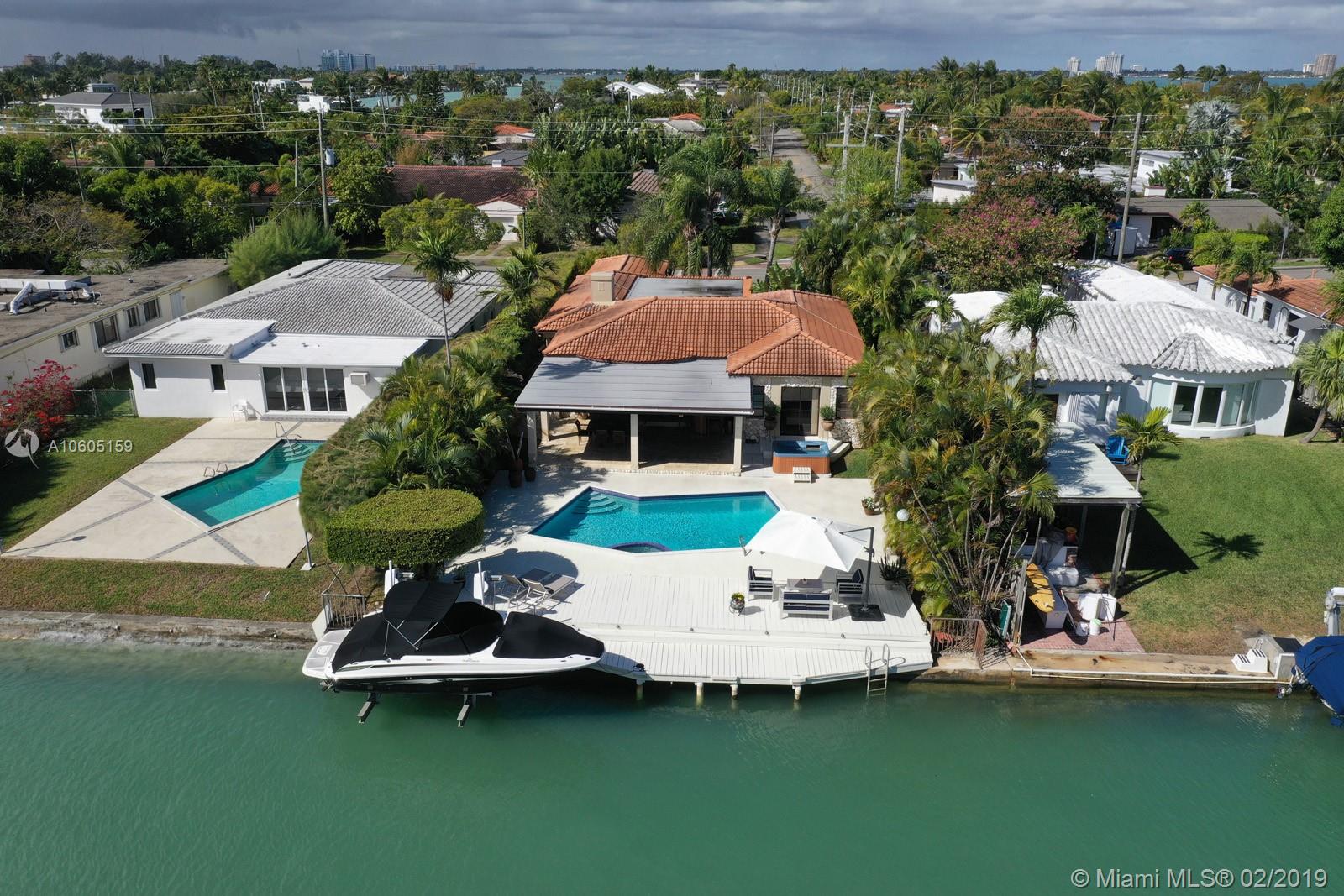 Beautiful waterfront home in Biscayne Point Island, Miami Beach. This amazing 4BED/2BATH property has an open floor plan with porcelain floors and newly remodeled, German custom kitchen with quartz counter tops and stainless steel appliances. Master bedroom includes large walk-in closet and stunning en-suite bathroom. Gorgeous tropical outdoor living area, perfect for entertaining, provides a covered patio area which overlooks pool, jacuzzi, large deck and canal. Boat lift included. Canal has no bridges for full access to the intracoastal and ocean. This lushly landscaped property is conveniently located a few blocks from the beach, Bal Harbour Mall, countless restaurants and just 10 minutes from South Beach.