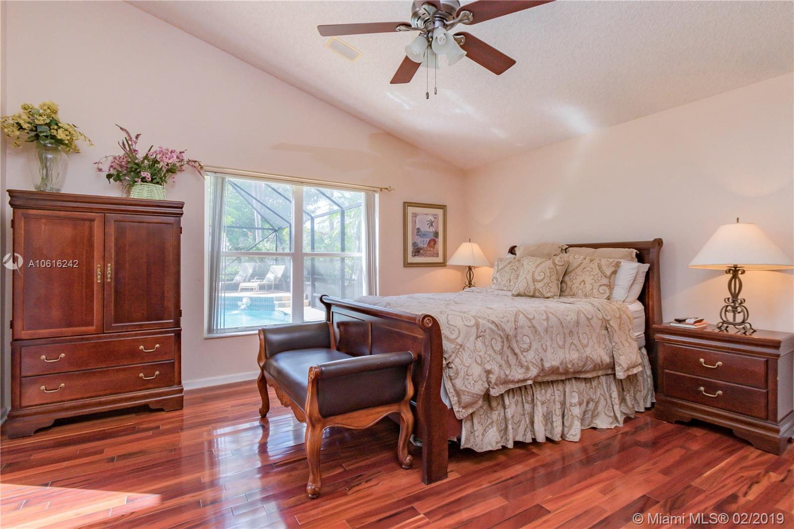 There is No Substitute for Style !! An tropical pool oasis home located at The Lakes of Weston. A marvelous outdoor ambiance with exquisite landscaping, a towering pool screen enclosure, extensive pool deck area to fill your guest for super parties and get togethers, This property is situated on large rare lot size of 11,300 Sqft at beginning of cul-de-sac, This beautiful 1 story split floor plan is ideal that works for all families, family/tv room, living/dining room combination area, nook area, office room, 12' ceilings, Updated kitchen w/vast cabinetry, wood flooring in master & family room, zoned for A+ schools: Eagle Point Elementary, Tequesta Trace Middle, Cypress Bay High School. Gated community, Easy access to highways for commuting, nearby parks and shopping. Look No Further.