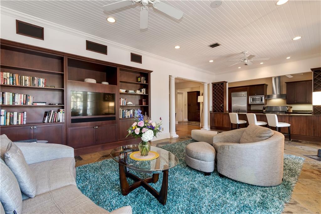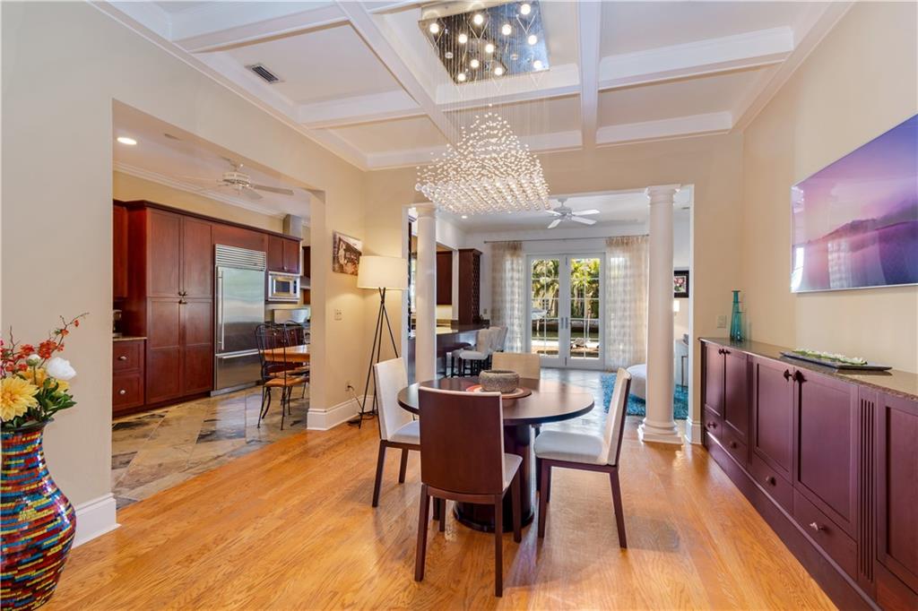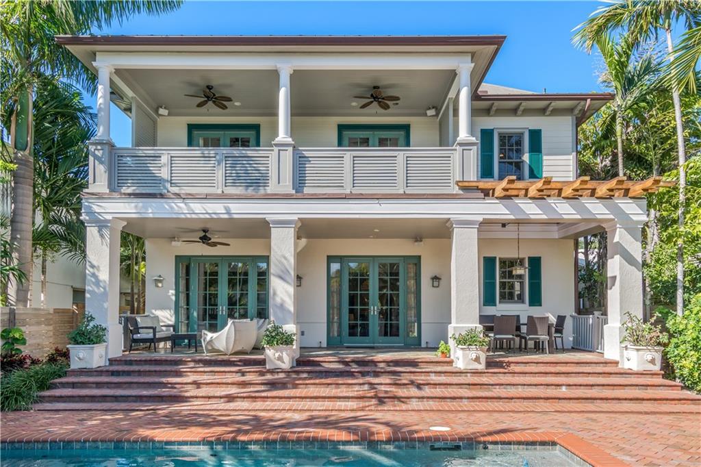 Waterfront sensation. With 3,193 sq ft of living area this striking Riviera Isles 2 story property features southern inspired design elements, a floor plan that flows seamlessly from beginning to end with French doors that open to an outdoor oasis complete with covered porch, large patio, heated pool w/ water feature, 50’ deep water frontage, a seawall raised to current code and new dock. Interior features include stone and wood floors, volume ceilings, living room w/ gas fireplace, column framed dining area w/ coffered ceiling, a spacious kitchen with granite counters, Sub-Zero, Bosch and Jenn-Air appliances that opens to main living area. 2nd floor master w/ en-suite bath, sitting area, office & large covered porch providing spectacular waterfront views. Minutes from beach & fine dining