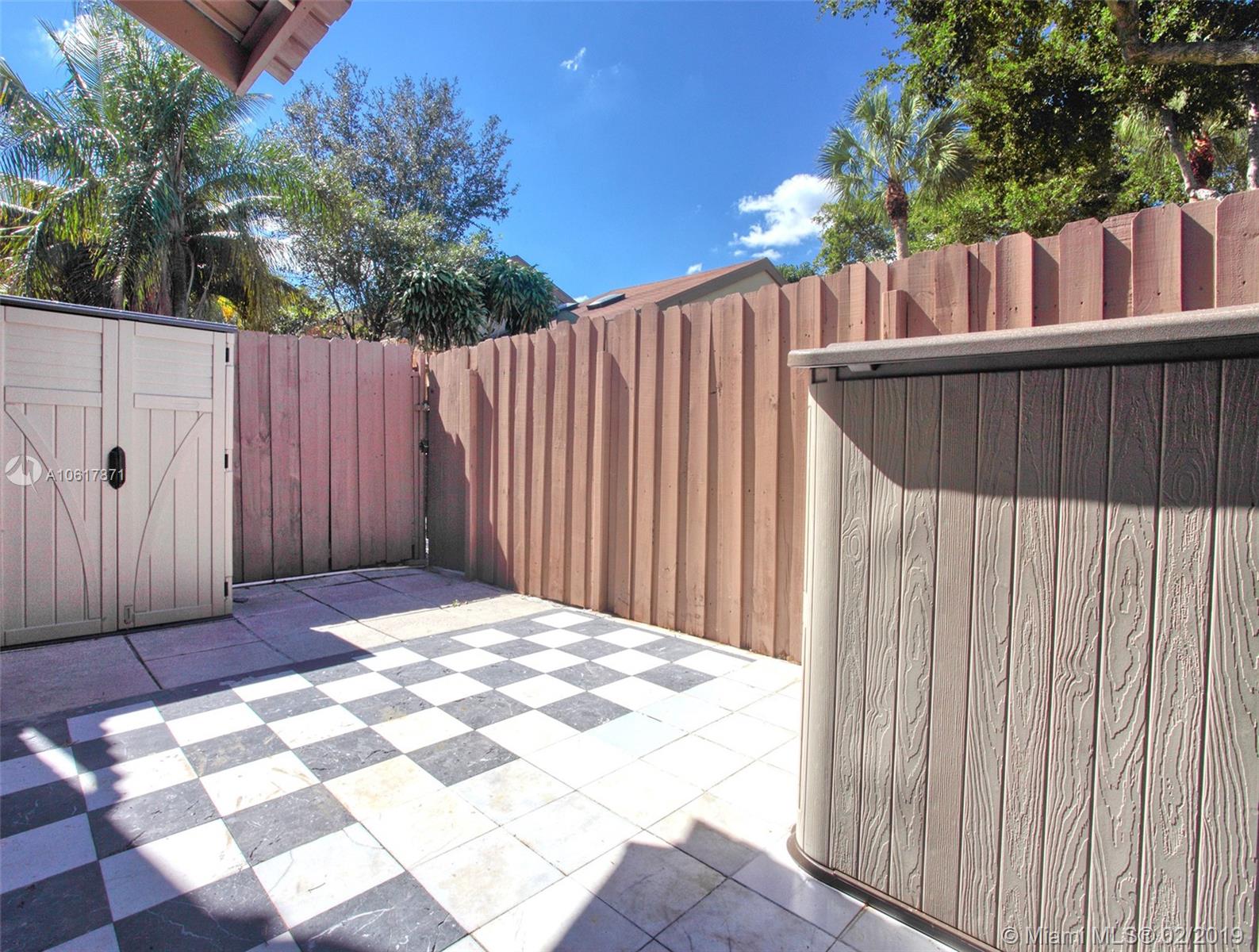 Location! Location! Location! This stunning two story townhouse sits in the epicenter of everything! Black and white Marble floors greet you throughout the first floor into the spacious living room. Modern feel with black glass walls and a vaulted ceiling with 2 skylights. Property features; Nest Thermostat, Stacking LG W/D, Accordions Shutters/Panels, Fenced in back patio, 2 Outside Storage Sheds Included, A/C Replaced 2011, NO RENTAL RESTRICTIONS! FHA APPROVED! Clubhouse/HOA includes: Pool, BBQ area, Playground, and Tennis Courts, Easy access to all highways (595/95/75/TPK), Major Supermarkets and many Restaurants with easy access (Tower Shops/Fountains), Schools and Universities right around the corner (Nova/BC/FAU), Newly renovated Golf Course backs the development. Priced to Sell.