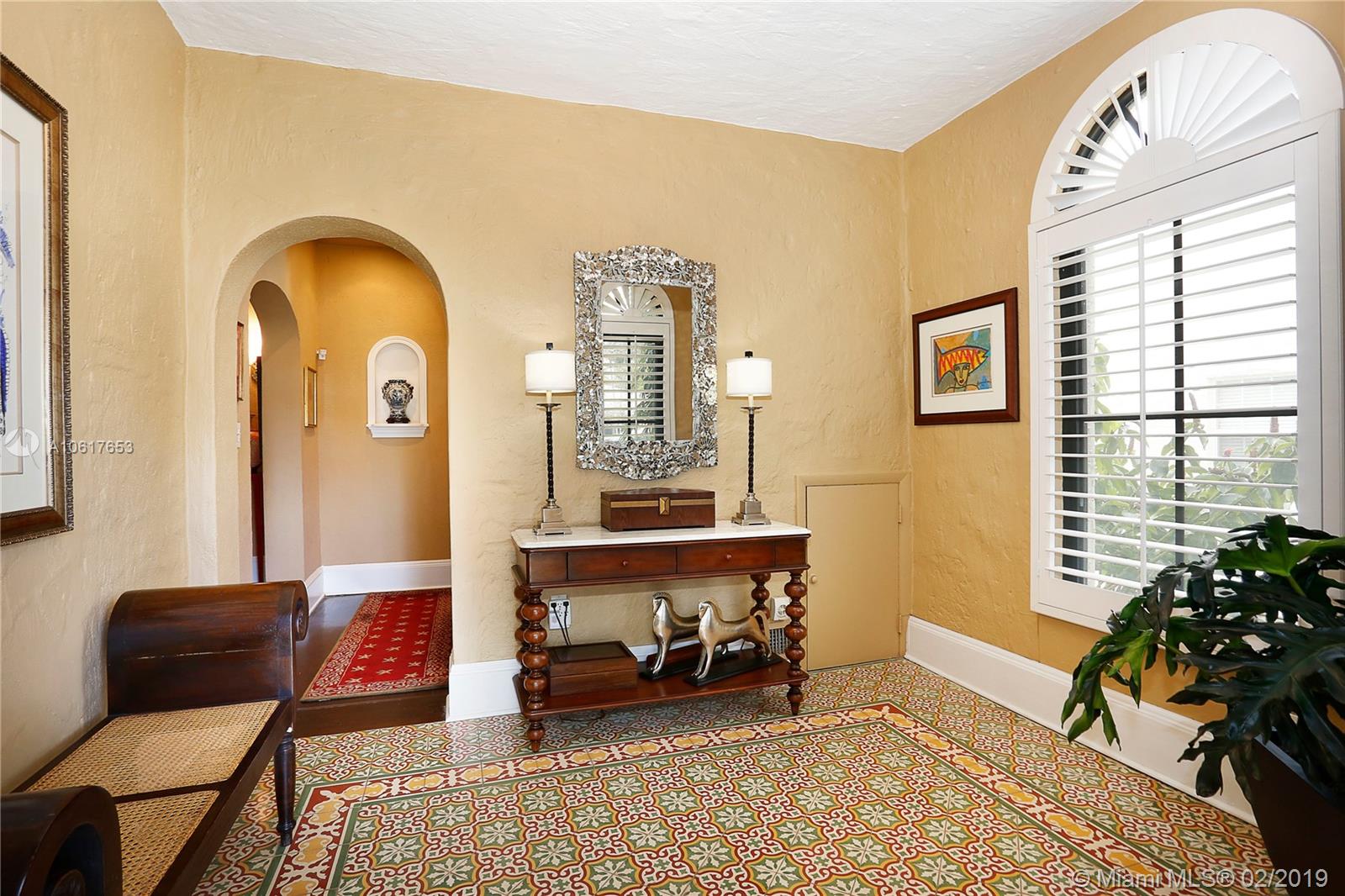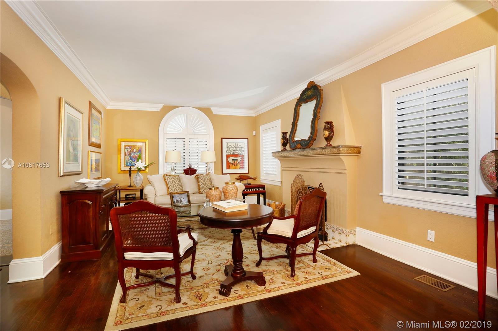 Built in 1924, this Old Spanish in the heart of Coral Gables maintains charming details of yore but has been upgraded w/ all of the amenities that a modern buyer demands, making it a perfect blend of old & new! From the Chicago brick front walk enter the foyer that leads to the frml liv rm w/ fireplace to the spacious frml din rm, both perfect for celebrations! Eat-in kitchen features a fab copper hood, gas Wolf range, & 2-tone custom cabinetry. 2nd flr master has a large walk-in closet & sophisticated remodeled bath. 2 add’l BRs, incl an in-laws’ suite, both have private bathrooms. The porch feels like an outside room & deep lot has room for pool. Impact glass windows & drs, plantation shutters, wood & marble flrs, bonus rm & fine details in a prime location make this a perfect home!