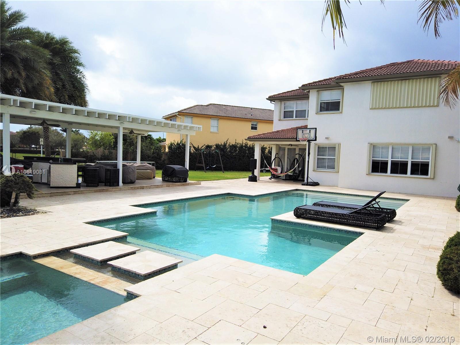 This house has an immense lot of 14850 SQFT (1300M2) unique in Doral, where you can spend pleasant family time in the beautiful pool and at the same time enjoy a great bbq. Inside it, you will find a beautiful kitchen with Thermador appliances, without discarding the social areas and rooms in marble floors, and large spaces to share a great dinner or spend time with family. One of the best houses in Doral Without a doubt ...