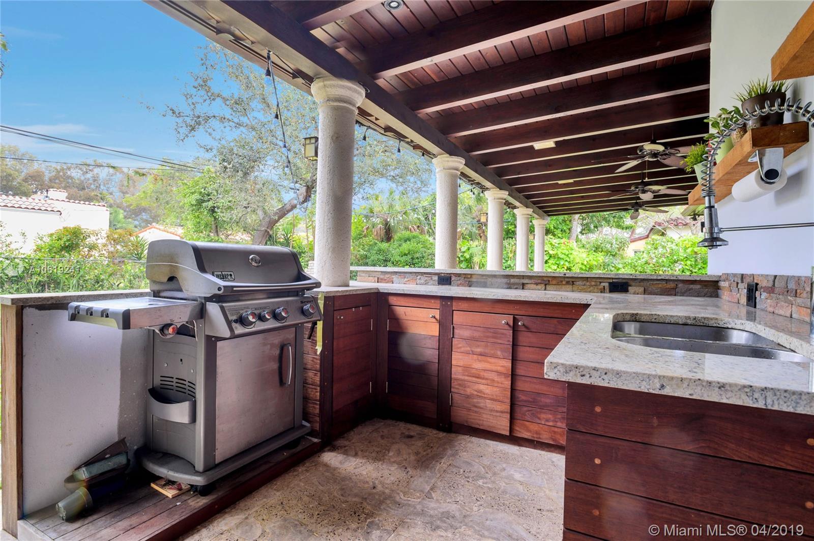 Your private sanctuary 15 min walk from Miracle Mile. Beautiful home filled with natural light on a quiet street. Highly sought-after Coral Gables area with A-rated schools. Perfect for relaxing, ideal for entertaining. Large lot with room to add a pool. Walk through the entrance and feel the inviting vibe from the expansive living area. This home has great updates (impact windows, KitchenAid/Weber stainless steel appliances, outdoor playset, etc). Other nice features: working fireplace, plenty of closets, smart lighting, security camera. Beautiful backyard with covered patio and BBQ island. Well-fed sprinkler system is great for gardening. Fenced-in yard gives you privacy. Friendly neighborhood where you can take a walk under the lust tree canopies. This home has it all! Easy to show!