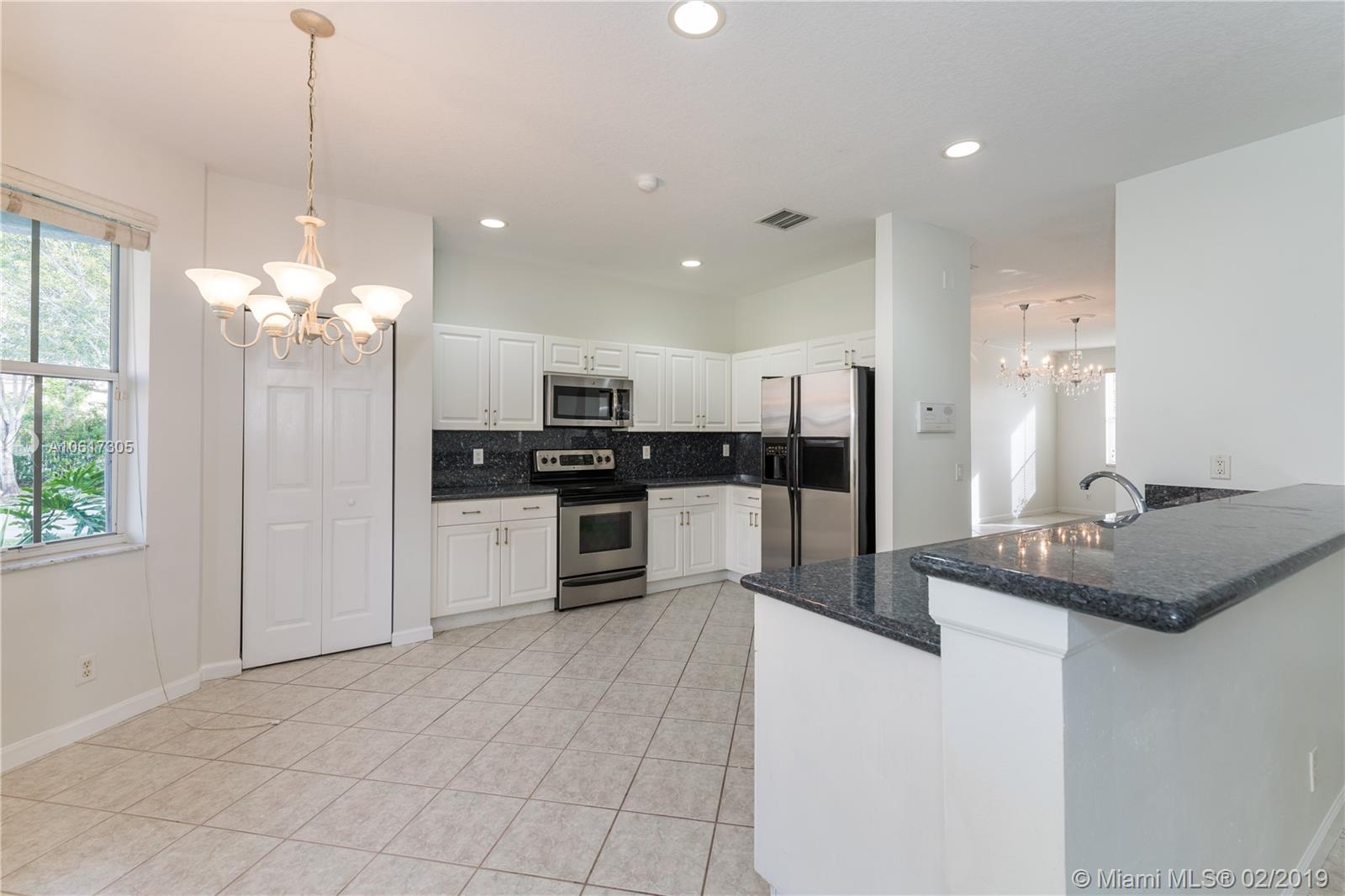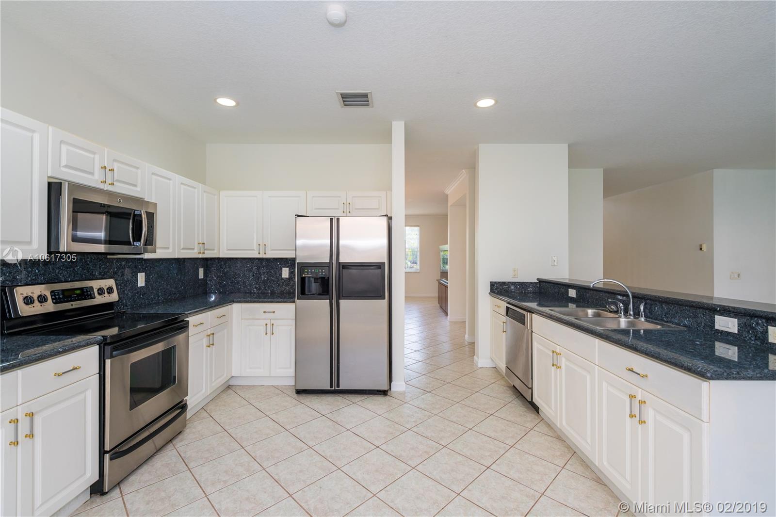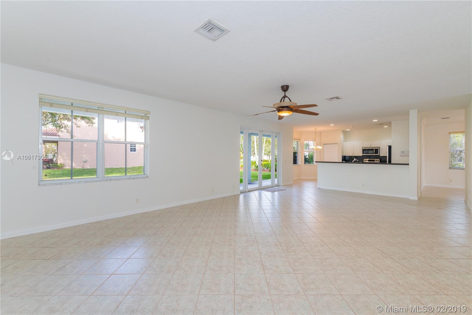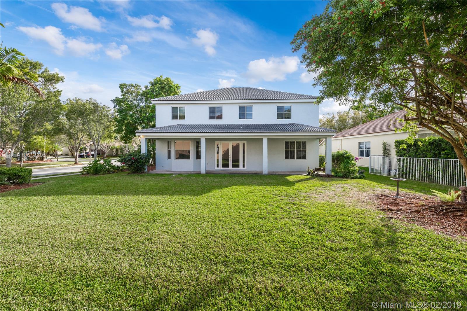 Beautiful, Heather model. Large, 5-bedroom, 4-bath home is move-in ready. The interior has just been painted and is spotless. The home features wood laminate floors upstairs and tile in the living areas, granite counter-tops and Stainless steel appliances. Large master-bedroom with walk-in closets and a large bath with dual sinks and separate tub/shower. There is an upstairs sitting area, one bedroom upstairs with its own bathroom, The family room is huge, there is a laundry room with a window, and a two car garage. The covered patio faces a large, back-yard. Two AC units, one newer, newer water heater. Savanna has the best clubhouse in Weston, with a heated lap pool, huge, general use pool, water slide, 2 kids pools, mini-golf and a cafe on the premises. Next to YMCA and Regional park.