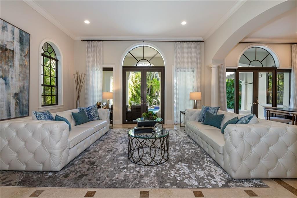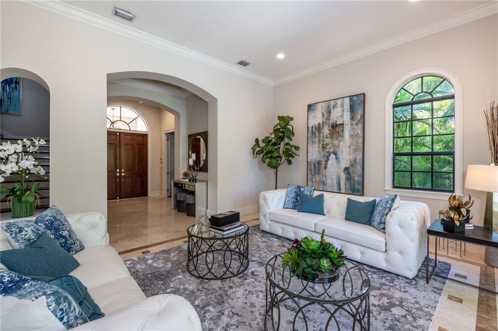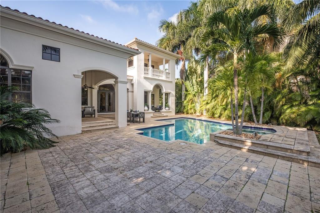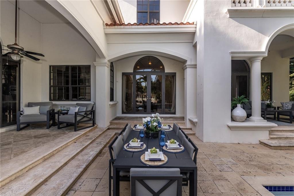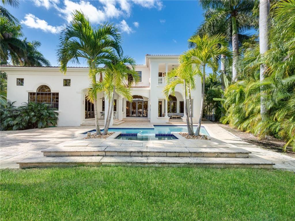 Sun-filled Mediterranean waterfront villa in gated prestigious Gables by the Sea. The villa was home to the Swiss Consulate Miami. This magnificent 4672 SF home is located on a 12,800 sf corner lot and close to top-rated private and public schools. The interior features beautiful open living spaces with high ceilings, marble & wood flooring and a Great Room w. barreled wood ceiling and Gourmet Kitchen. The wine cellar and the inviting outdoor pool area make this an ideal home for entertaining, with the added convenience of an invisible dog fence and mosquito misting system. The deluxe master suite upstairs features a veranda w. stunning pool and waterway views, his/hers walk-in closets, and a grand master bath. There is a porte cochere and 2 car garage.