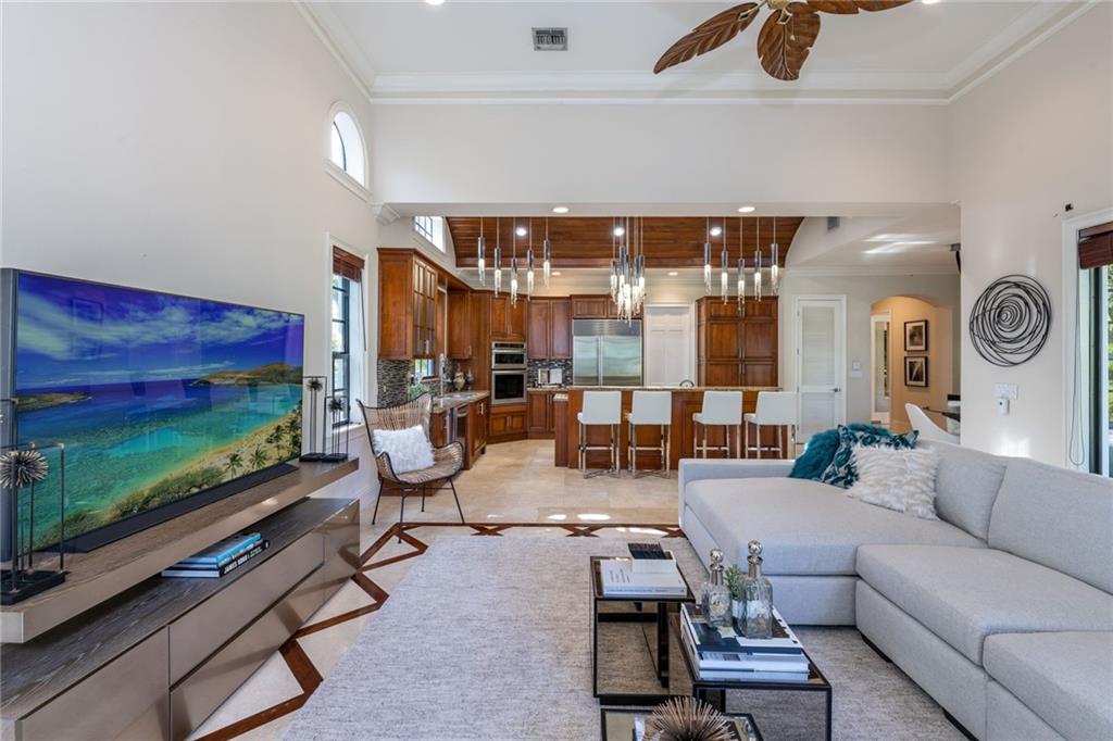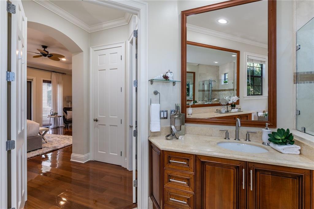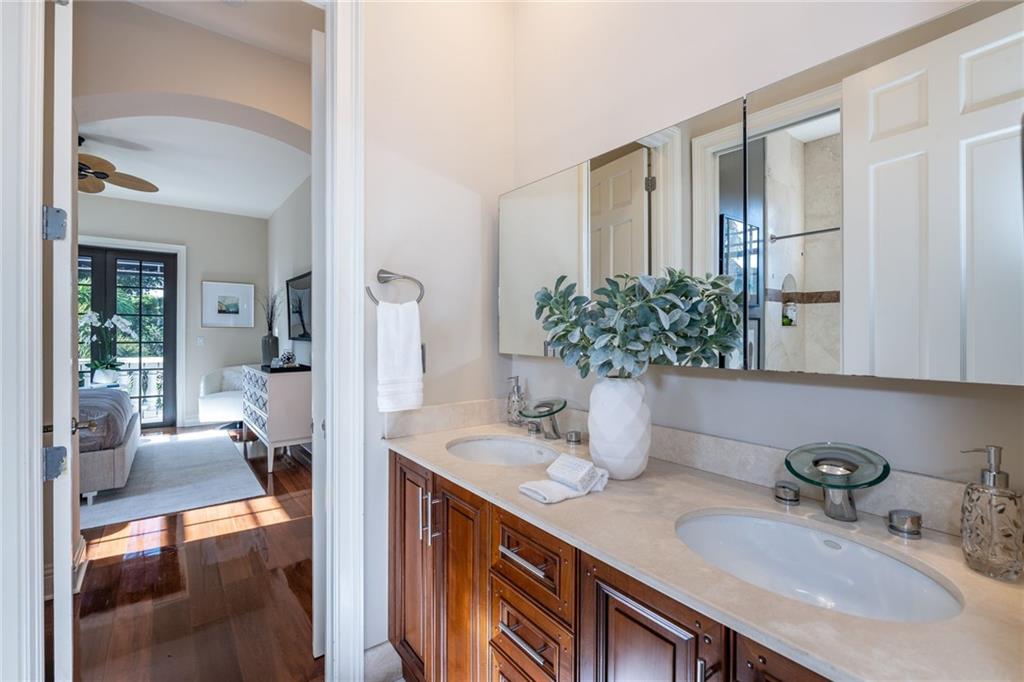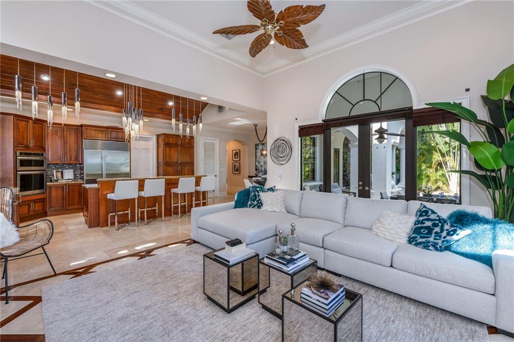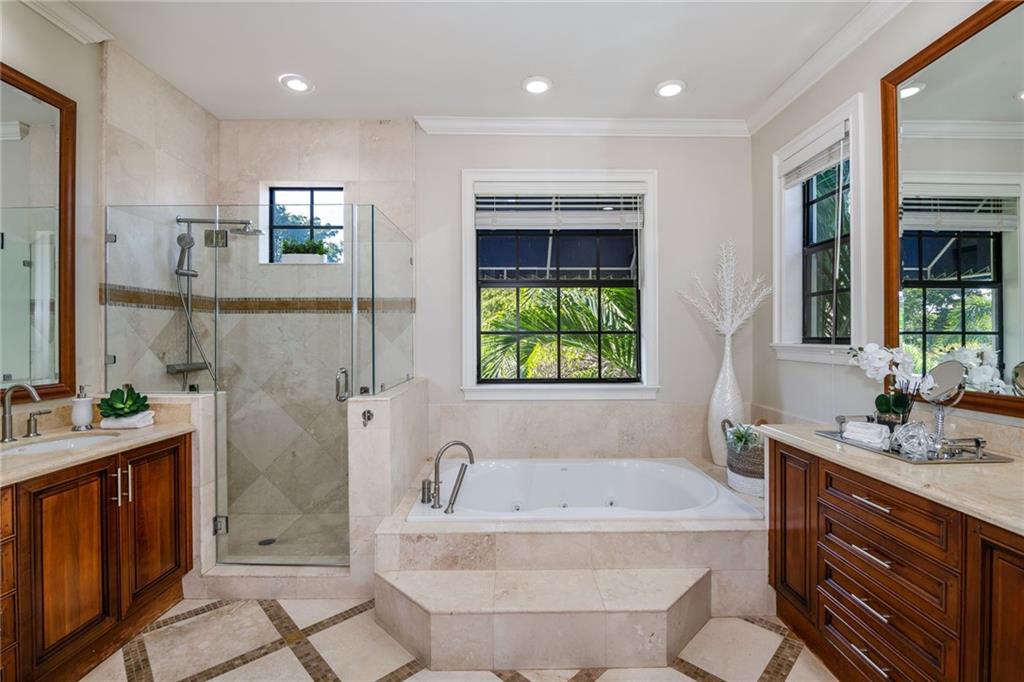 Sun-filled Mediterranean waterfront villa in gated prestigious Gables by the Sea. The villa was home to the Swiss Consulate Miami. This magnificent 4672 SF home is located on a 12,800 sf corner lot and close to top-rated private and public schools. The interior features beautiful open living spaces with high ceilings, marble & wood flooring and a Great Room w. barreled wood ceiling and Gourmet Kitchen. The wine cellar and the inviting outdoor pool area make this an ideal home for entertaining, with the added convenience of an invisible dog fence and mosquito misting system. The deluxe master suite upstairs features a veranda w. stunning pool and waterway views, his/hers walk-in closets, and a grand master bath. There is a porte cochere and 2 car garage.