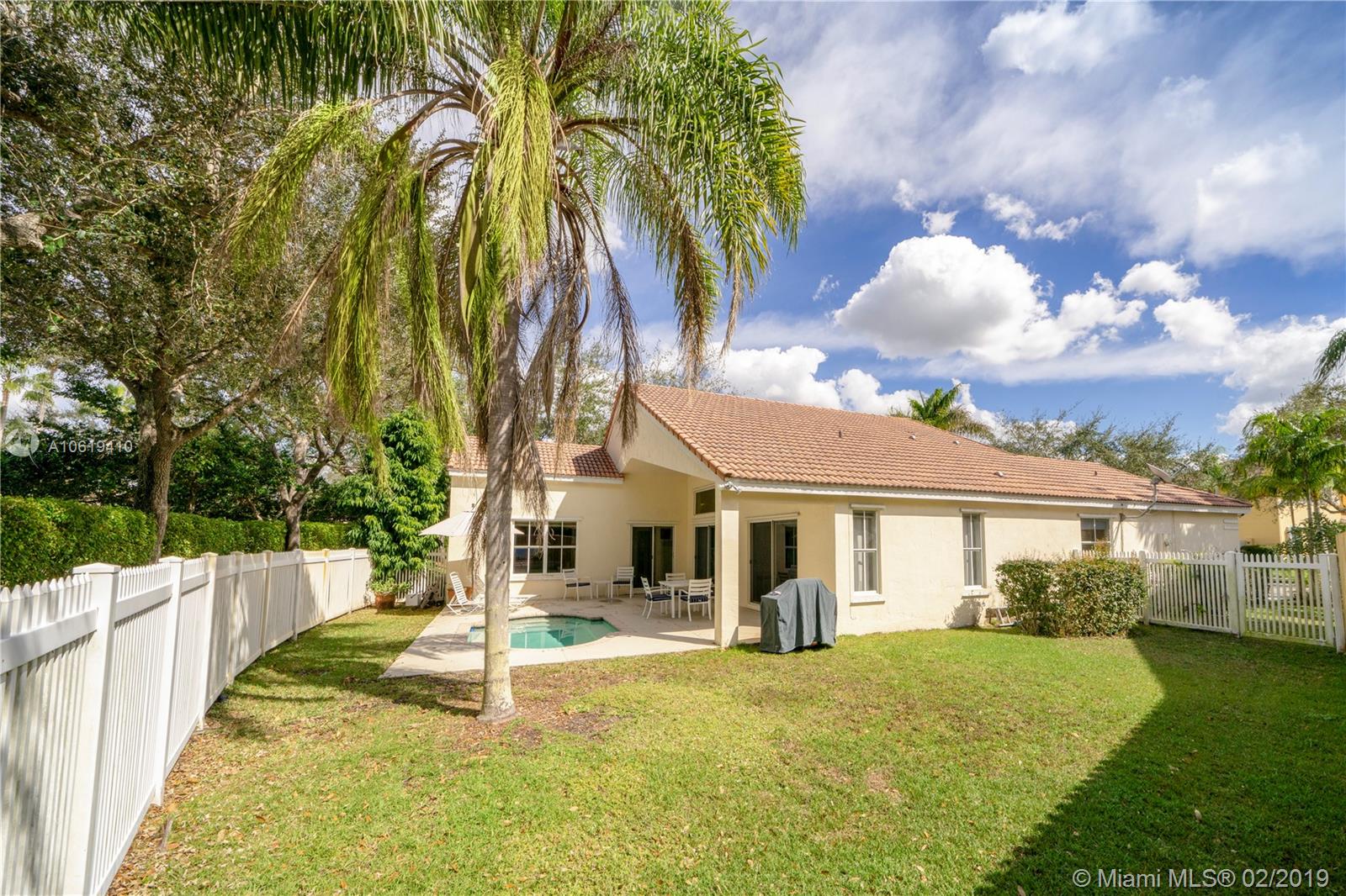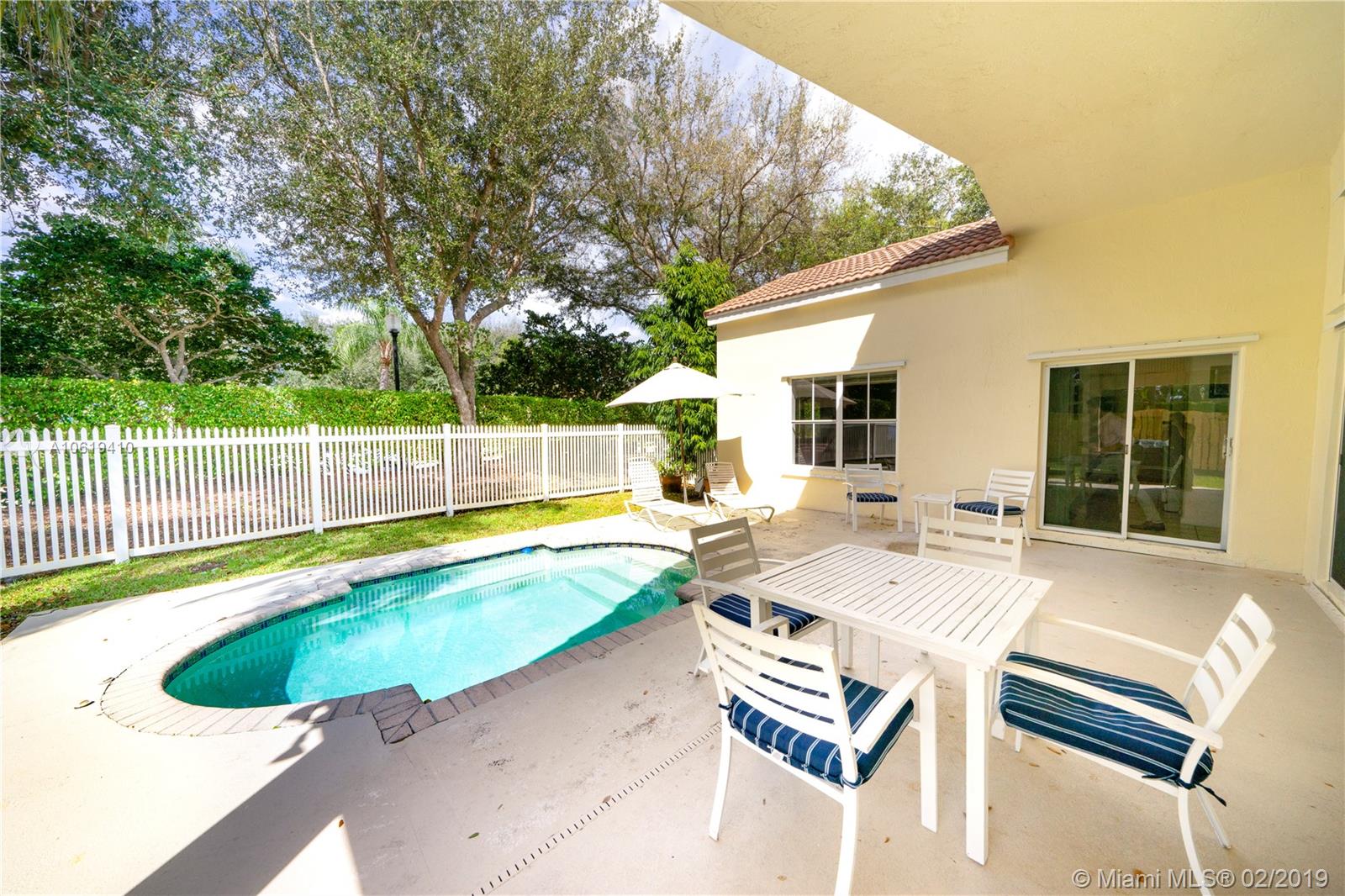 Enjoy all the best the great city of Weston has to offer! Located in highly desirable gated community of North Lakes. Beautiful single family home featuring 4 bedrooms, 2 1/2 baths, two car garage & pool! Laminate wood in all living areas, custom California Closets in all bedrooms. Exceptional layout boasting high volume ceilings with lots of natural light. Spacious eat-in kitchen. Great pool area for entertaining (**OVERSIZED 6,713 SF PIE-SHAPED LOT**). A+ school system; walking distance to Eagle Point Elementary School (rated #9 in the tri-county area). Attends Tequesta Trace Middle School and Cypress Bay High School. Fabulous community! Amenities include community pool, picnic area, kids playground, community park, and much more... Guard gated entry with 24 hrs. security. Easy to show!