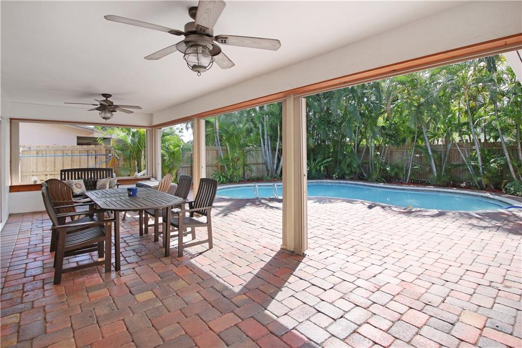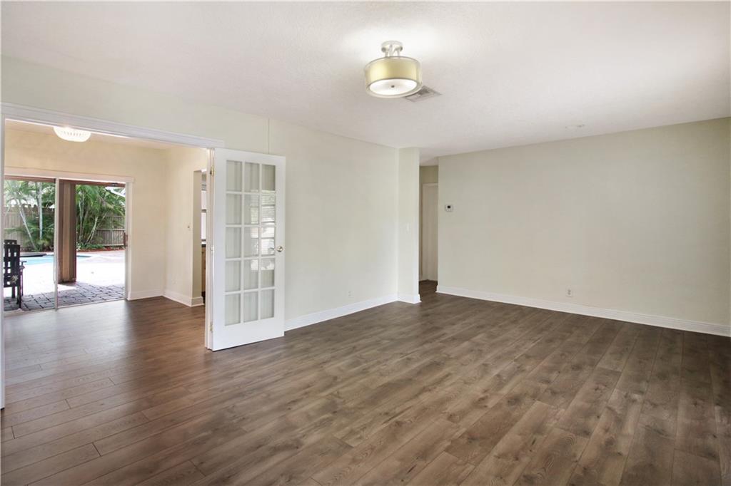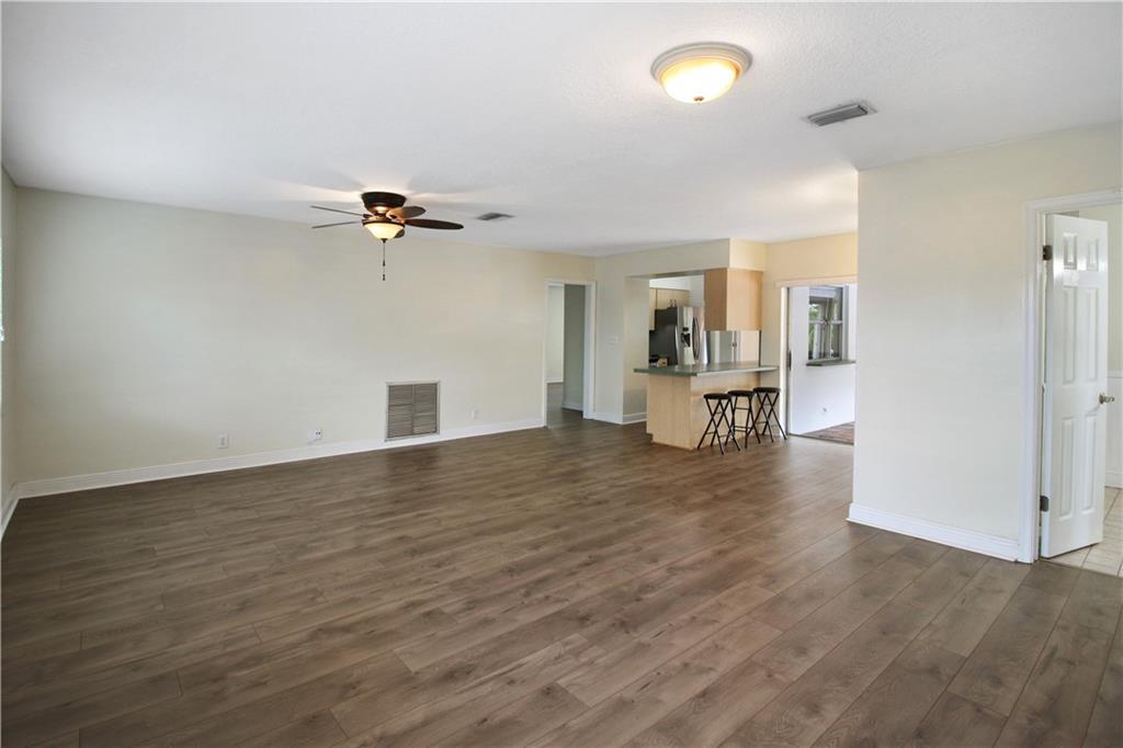 3 bedroom 2 bath with pool and 2 car garage! The previous owner has opened up the 4th bedroom to make a larger living area which makes this a great home for entertaining but can easily be converted back if desired. The fenced in back yard feels like an oasis with the freeform pool surrounded by beautiful landscaping and the pool gets sun all day with its southern exposure! Brand new flooring throughout, stainless steel appliances, updated bathrooms and hurricane shutters on every opening makes this home move in ready. The pool was also just resurfaced and comes with a 10 year warranty. A whole home warranty is also available at no cost to the buyer that covers everything from the roof to the appliances.