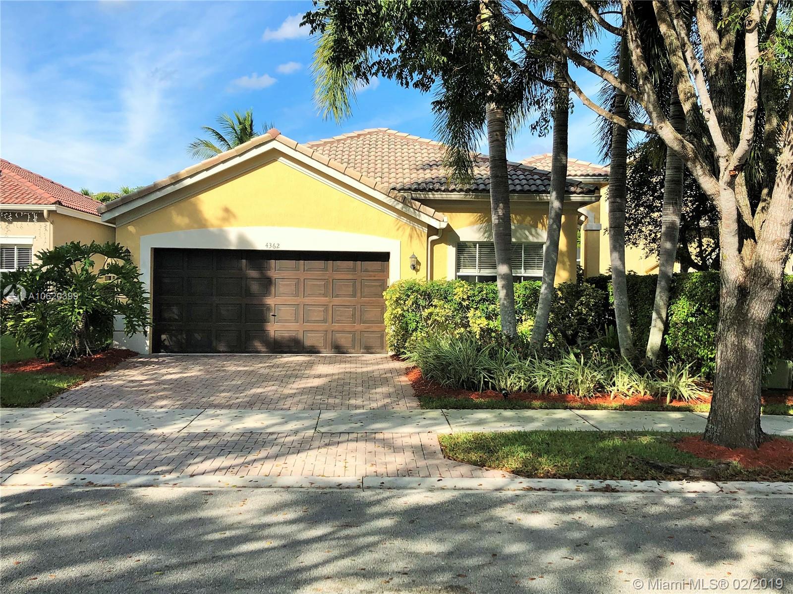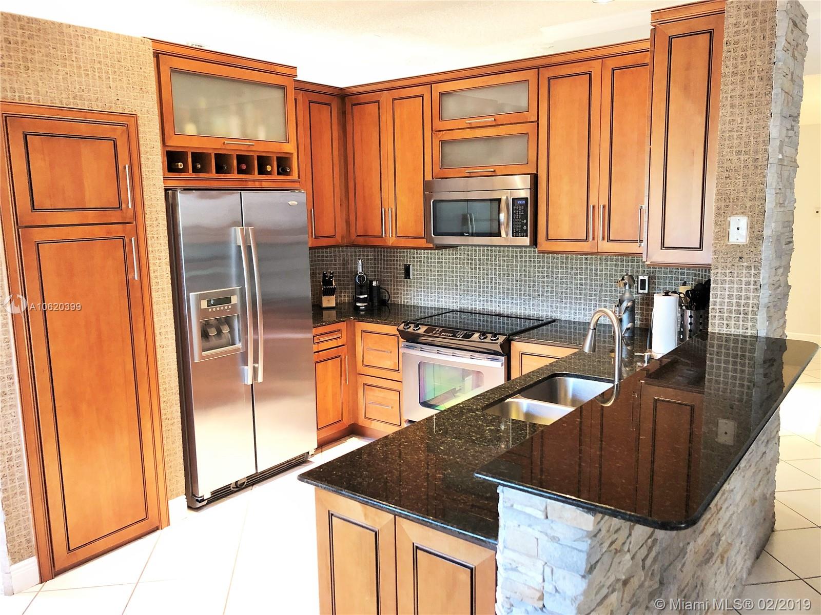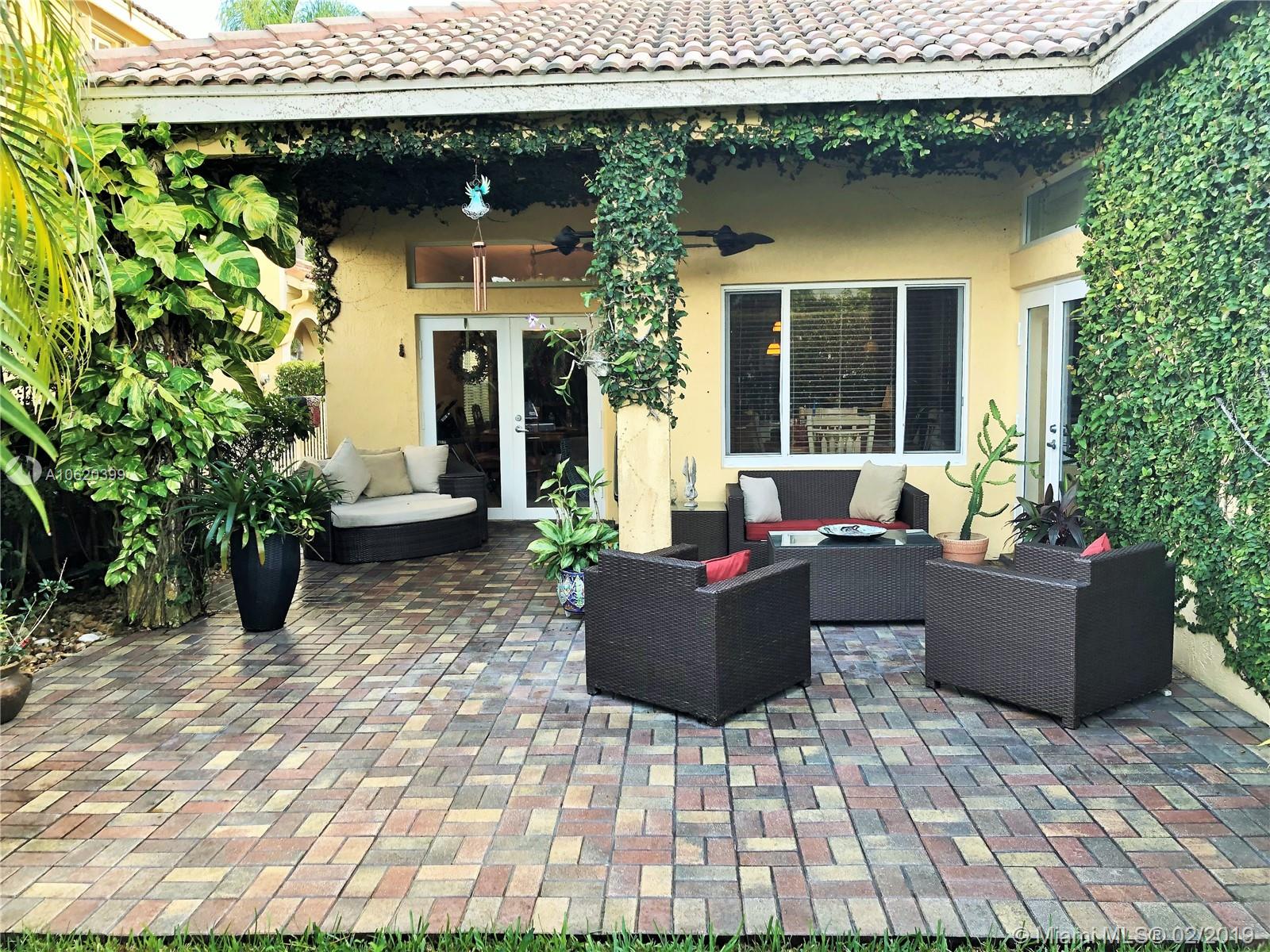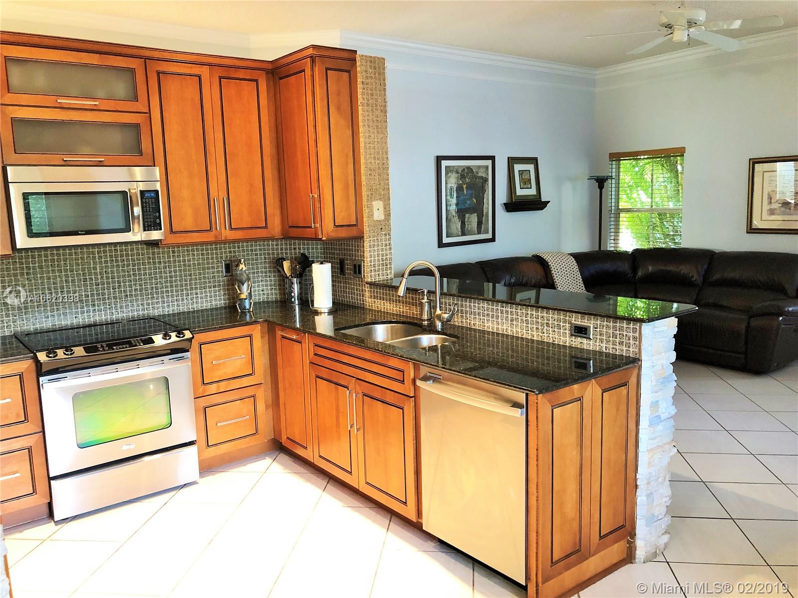 Just bring your furniture. Beautifully kept 3 bedrooms, 2 baths, 2 car garage in The Ridges. Diamond pattern ceramic flooring throughout, upgraded kitchen with Thomasville wood cabinets, granite countertop and stainless steel appliances. Walk into your open space living and dining area with slate style stone wall and crown moldings. All popcorn has been removed from the high ceilings for a modern look. French doors lead to private backyard with extended pavers on patio deck. Home also features impact windows in the back, California Closets, newer water heater and newer washer and dryer inside the home. Home located in resort style community with 24 hour guard gate, clubhouse, swimming pool, basketball courts and more. A+ schools, close to shopping, transportation and entertainment.