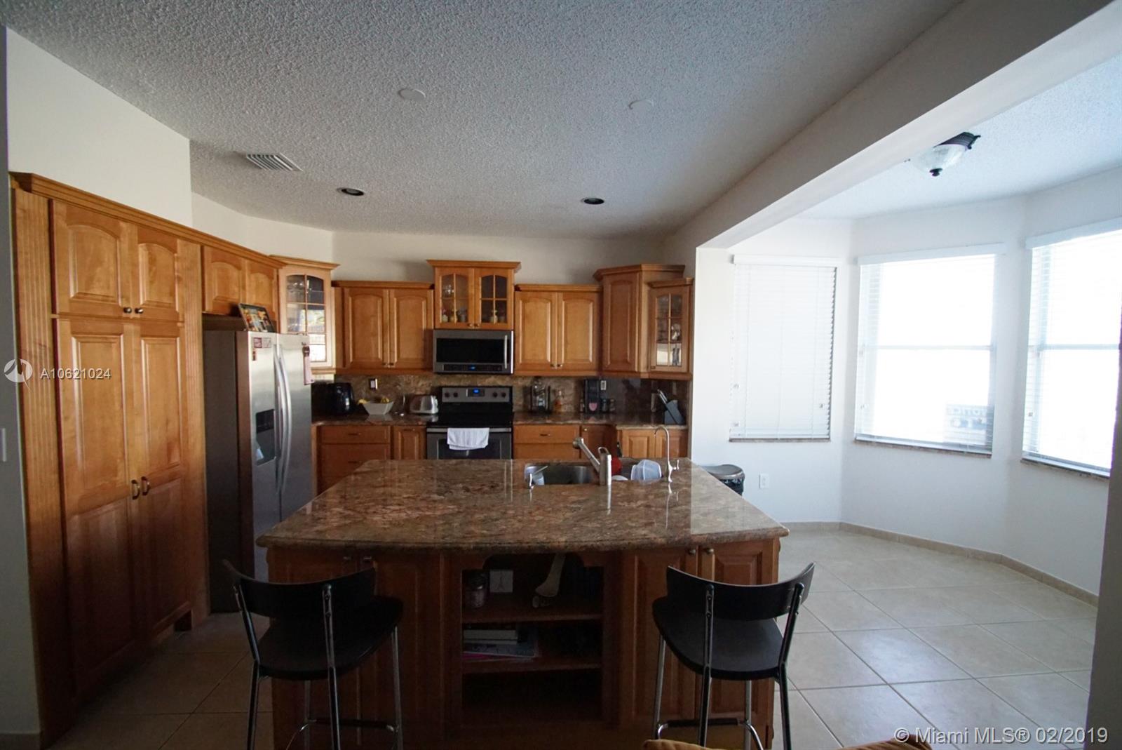 4 Bedroom 3 Full Baths one two-story home w/ 2 car garage. On a cul-de-sac, corner Lot. Professionally decorated with porcelain tiles & laminate floors. Gourmet kitchen w/ granite counter tops and stainless steel appliances. High ceilings, Large/Open Layout. In a quiet neighborhood w/ 24 HR security. 1 bedroom downstairs. Spacious private backyard w/ screened Pool.