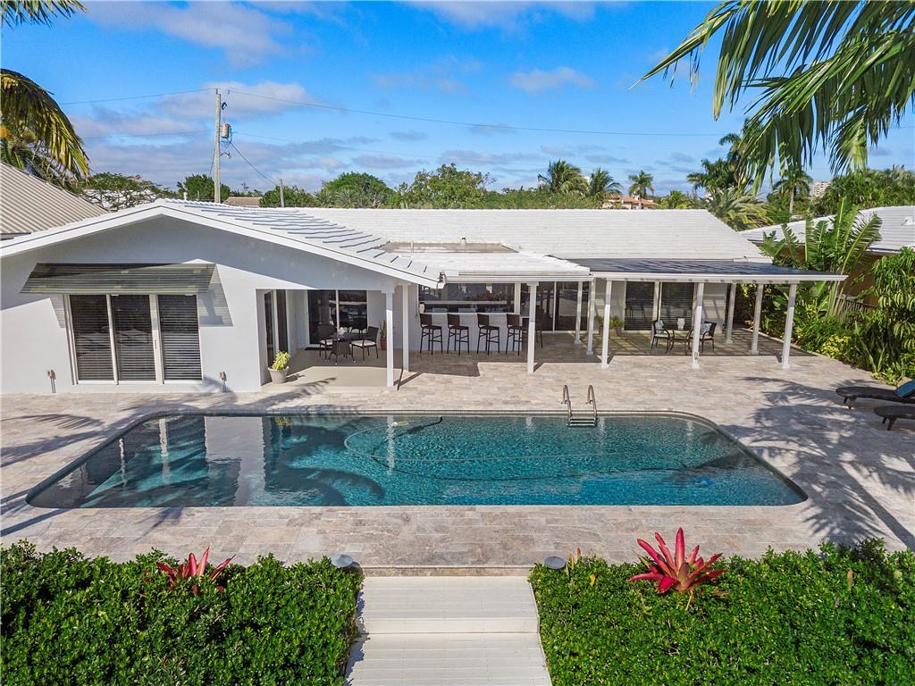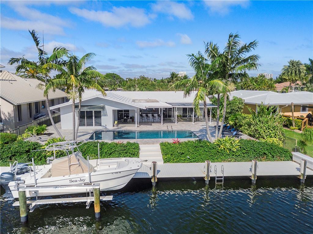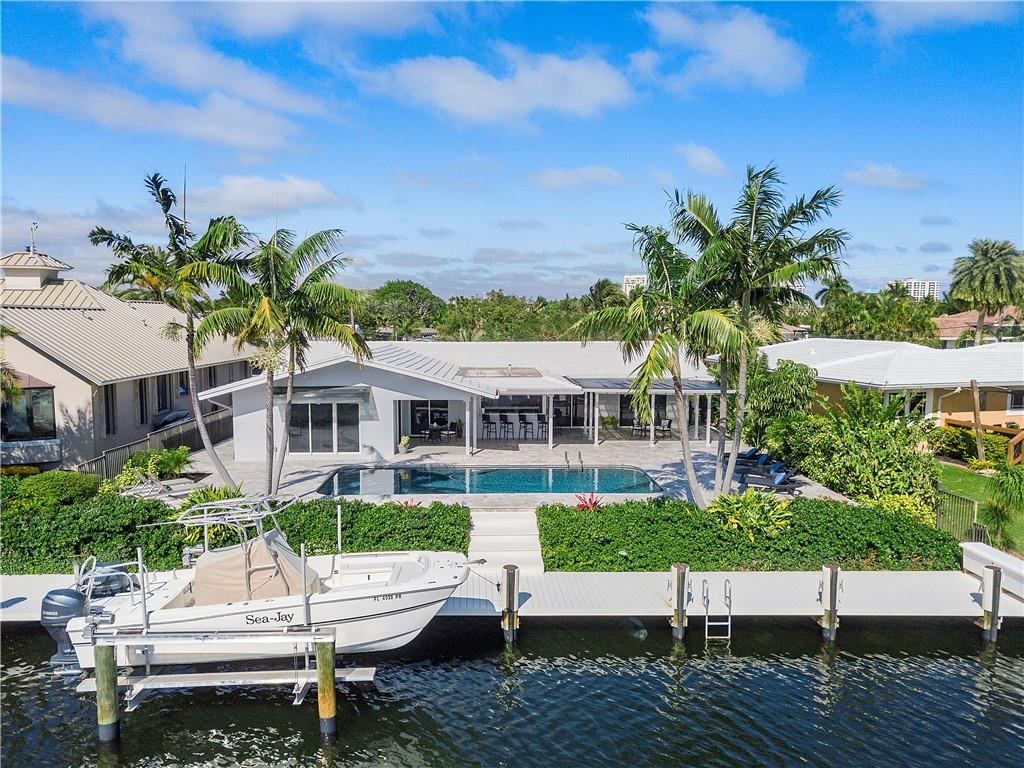 The WOW factor--Spectacular renovated 3BR/2BA/2CG pool home offers 80' of waterfrontage in Harbour Inlet. This beautifully furnished home features two master suites (plus a 3rd bedroom), has an open concept design and split floorplan. Chef's eat-in kitchen with breakfast bar and pass-through to pool area. Stunning water and pool views throughout! Impact windows and doors, custom cabinetry, stunning finishes and storage galore. Resort-style expansive pool area with a large, deep, south-facing swimming pool, loggia and impeccable landscape. Newer seawall, dock and boat lift. A-rated schools. Steps to Fort Lauderdale Beach, Inlet, resorts, private beach clubs and house of worship. Centrally located to world-class restaurants, arts, entertainment, shops, airport and more! A must see!
