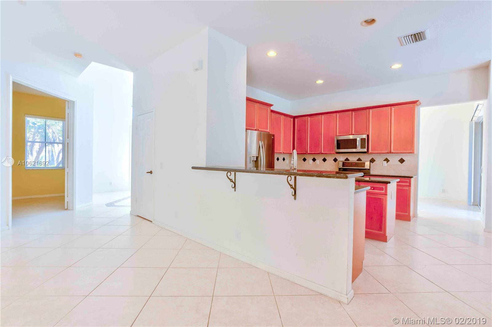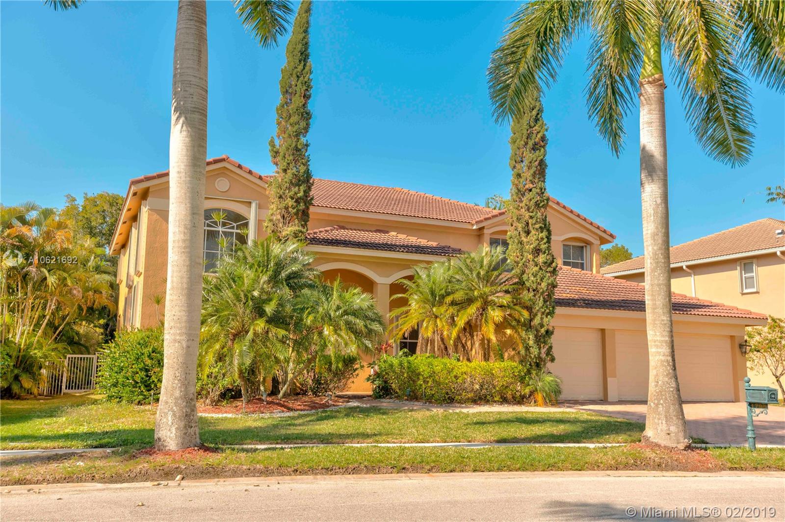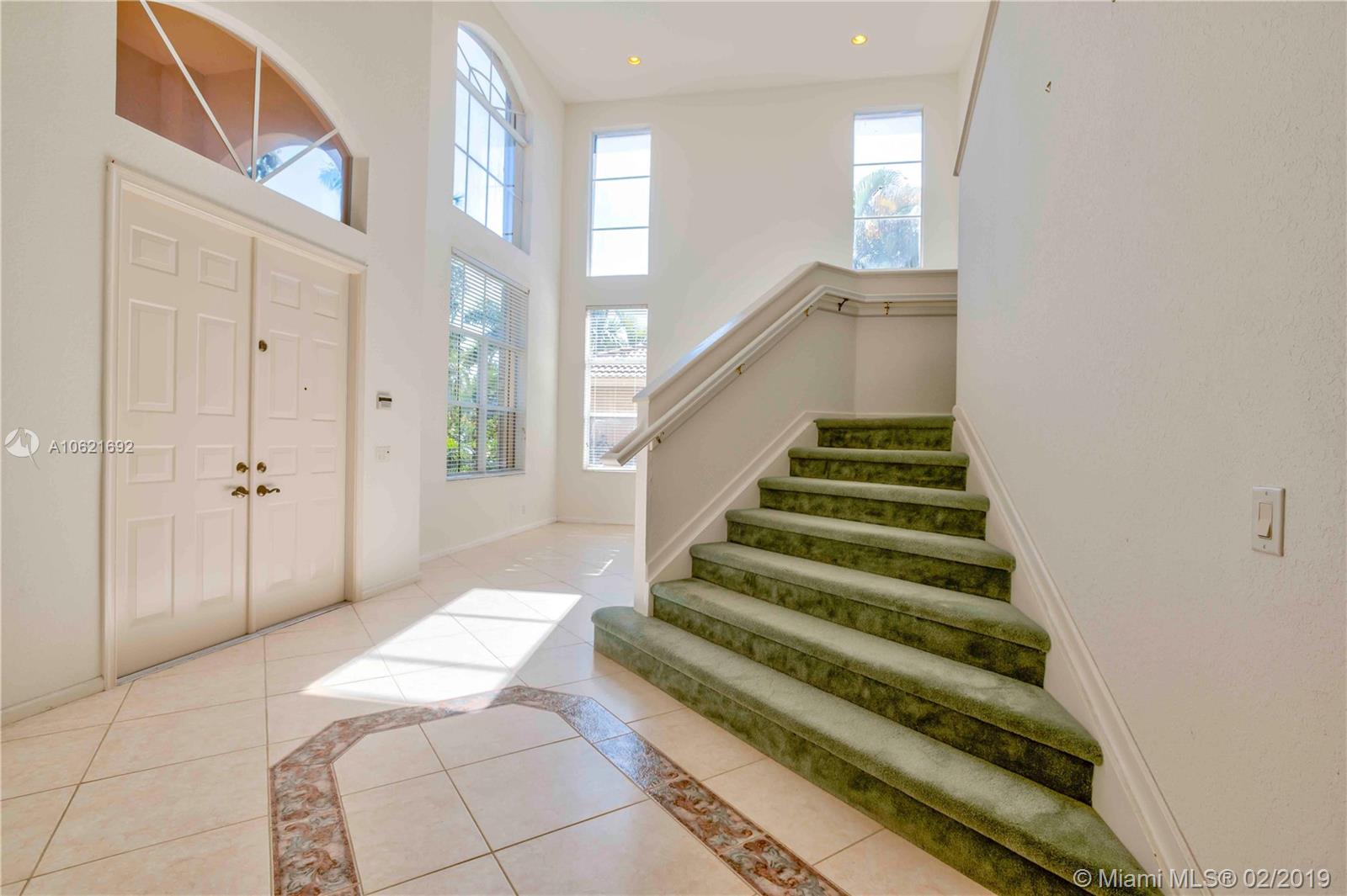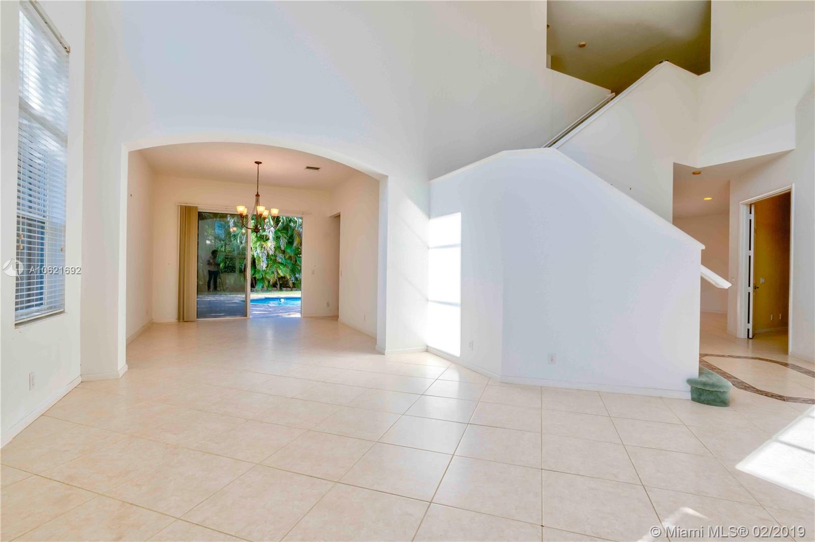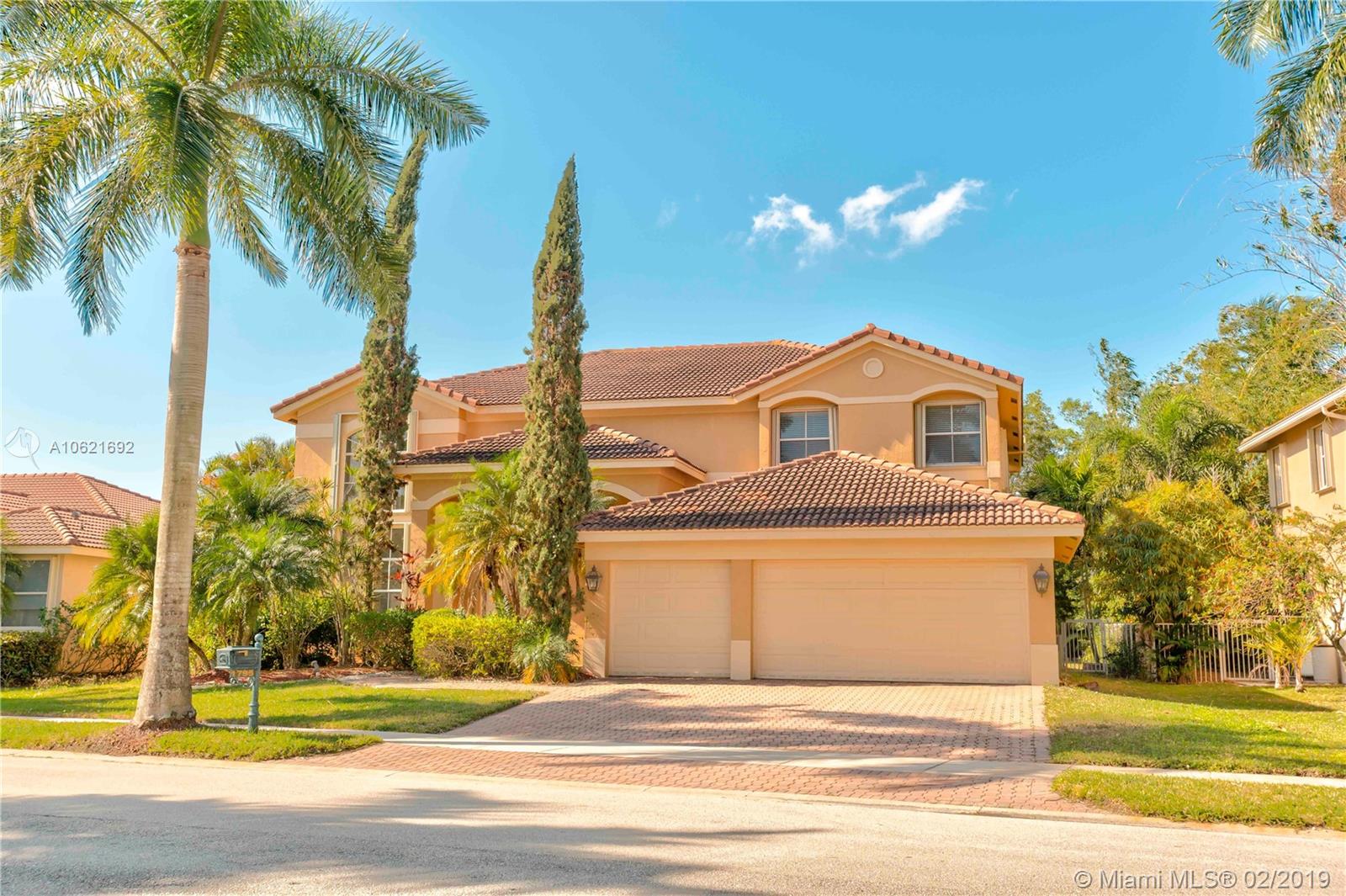Exclusive Weston Hills Golf Community with Guarded Gate Access. This 5 Bedroom home is nestled amongst a gorgeously maintained neighborhood. Expansive open plan family-kitchen area with glass sliders leading out to a large paved patio and sparkling pool. 4 Bedrooms upstairs with extensive walk-in closets and a downstairs bedroom which may be used as an extra entertainment area or ample kids play room. A clean palette to realize your dream home with volume ceilings, cabana bath and 3 car garage. Conveniently close to golfing, basketball courts, tennis courts, shopping, dining, entertaining and some of the best schools in SE Florida.