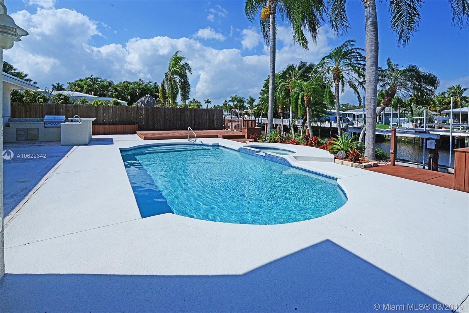 Gorgeous & remodeled, this Waterfront pool home is move in ready! Owners went over the top, no expense spared! True Chef's kitchen - Top of the line stainless steel Jennair appliances, Custom Omega cabinetry, huge center island with separate sink. A commercial grade, natural gas, 6 burner stove, double ovens, over-sized hood, pot-filler, & warmer lamps. Built in bar with wine cooler & beverage fridge. Beautiful bamboo wood floors throughout living areas, recessed lighting, & electric shades. A custom wood finish porcelain accent wall. Designer porcelain floors in the bedrooms. Luxurious master suite with large walk-in closet, double sinks & glass enclosed shower in the bath. The back yard has a Summer kitchen, resort styled pool/spa, 75 feet on the water, and 16,000 lb Neptune boat lift.