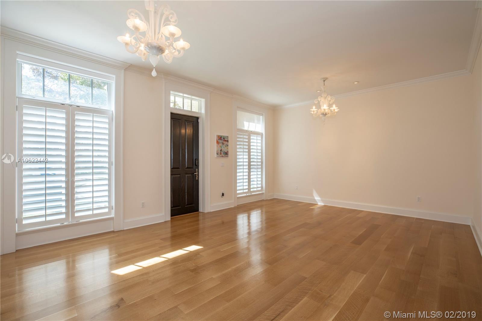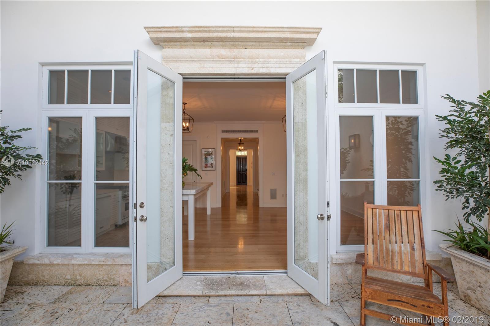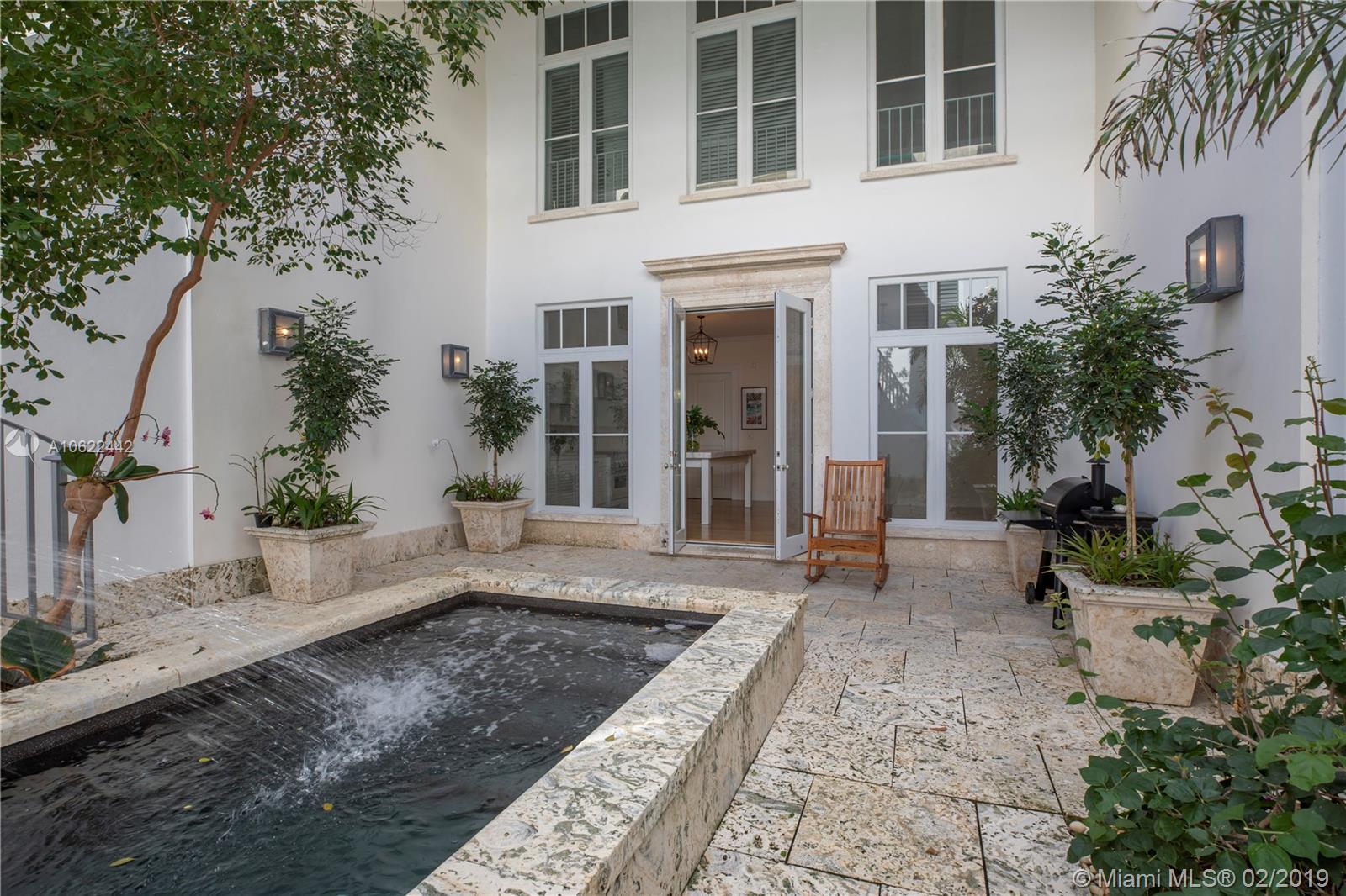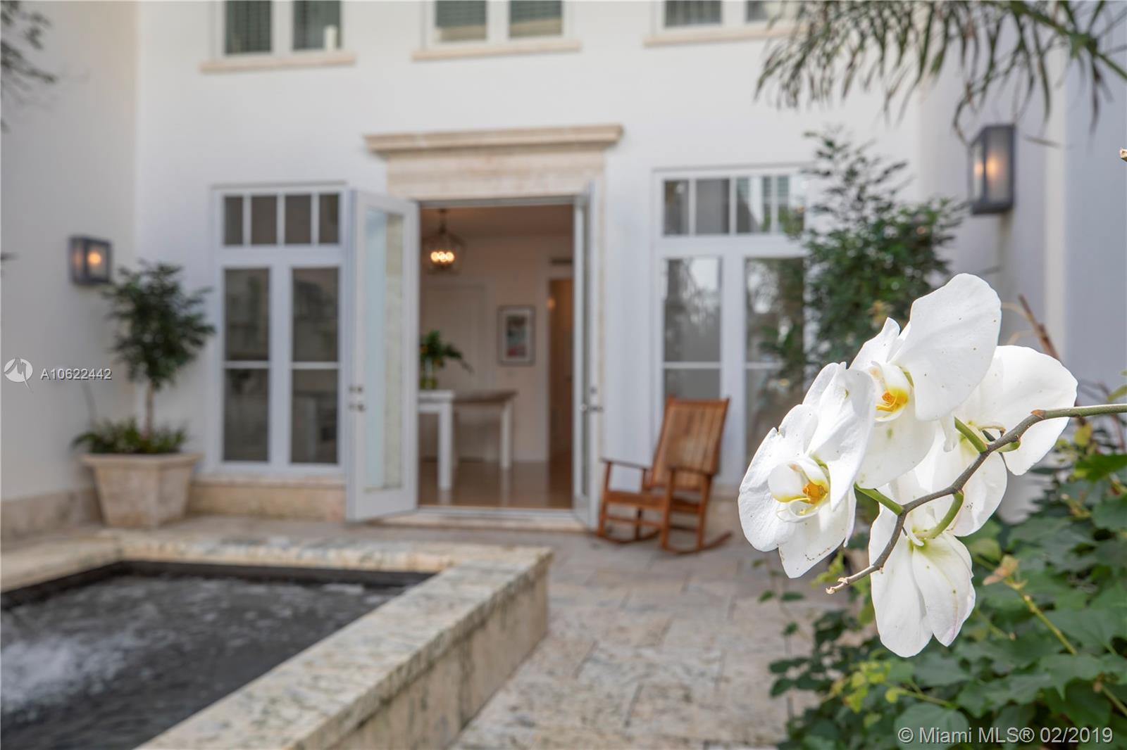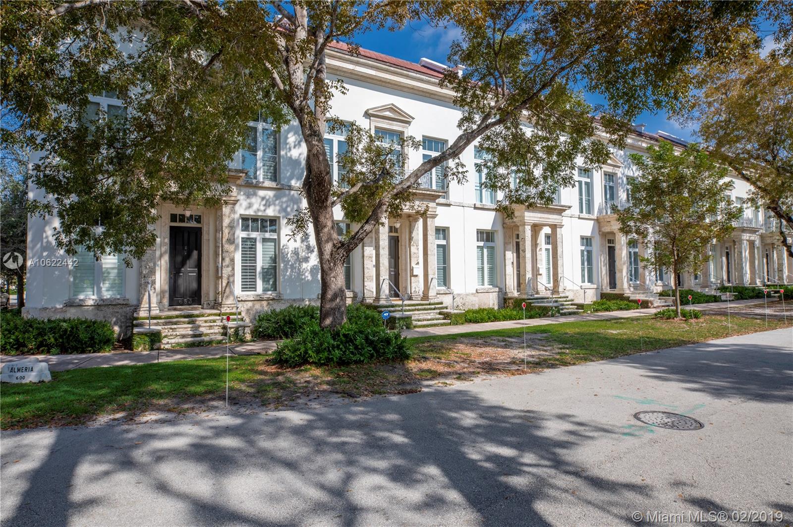 Sophisticated elegance abounds in this luxurious townhome in the award-winning Almeria Row. Volume ceilings, high end finishes, gleaming oak wood floors, and impact windows and doors are just some of the highlights of the timeless design. The open concept kitchen features Calcutta marble countertops and island, white louvered cabinets, top-of-the-line appliances and an expansive butler’s pantry. 4 bedrooms including 2 master suites in main house and 2 en-suite guestrooms above the 2-car garage. Separating the main house from the guest house is a private coral-stone courtyard centered by a serene pool/fountain. Enjoy refined living in a relevant location nestled among the trees on the beautiful Almeria Avenue and within walking distance to all that Coral Gables has to offer. SqFt per Tax.