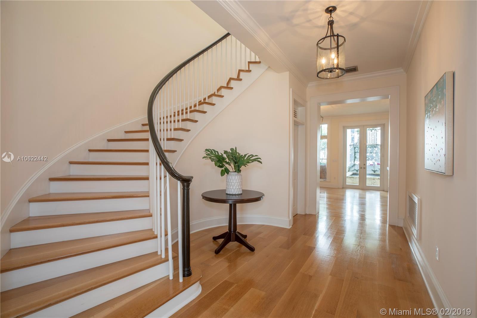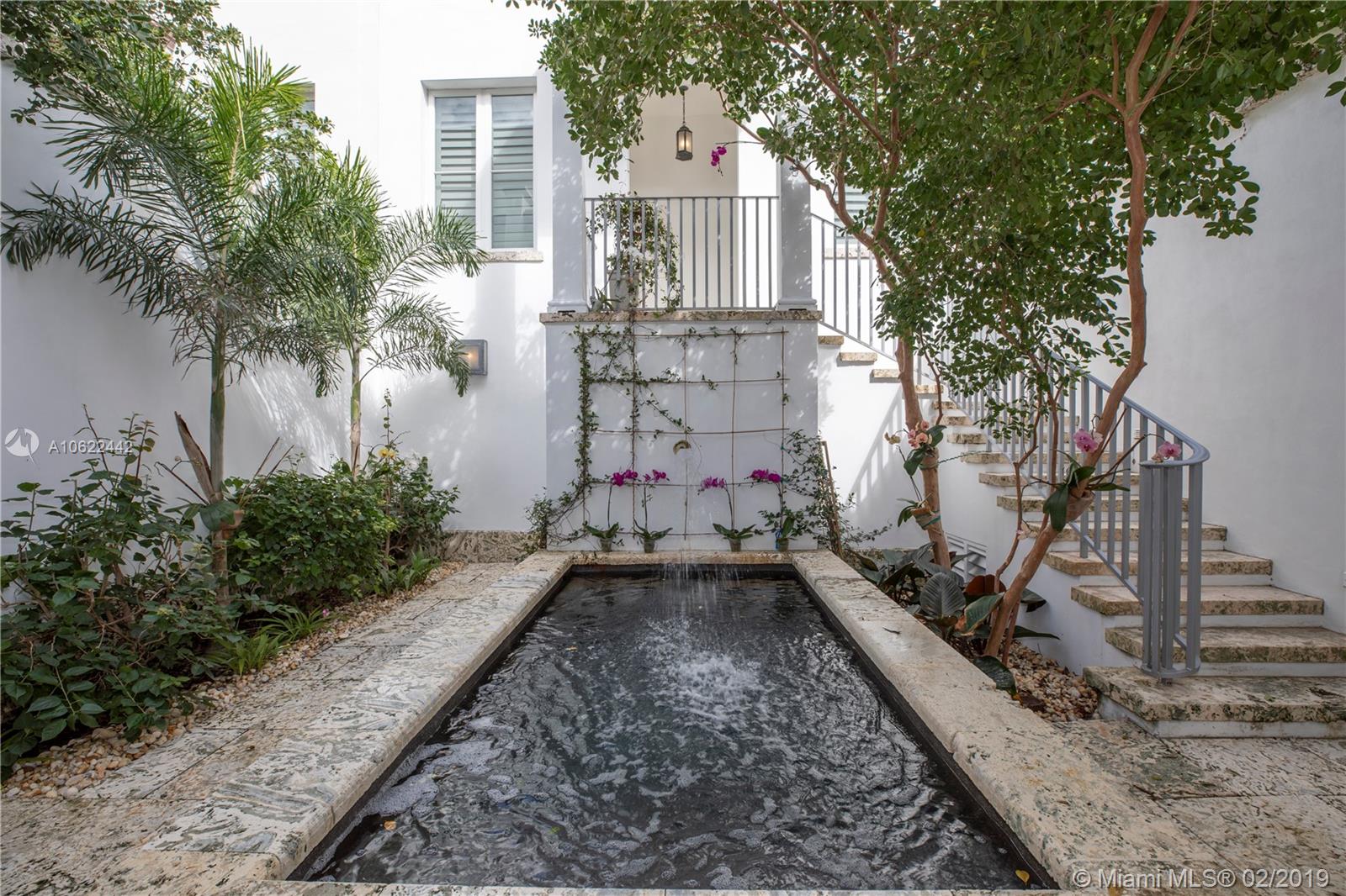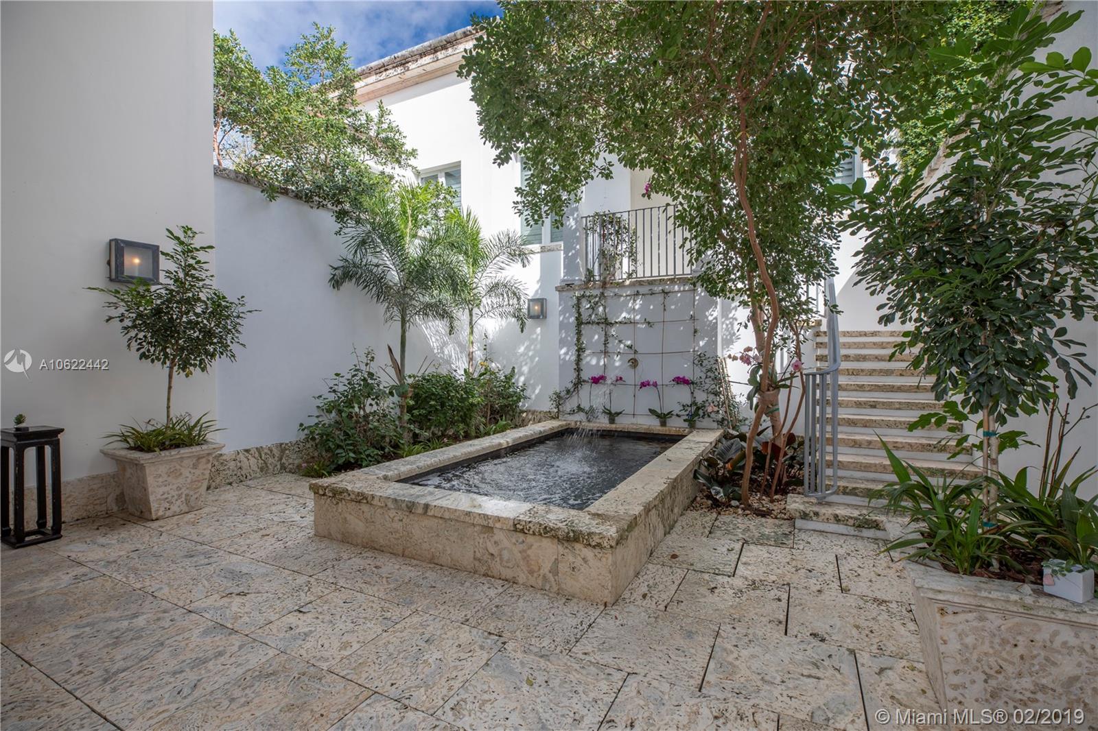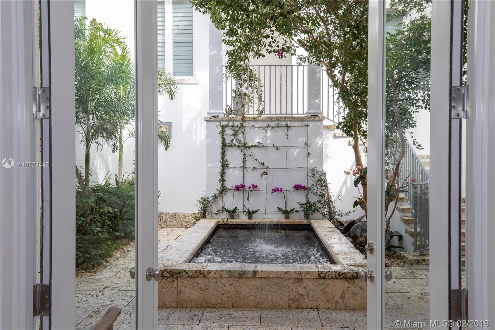 Sophisticated elegance abounds in this luxurious townhome in the award-winning Almeria Row. Volume ceilings, high end finishes, gleaming oak wood floors, and impact windows and doors are just some of the highlights of the timeless design. The open concept kitchen features Calcutta marble countertops and island, white louvered cabinets, top-of-the-line appliances and an expansive butler’s pantry. 4 bedrooms including 2 master suites in main house and 2 en-suite guestrooms above the 2-car garage. Separating the main house from the guest house is a private coral-stone courtyard centered by a serene pool/fountain. Enjoy refined living in a relevant location nestled among the trees on the beautiful Almeria Avenue and within walking distance to all that Coral Gables has to offer. SqFt per Tax.