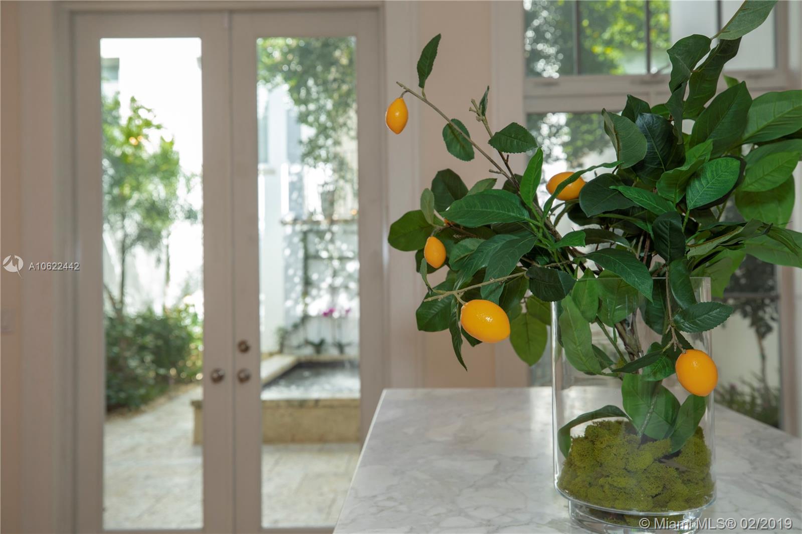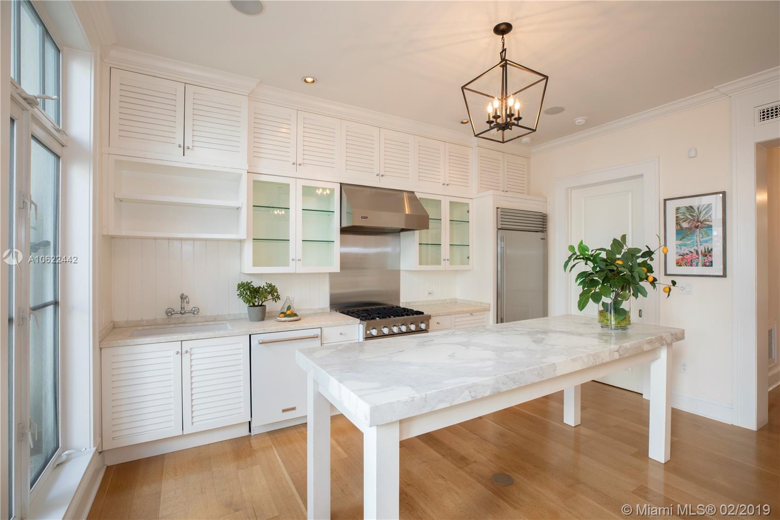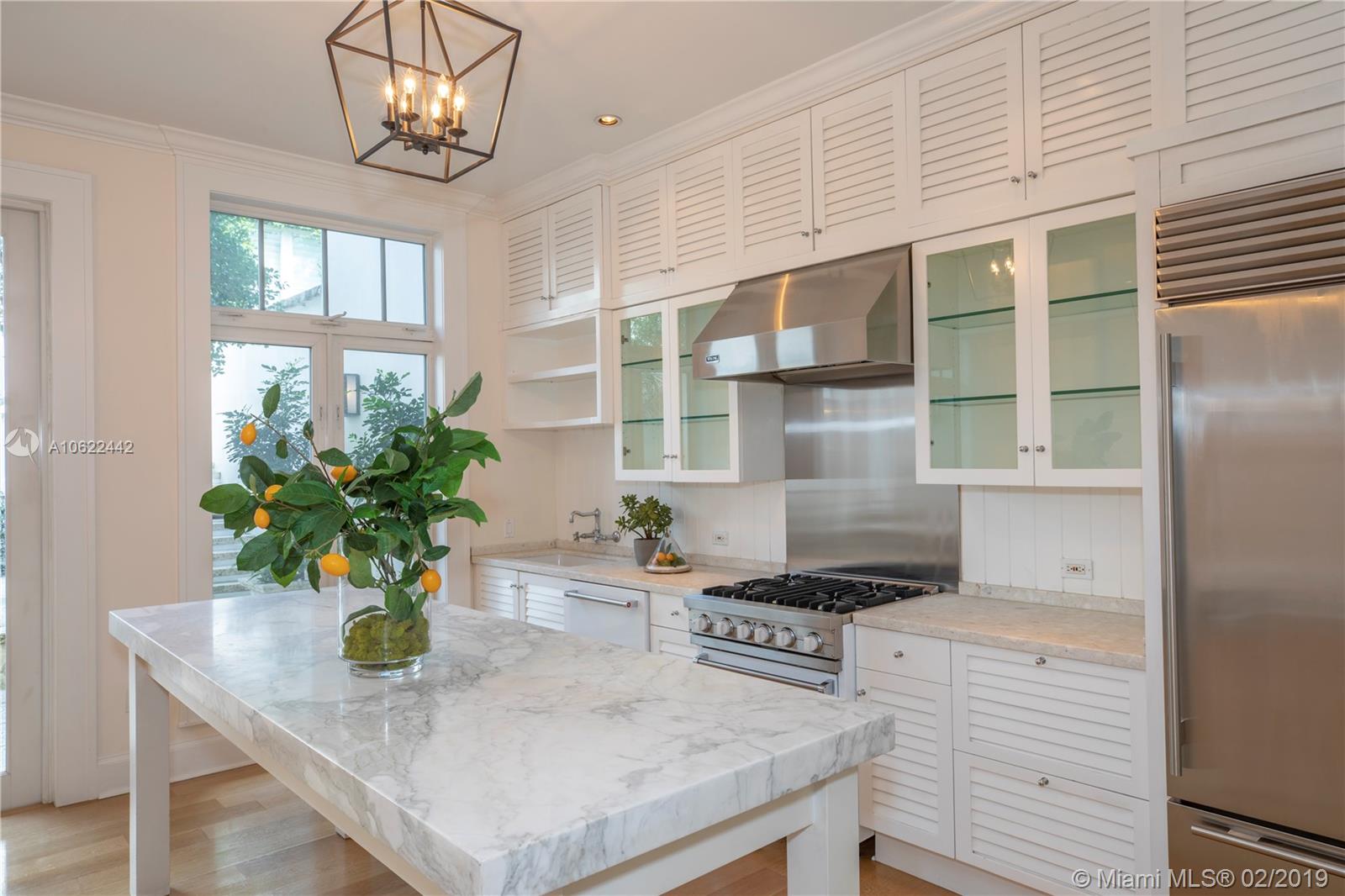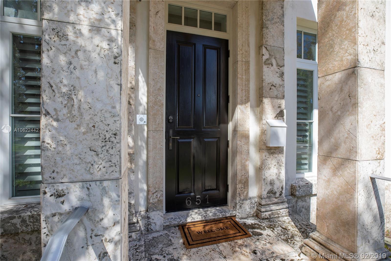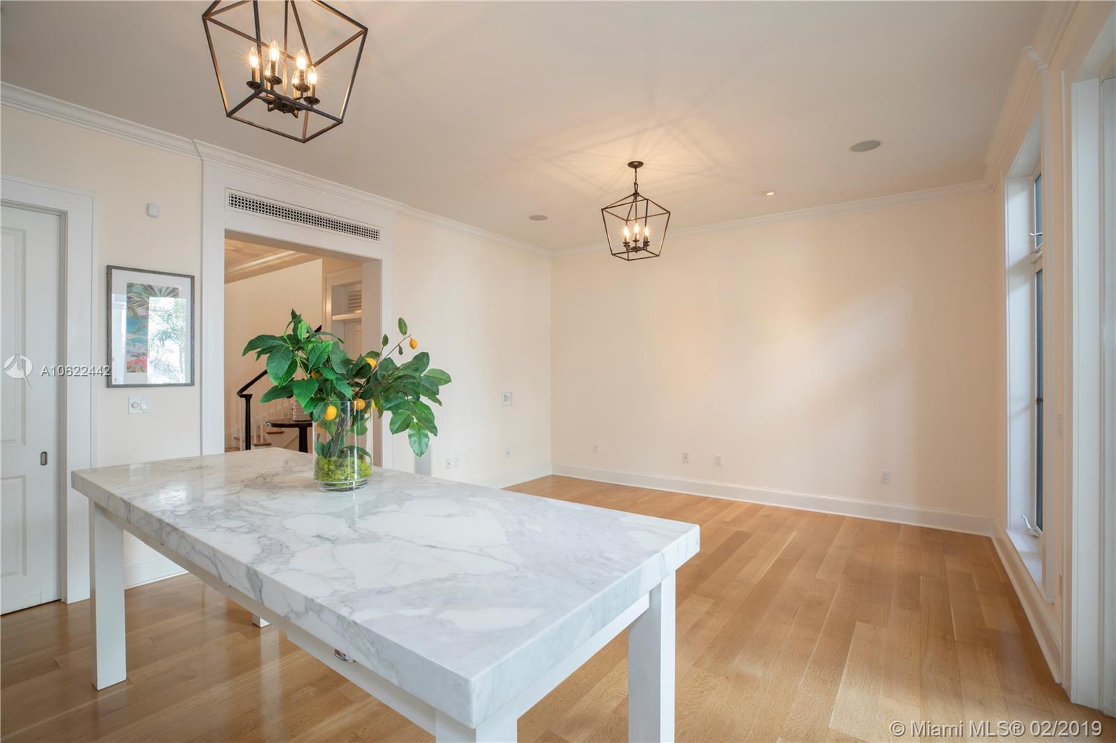 Sophisticated elegance abounds in this luxurious townhome in the award-winning Almeria Row. Volume ceilings, high end finishes, gleaming oak wood floors, and impact windows and doors are just some of the highlights of the timeless design. The open concept kitchen features Calcutta marble countertops and island, white louvered cabinets, top-of-the-line appliances and an expansive butler’s pantry. 4 bedrooms including 2 master suites in main house and 2 en-suite guestrooms above the 2-car garage. Separating the main house from the guest house is a private coral-stone courtyard centered by a serene pool/fountain. Enjoy refined living in a relevant location nestled among the trees on the beautiful Almeria Avenue and within walking distance to all that Coral Gables has to offer. SqFt per Tax.