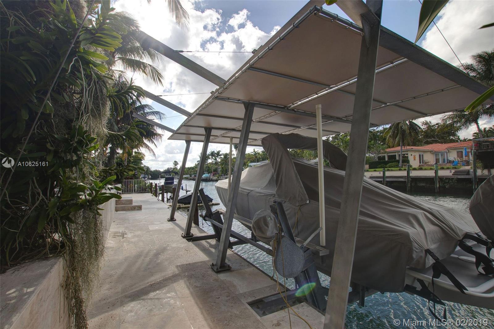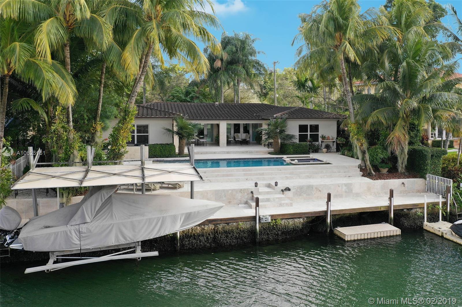 FINALLY a perfect waterfront home completely renovated (except kitchen) with a boat lift and dock. Set on a lush tropically landscaped lot in a close-in neighborhood with a brick circular driveway, copper gutters, beautiful iron gates, California shutters throughout, newly installed LED lighting, a digital security system with perimeter outside cameras, 2 new AC units, gorgeous built-ins in the family room/den, an irrigation watering system in the trees plus a water filtration. Enjoy outdoor living in the covered patio or swim in the pool with separate Jacuzzi while overlooking the serene canal.