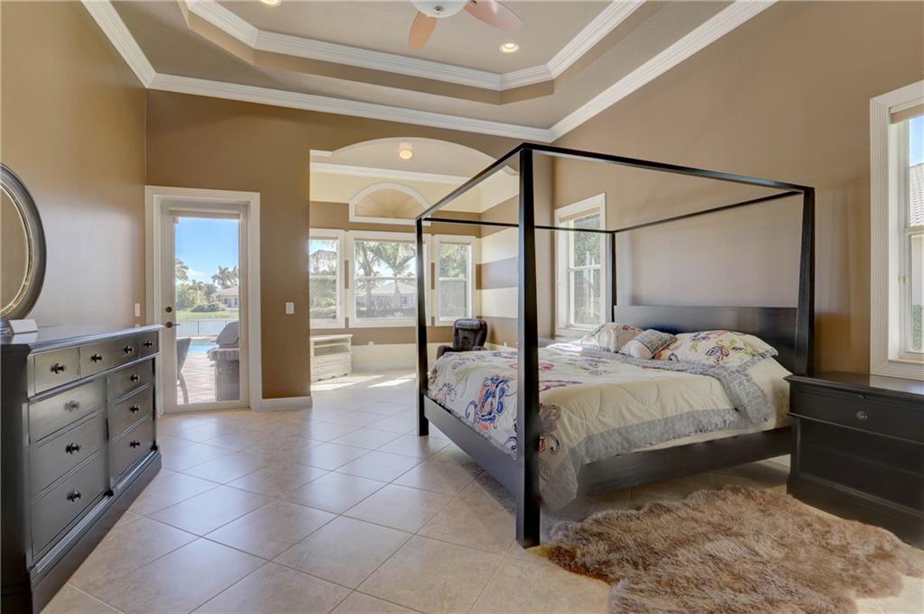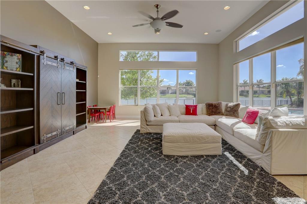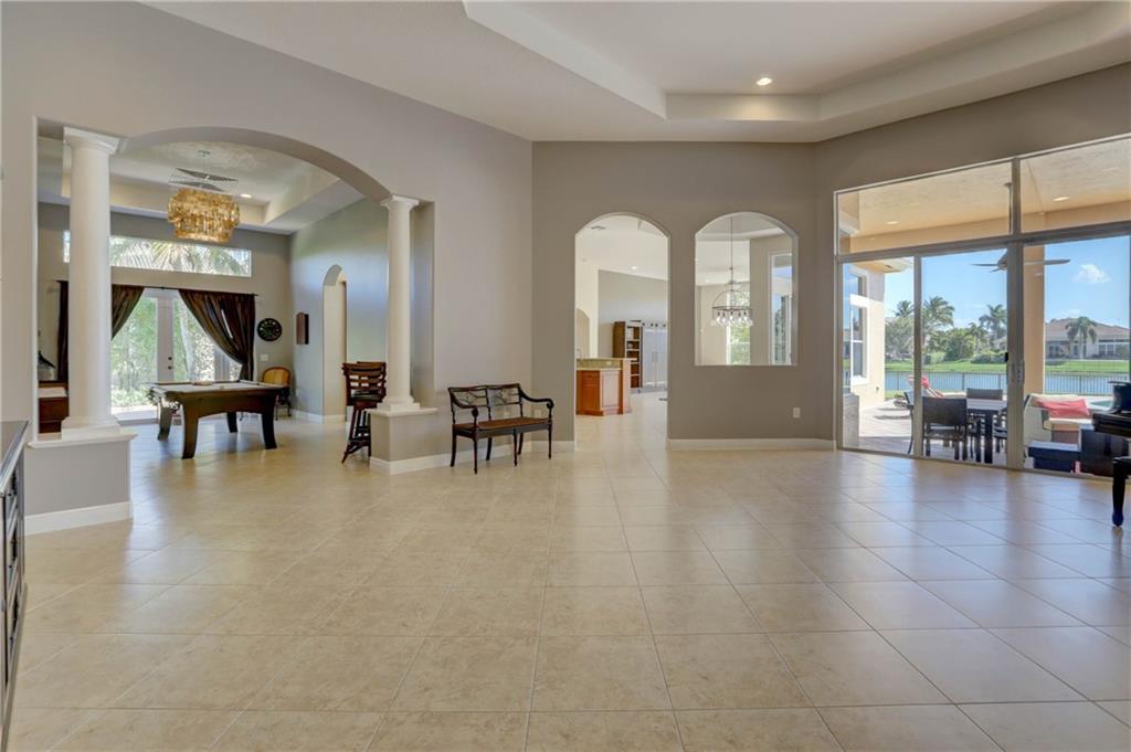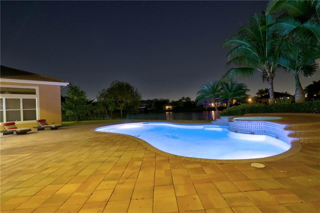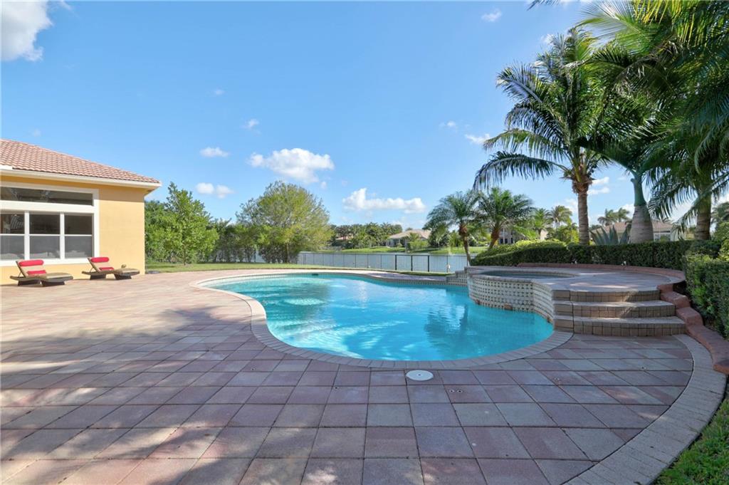 Tall Ceilings & Water view as soon as you open the door. Big bright floor plan w/lots of windows. This home has it all. Split plan, Huge Master Suite w/sitting area & upgraded closets. Cabana bath, 3rd car garage floor raised & converted to huge bonus/play/media room w/AC. Oversize open Granite Kitchen w/SS Appliances is the center of the house. Triple Split plan. Huge 2nd & 3rd bedrooms on 1 wing, additional true 4th & 5th bedrooms on 2nd wing. Office(could be 6th Bed). Upgraded Granite Laundry Room. Extra extended Patio outside Formal Dining room & huge covered terrace overlooking pool, great for entertaining. Amenities: 24 HR Manned Security, Party Pavilion, Tot Lot, Open Play Field, Jogging Paths, Tennis & Basketball Courts. Convenient to Shopping, Dining, Entertainment, Travel & more.