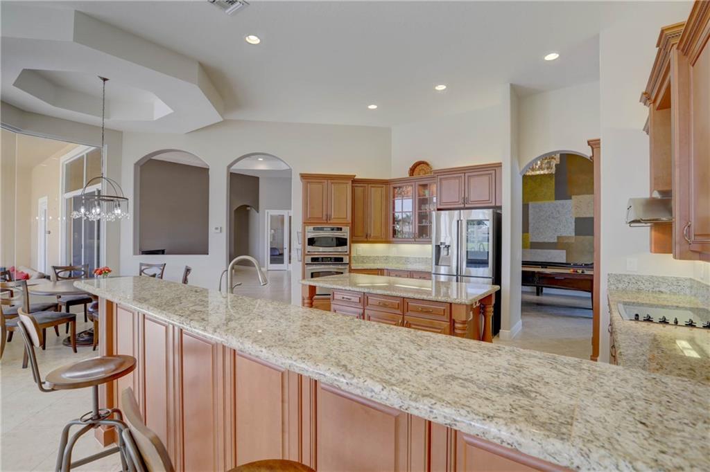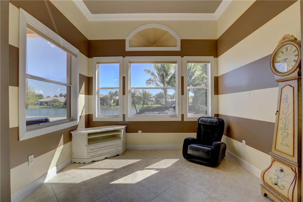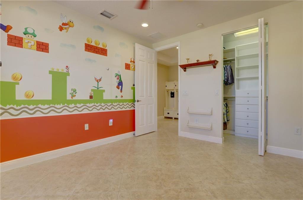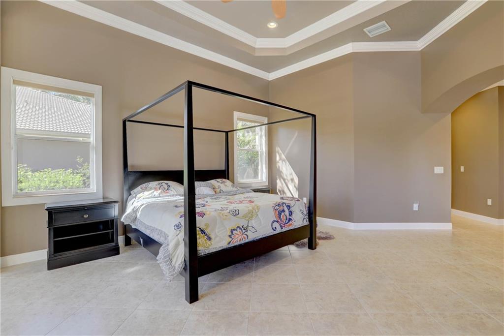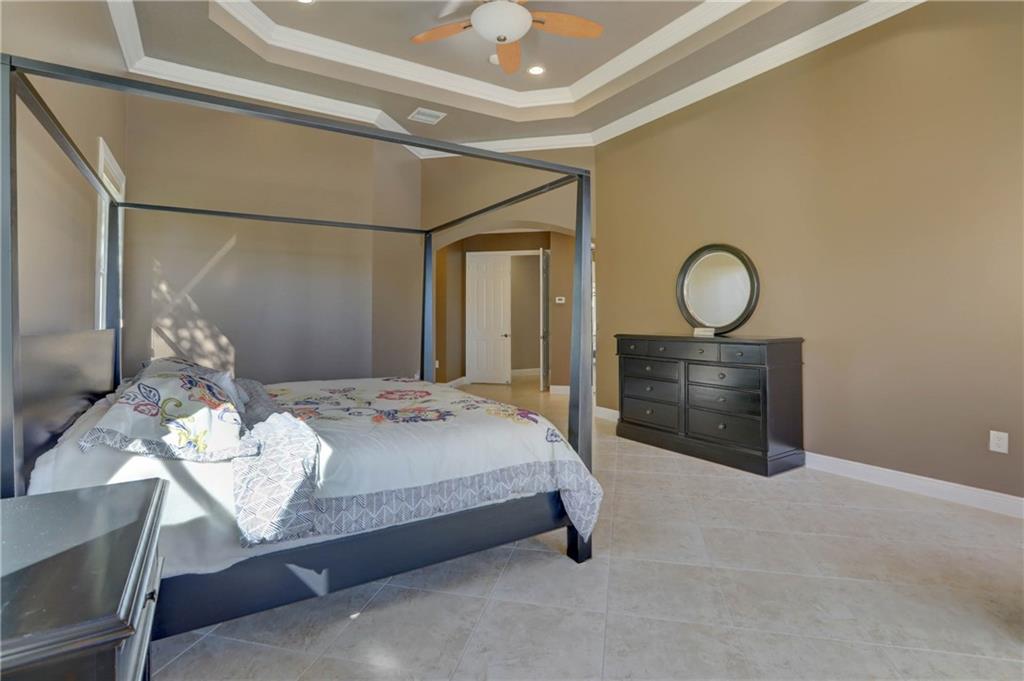 Tall Ceilings & Water view as soon as you open the door. Big bright floor plan w/lots of windows. This home has it all. Split plan, Huge Master Suite w/sitting area & upgraded closets. Cabana bath, 3rd car garage floor raised & converted to huge bonus/play/media room w/AC. Oversize open Granite Kitchen w/SS Appliances is the center of the house. Triple Split plan. Huge 2nd & 3rd bedrooms on 1 wing, additional true 4th & 5th bedrooms on 2nd wing. Office(could be 6th Bed). Upgraded Granite Laundry Room. Extra extended Patio outside Formal Dining room & huge covered terrace overlooking pool, great for entertaining. Amenities: 24 HR Manned Security, Party Pavilion, Tot Lot, Open Play Field, Jogging Paths, Tennis & Basketball Courts. Convenient to Shopping, Dining, Entertainment, Travel & more.