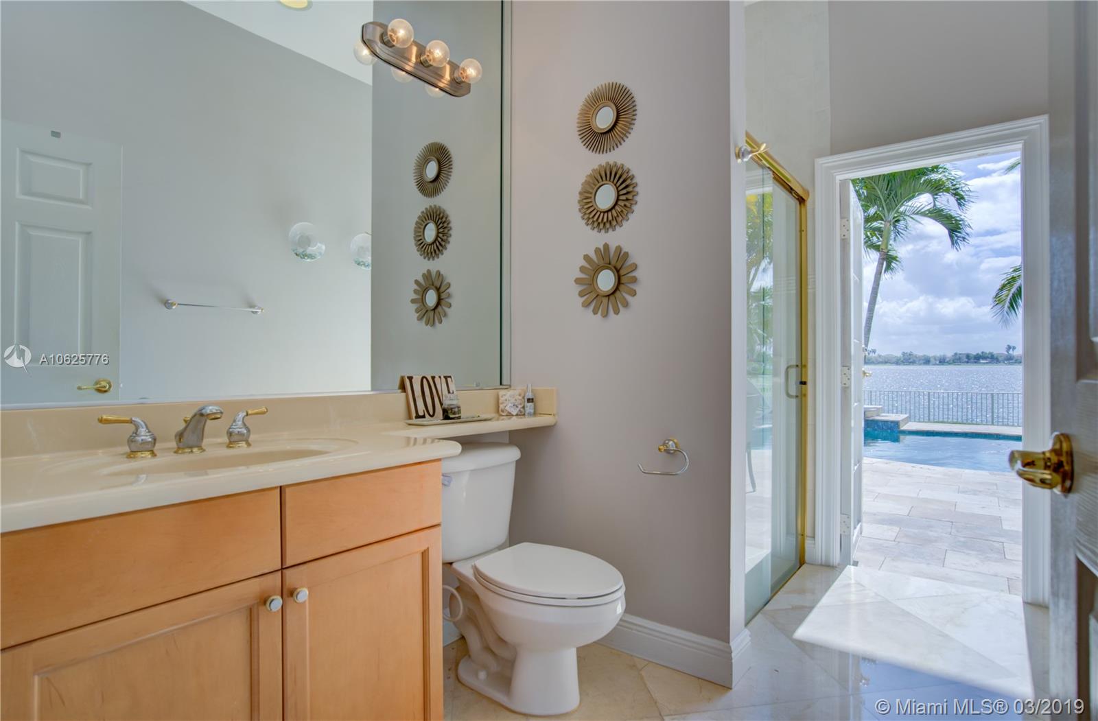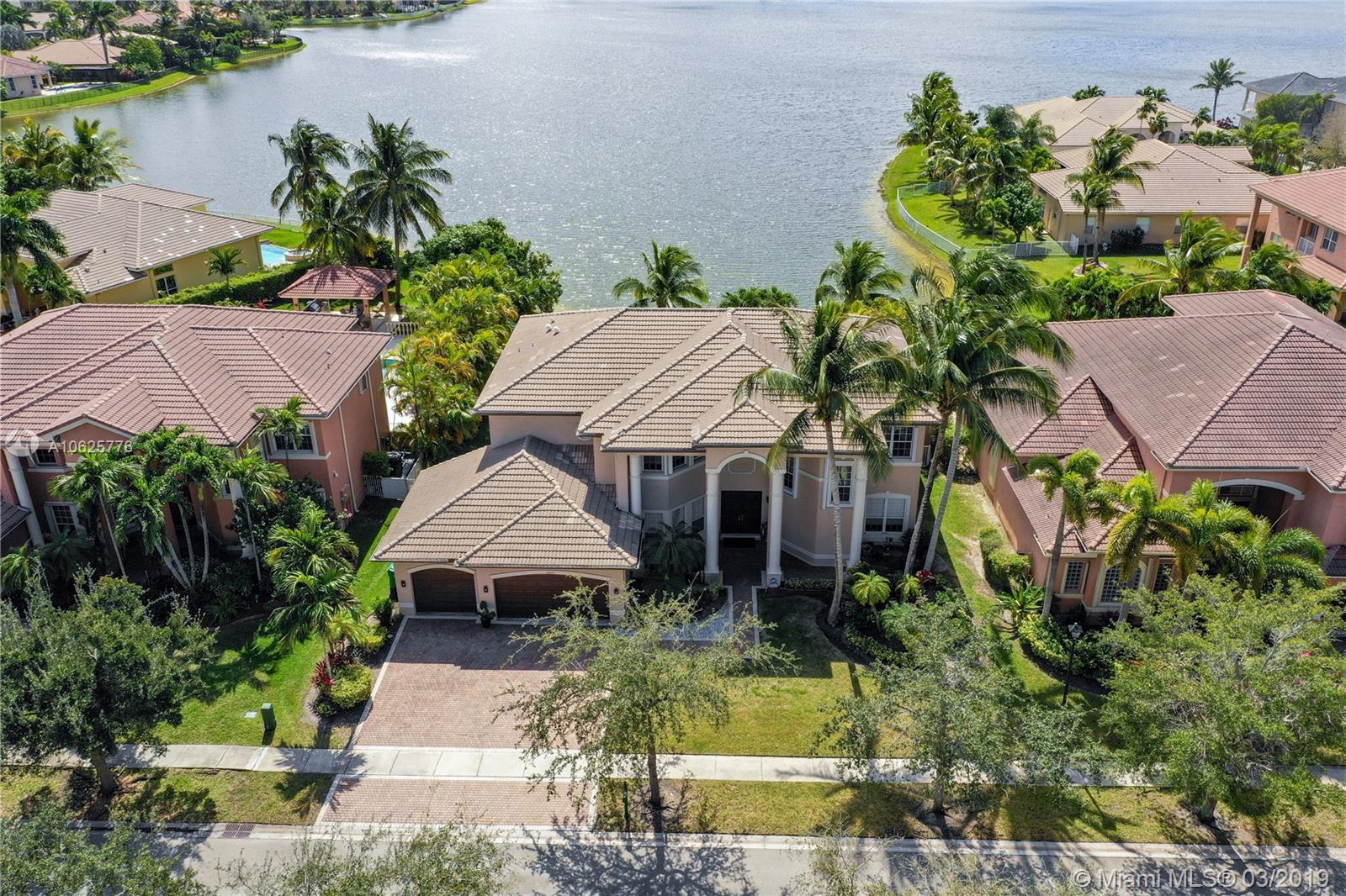 STUNNING TWO STORY HOME 6/4.5 WITH AMAZING ENDLESS LAKE VIEWS!! BEAUTIFUL OPEN LAYOUT WITH LOTS OF LIGHTS, SPACIOUS AND GOURMET KITCHEN WITH GRANITE COUNTERTOPS, WHITE TALL WOOD CABINETS, UPGRADED S/S APPLIANCES, CENTER ISLAND, CROWN MOLDING, MARBLE FLOORS THROUGHOUT THE FIRST FLOOR, WOODEN FLOORS IN THE SECOND FLOOR! PRIVATE MASTER BEDROOM W/BALCONY SITTING AREA ALONG WITH HIS AND HERS BATHROOMS OVER LOOKING THE GORGEOUS LAKE AND POOL. TWO BEDROOMS DOWNSTAIRS, SECURITY CAMERA SYSTEM INSTALLED AROUND HOUSE! OVERSIZED LOT OF 12,287 SQFT OVERLOOKING AMAZING, PEACEFUL SUNSETS AND ENDLESS WATER VIEWS. ALONG WITH POOL/JACUZZI.