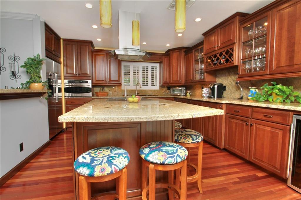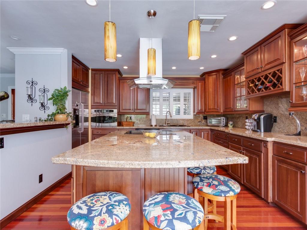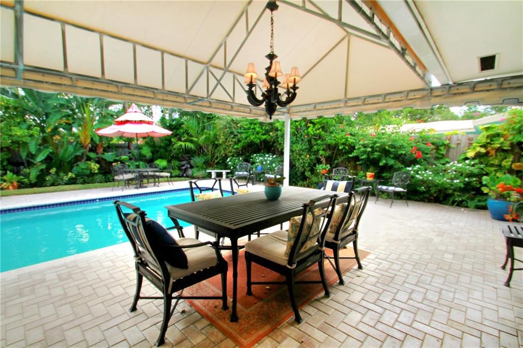 Designed with entertaining in mind, this updated home features spectacular outdoor living space! Lush, flowering landscaping surrounds the pool, creating a private, tropical oasis. Large, fenced corner lot offers a park like setting. The covered patio area provides Al fresco dining and living room. Walls of sliders bring the outdoors, well...in! The interior features an open floor plan. Chefs kitchen w/ huge center island, granite, stainless steel, + wine cooler. Real Brazilian cherry hardwood floors- Plantation shutters -Crown molding- New lighting -Custom cabinetry, and more. Large interior laundry room, plus extra storage. Brand new A/C. New 2 tone S tile roof. New electrical panels inside and out. Impact windows. Oversize 1 car garage fits a large SUV and all your stuff too.