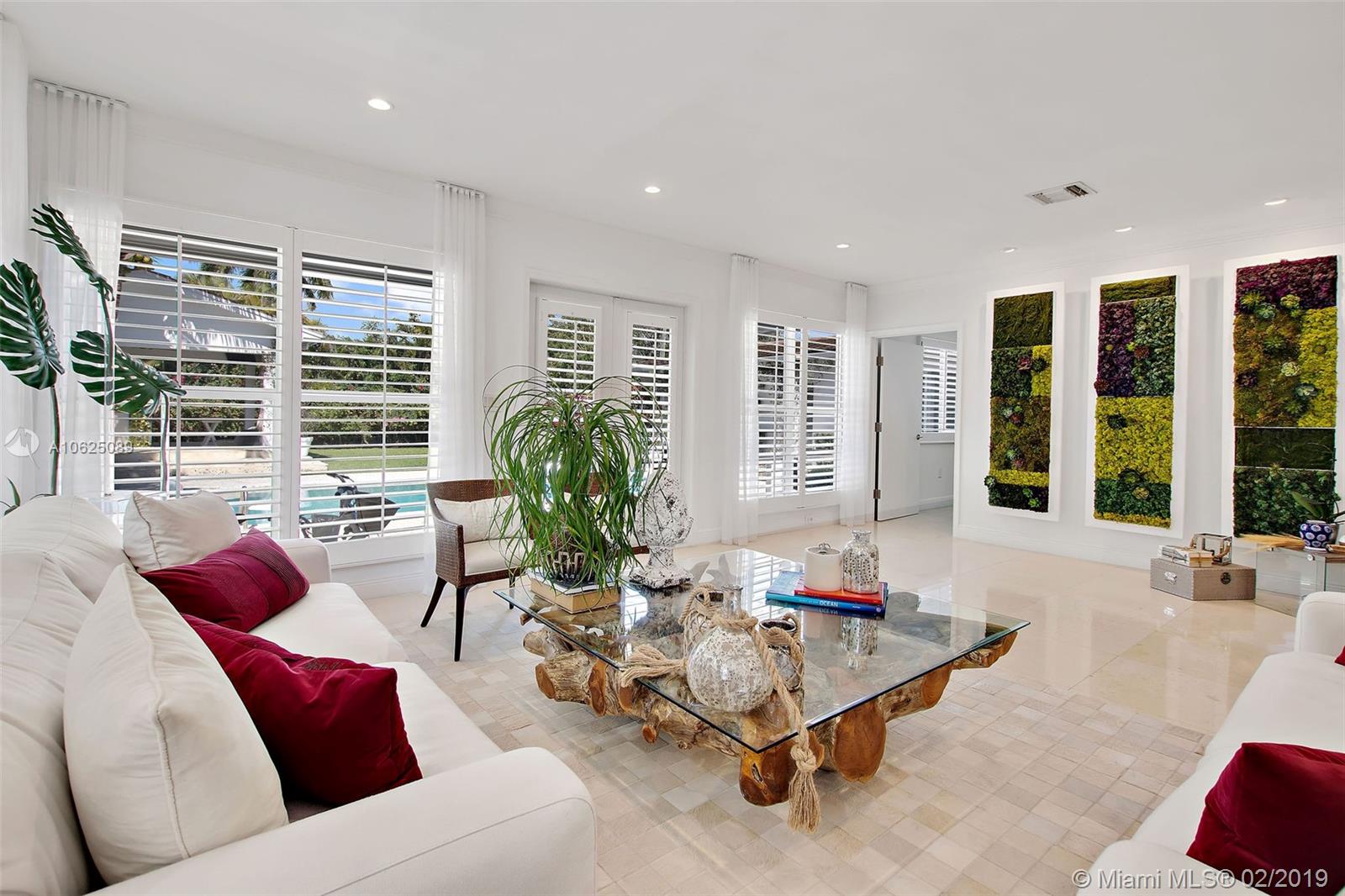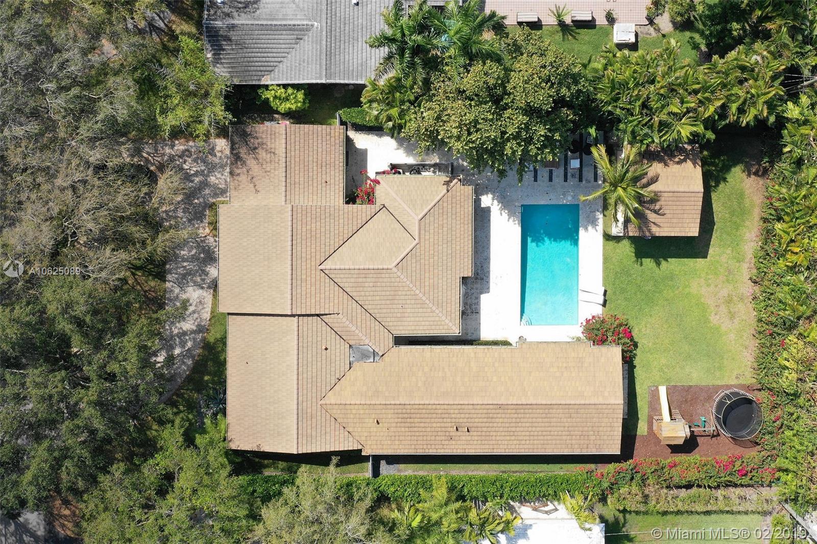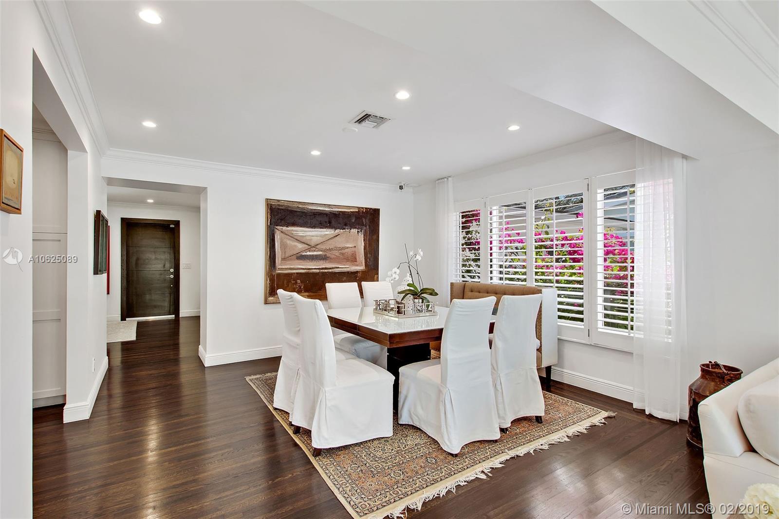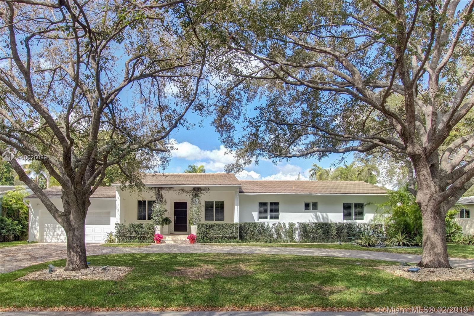 Relaxing ambiance defines this completely remodeled Plantation style home. Enjoy the beach house feeling as you enter the living/dining room, abundant natural light, white plantation shutters & beautiful garden/ pool/gazebo view. Elegant wood floors throughout the house, marble in living room, French doors open to the garden, high impact windows, comfortable floor plan, 5 bedrooms w/ private bath + a cabana bath. Kitchen connects two areas of the house, white wood cabinets with Carrara marble counter top, SS appliances & wine cooler. The summer kitchen by the pool is the perfect place to entertain any time of year, grill, refrigerator, ice maker & sink. Oversize lot, lush landscaping & gorgeous Bougainvillea.