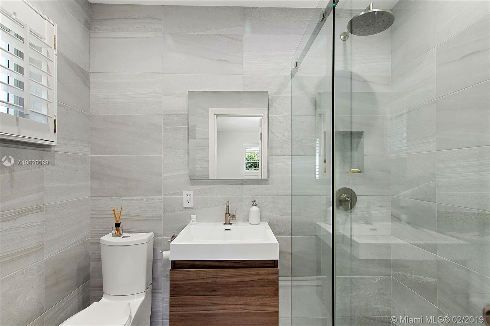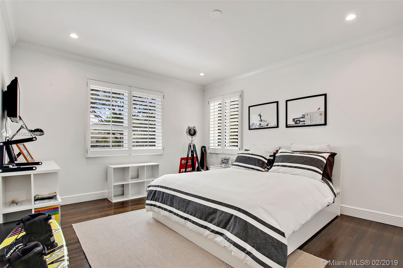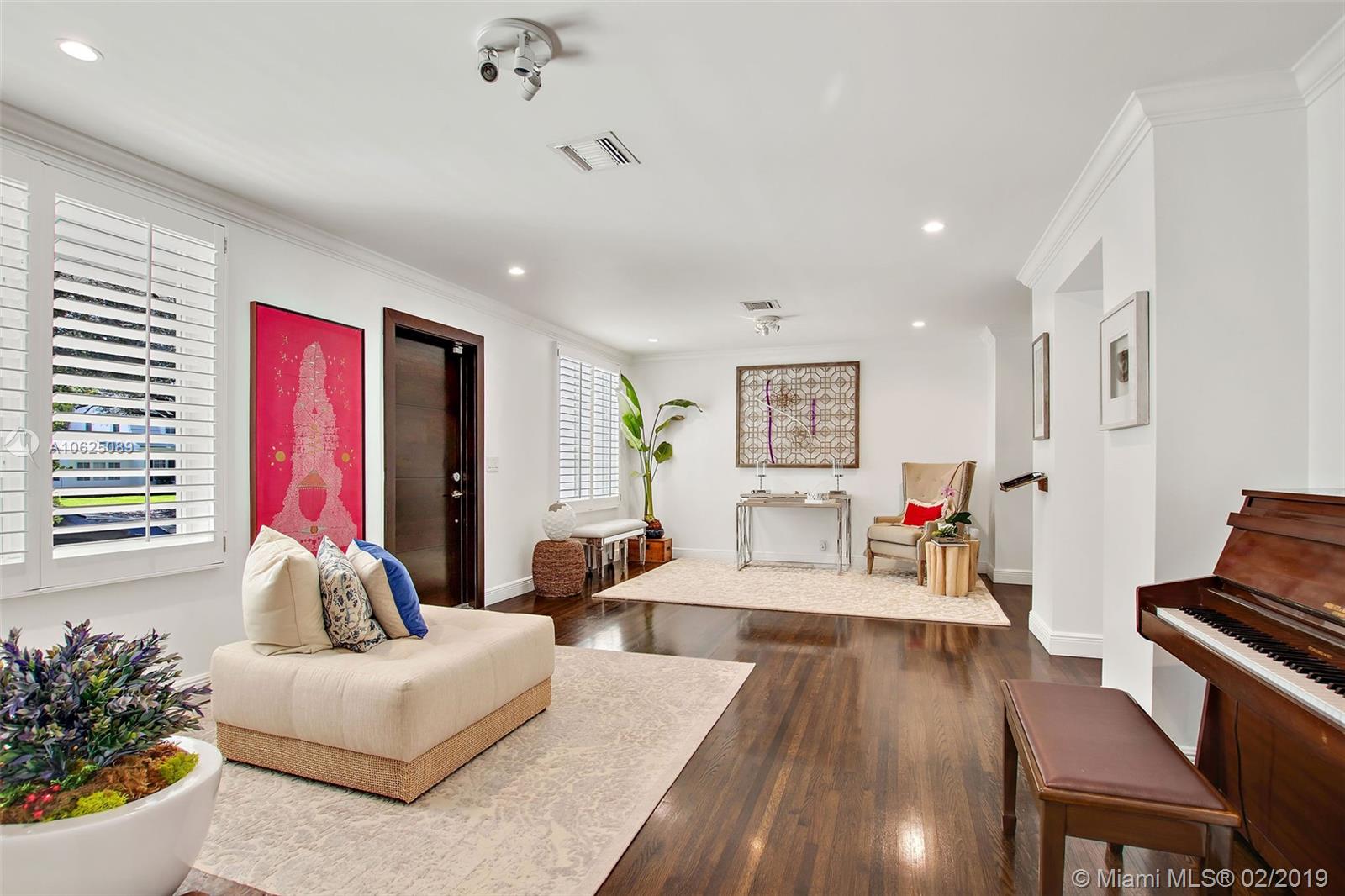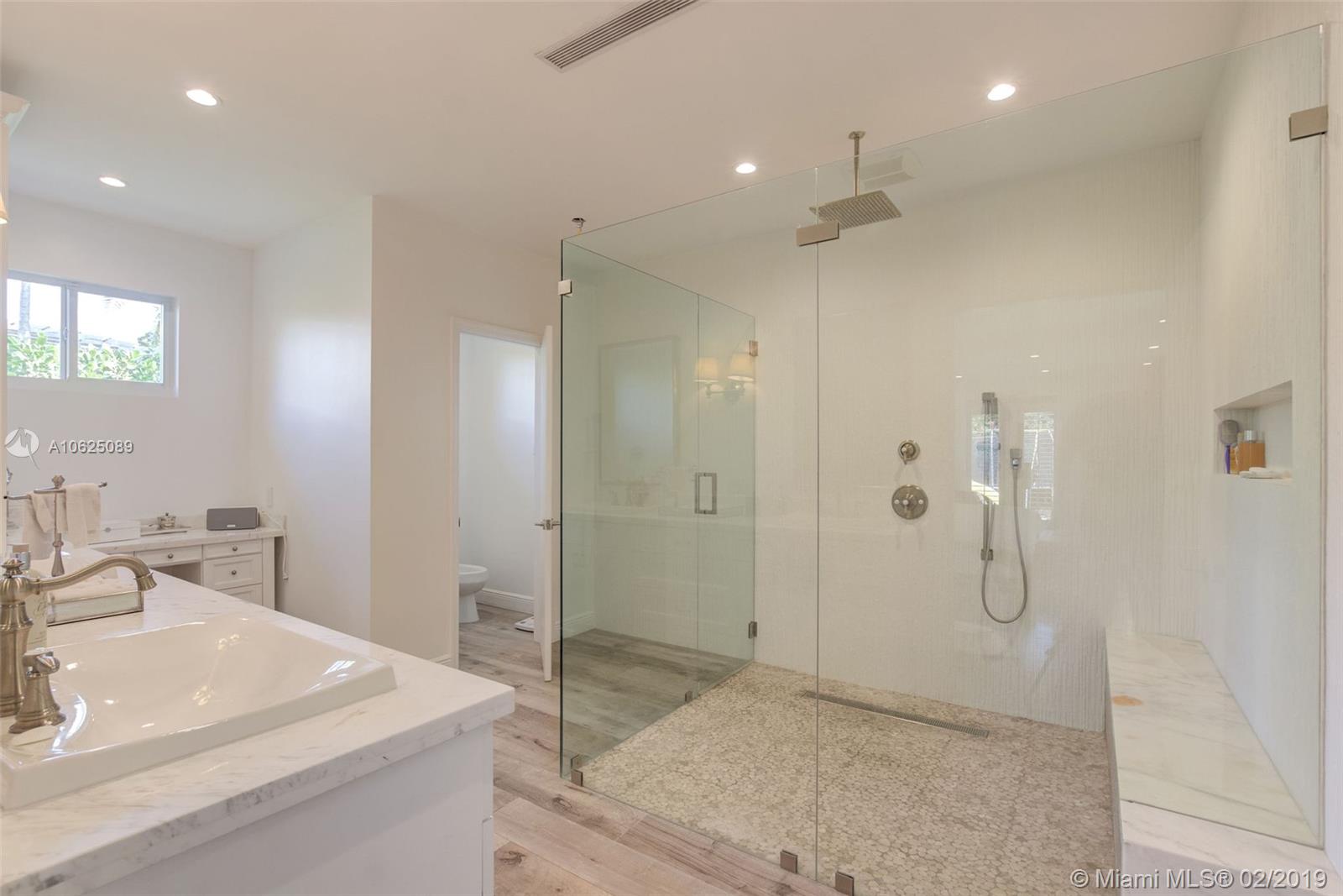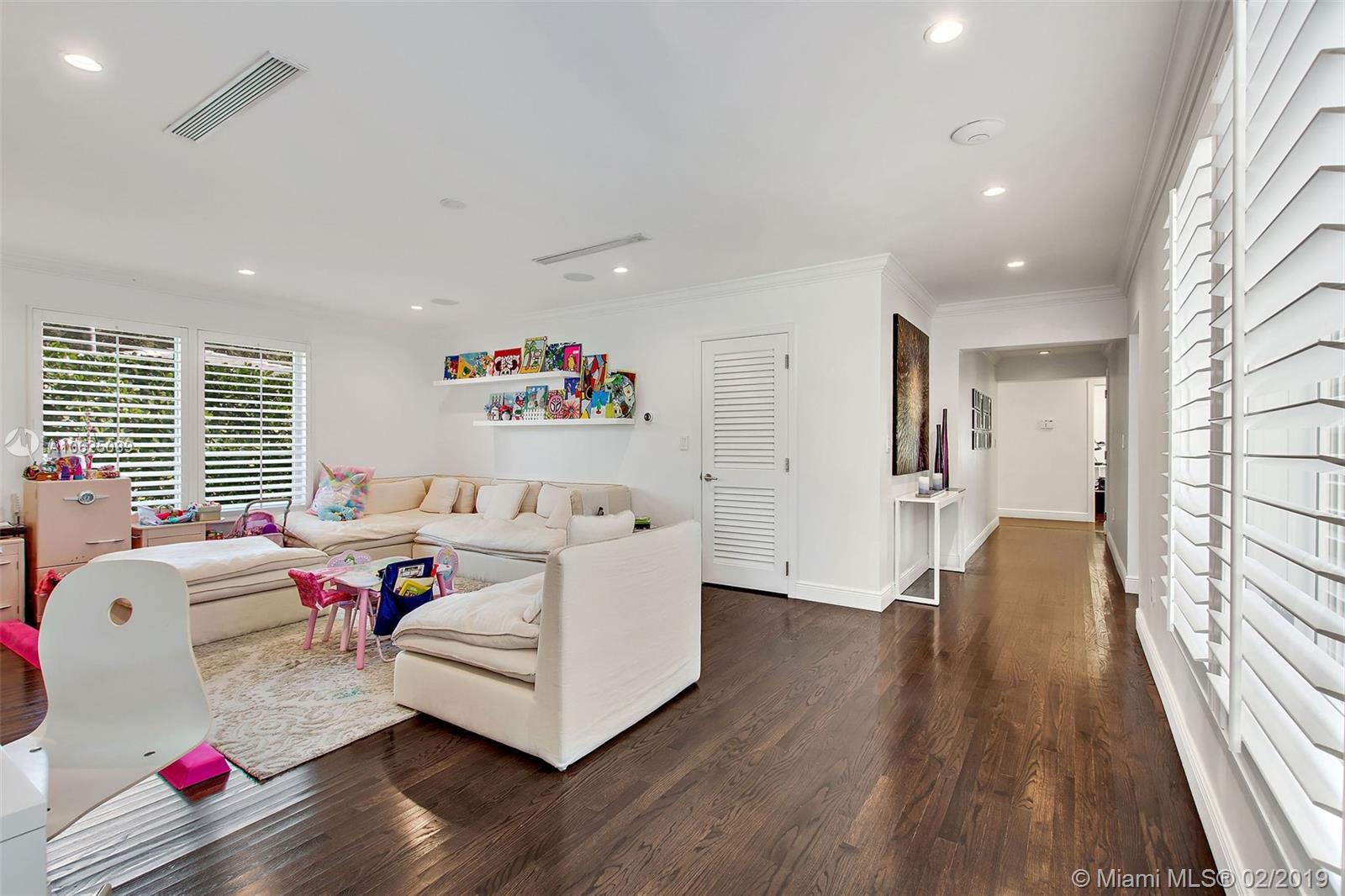 Relaxing ambiance defines this completely remodeled Plantation style home. Enjoy the beach house feeling as you enter the living/dining room, abundant natural light, white plantation shutters & beautiful garden/ pool/gazebo view. Elegant wood floors throughout the house, marble in living room, French doors open to the garden, high impact windows, comfortable floor plan, 5 bedrooms w/ private bath + a cabana bath. Kitchen connects two areas of the house, white wood cabinets with Carrara marble counter top, SS appliances & wine cooler. The summer kitchen by the pool is the perfect place to entertain any time of year, grill, refrigerator, ice maker & sink. Oversize lot, lush landscaping & gorgeous Bougainvillea.