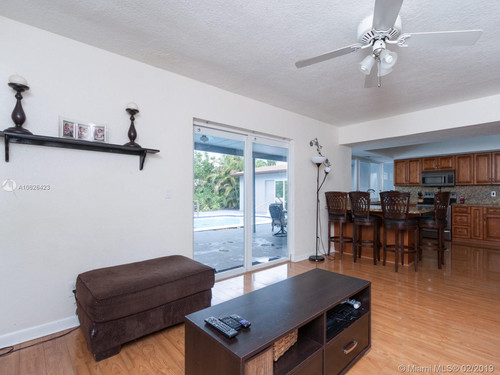 Fabulous Location! Come and see this Large 4 bedroom 2 Bath with 2 car garage and pool. Kitchen has granite countertop and backsplash and stainless steel appliances. There is a large living room and family room. The back yard has a huge patio and pool and is great for entertaining. The home has a newer roof added in 2015. It is also fitted completely with Hurricane impact windows and doors and brand new gutter system. The pool was also resurfaced with Diamond Brite.