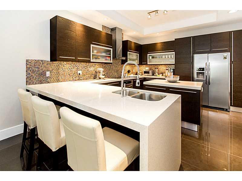FABULOUS 2 BR/3.5 BATHS+DEN. TOWNHOUSE OFFERS A PRIVATE ELEVATOR, GOURMET KITCHEN WITH S/S APPLIANCES, ITALIAN CABINETRY, QUARTZ COUNTERTOPS & GLASS-TILE BACKSPLASH. ITALIAN PORCELAIN FLOORING THROUGHOUT, 2 ZONE A/C, COMPLETE Q-HOME AUDIO SYSTEM W/BUILT-IN SPEAKERS THROUGHOUT. LARGE MASTER SUITE W/WALK-IN CLOSET, MASTER BATH HAS DUAL HEAD SHOWERS + JACUZZI TUB. DEN CAN BE CONVERTED TO 3RD BEDROOM. LARGE ROOFTOP TERRACE W/WEBER BBQ. 2 CAR GARAGE.