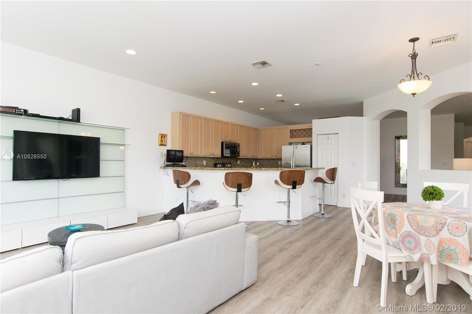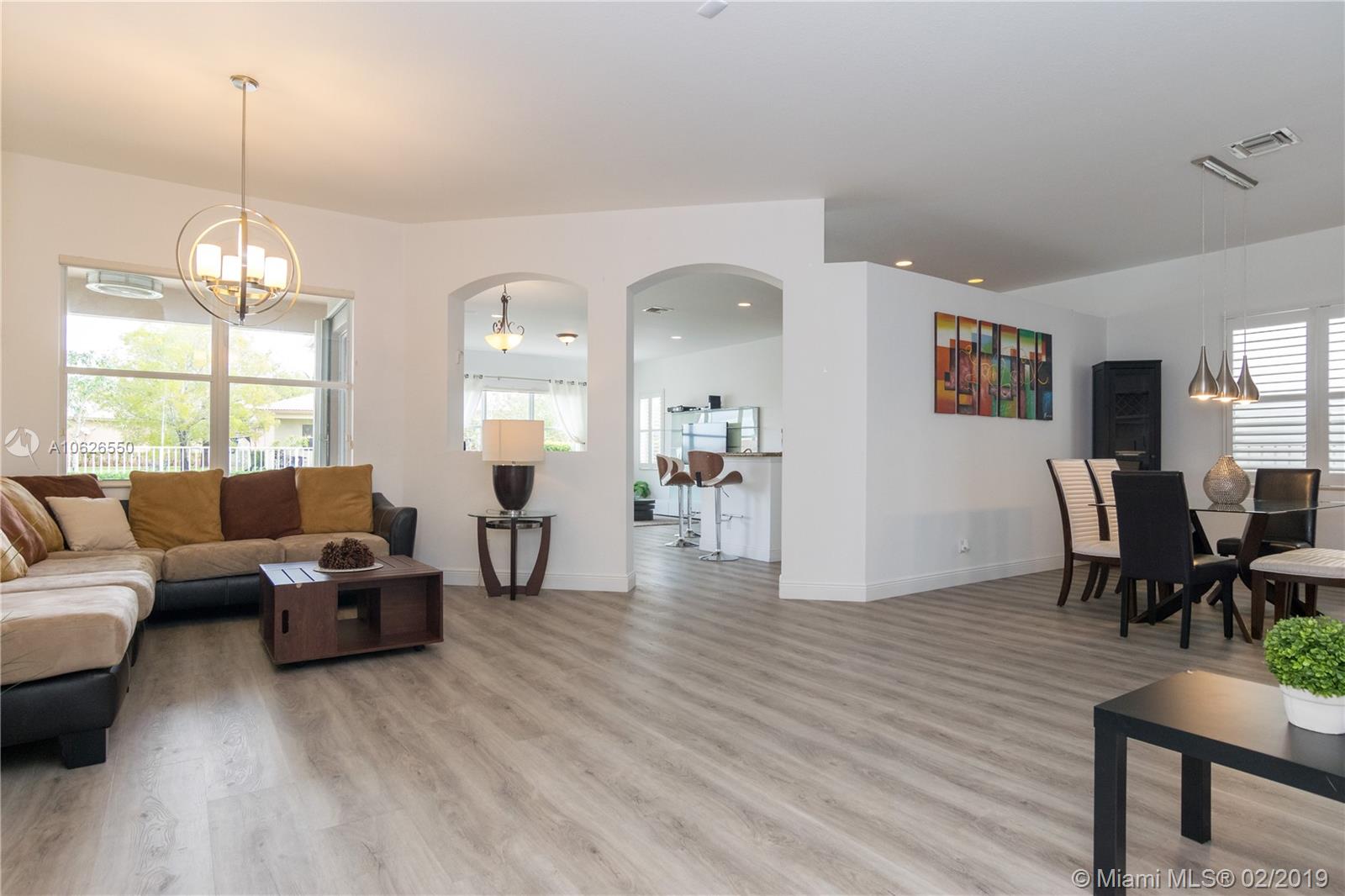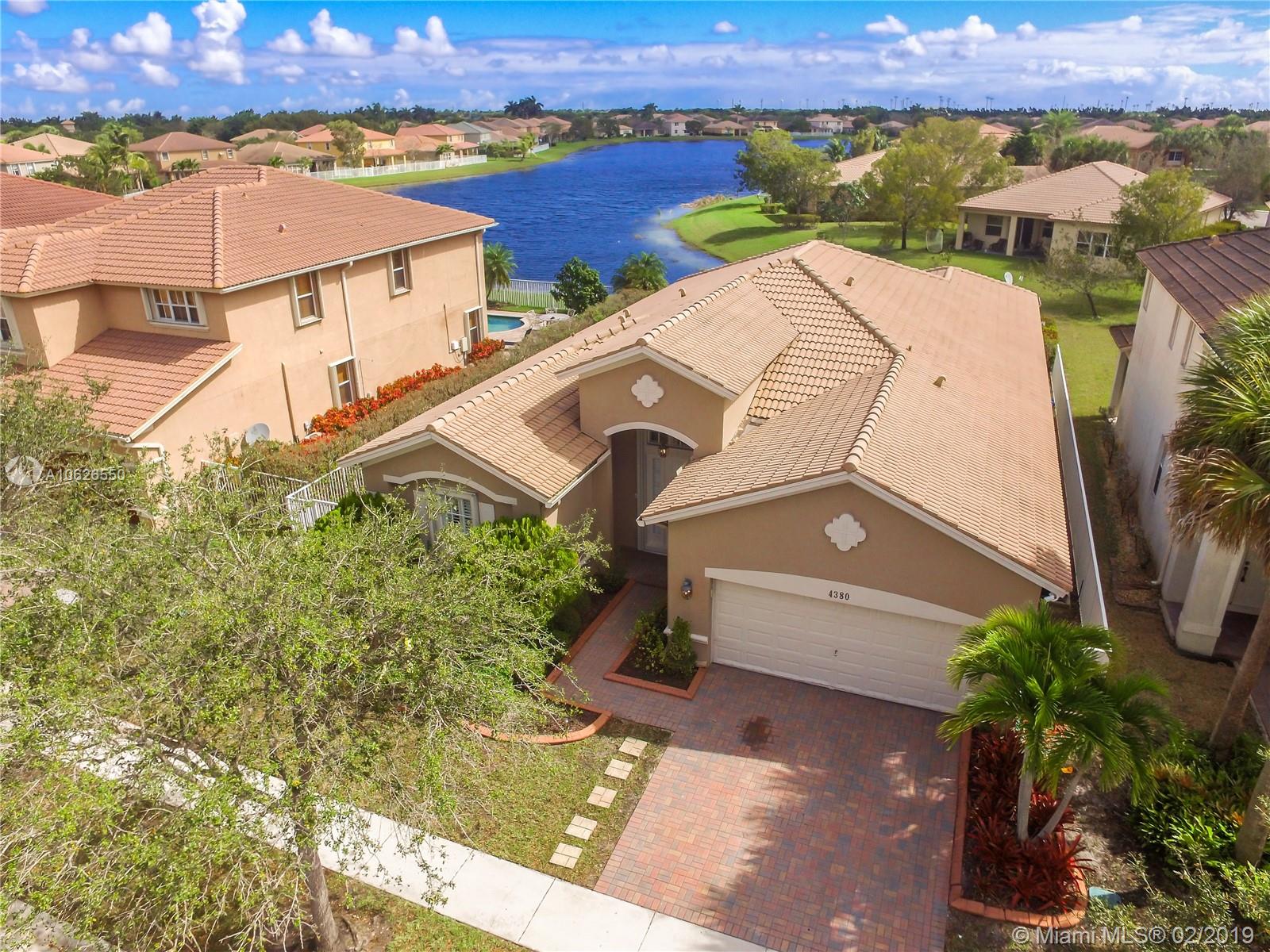 This home offers serenity, elegance and laid-back delights of a tuck away paradise called Isles of Weston. This home is located a few minutes away from the best schools in Weston. It offers 4 bedrooms/3 full baths with a beautiful open living area and a lovely backyard with covered patio, salt water pool and lake. The interior walls were recently painted with neutral colors, floors throughout are new, kitchen has granite counter top with stainless steel appliances, hurricane shutters, security cameras and audio wiring. HOA includes cable, internet, amazing club house with gym, pool, kids play area, basketball. The community has a grand entrance with security guard. This beautiful home awaits your family and offers the best of South Florida Living. Come soon before it is gone!!!