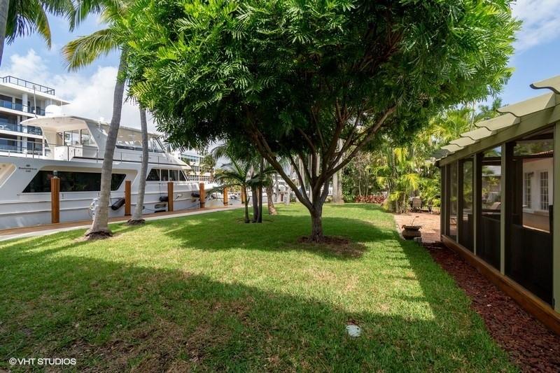Perfectly charming & beautifully maintained deep water home waiting to be taken to the next level! Amazing opportunity to update, add on, or build your dream home. Situated on one of the few streets with underground utilities and offering 90 feet of water with direct access to the Intracoastal and no fixed bridges to the ocean. 2/2 with an office/den, cozy light filled interior with spacious living room, inviting corner fireplace, generous master bedroom that opens to a totally private wrap-around screened porch with outdoor tub and shower. A wall of sliding glass doors opening to tranquil tropical views of mature palms and waterway. A wonderful chance to live the true Florida lifestyle!