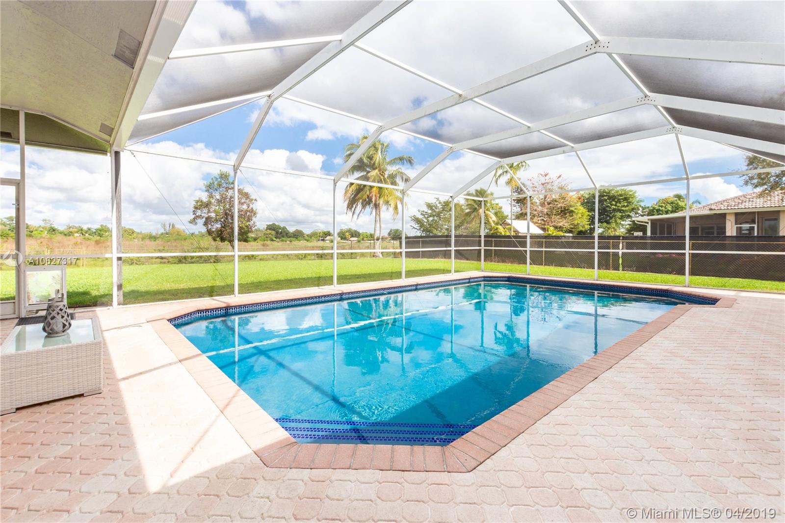 Beautifully renovated custom Home on a fenced builder’s acre in Davie – This meticulously maintained home features 5 bedrooms, 4 ½ bathrooms and study. Large spacious chefs’ kitchen. Brand new Impact windows & doors and 25-year roof with marble and porcelain tile flooring throughout. Entertain in oversized living areas with volume/vaulted ceilings or on the expansive patio featuring a resort style pool. Video security system. Spacious 3 car garage. Bring your 4 horses, boat, or RV. No HOA. Great schools. Country living near highways, shopping & restaurants.