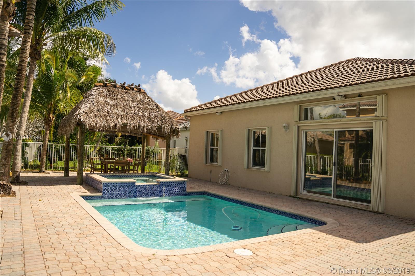 Don't miss this opportunity to own this beautiful 4br/2bh Pool home in the heart of Weston's Finest Community, Savannah. This home features large open family spaces, updated kitchen with granite countertops, split floor plan, quality laminate flooring throughout, newly remodeled bathrooms (2018), lovely pool & patio area with Tiki-Hut, accordion shutters, and nestled on quiet cul-de-sac. This home will not last, schedule showing today!