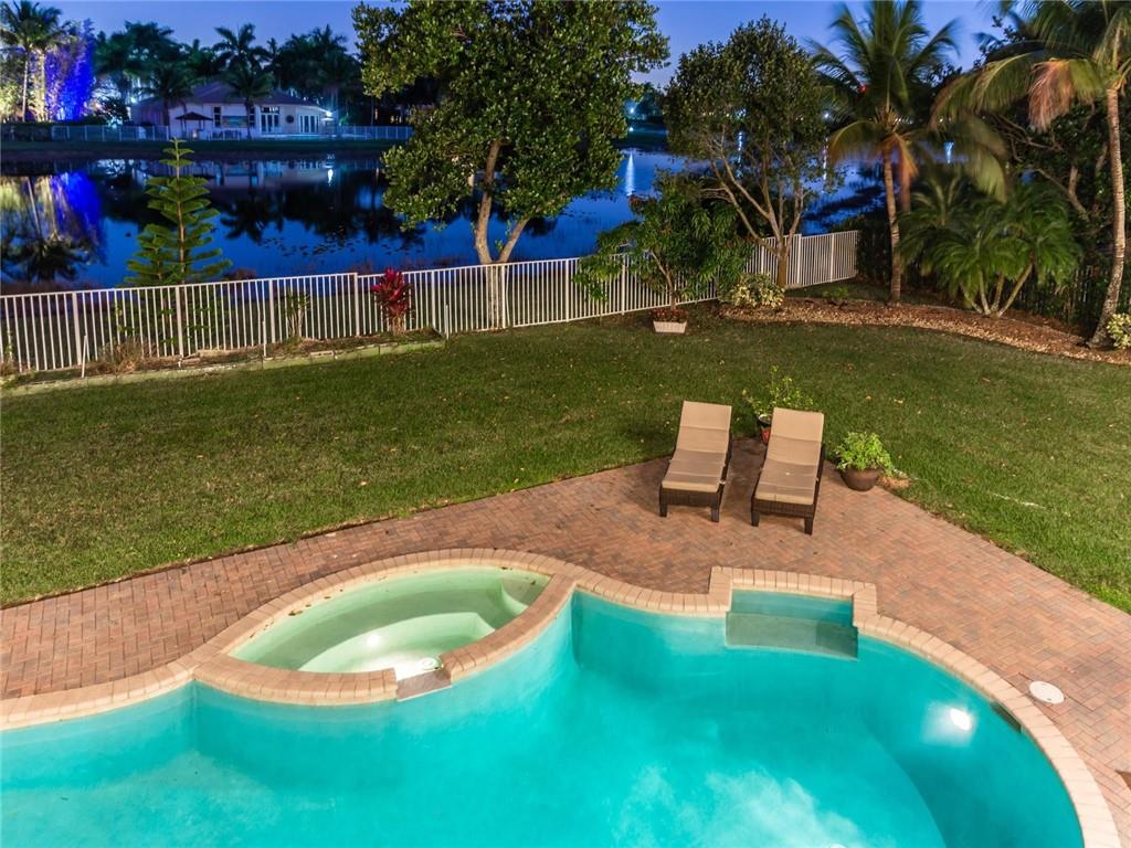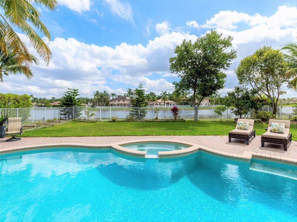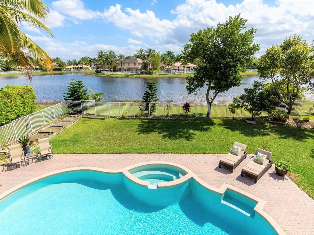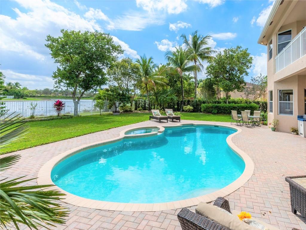 BEAUTIFUL SPACIOUS 6BD,5.5BA, 3CG TWO STORY HOME, APX 5400SF/AC, WITH DEN, PLAYROOM & IN-LAWS QUARTERS! SITUATED ON SPECTACULAR FULLY FENCED LAKEFRONT LOT, ALMOST HALF ACRE, W/HEATED POOL/SPA, BBQ GRILL! GRAND ENTRANCE W/WROUGHT-IRON SPIRAL STAIRCASE. HUGE MASTER SUITE W/GENEROUS SITTING AREA, OPENS TO BALCONY WITH BREATHTAKING LAKE VIEWS! CHEFS GRANITE/STAINLESS KITCHEN W/DOUBLE SINKS, DOUBLE OVENS, SUBZERO REFRIG, CENTER ISLAND, LARGE PANTRY. 2ND STAIRCASE LEADS TO KIDS WING. IN-LAWS QRT W/NEW PAINT & FLRS, 3ZONE AC, LED LIGHTING, UPSTAIRS WOOD LAM FLRS 2018. 3CG USED AS MUSIC RM, CAN CONVERT BACK. LOCATED ON CULDSAC RD IN THE COVE, MOST PRESTIGIOUS IN SAVNNA! RESORT CLUBHOUSE W/3 POOLS, WATERSLIDE, MINI GOLF, BBQ, TOTLOT, BALL PARKS, CAFE & MORE! A+ SCHOOLS! WELCOME TO WESTON!