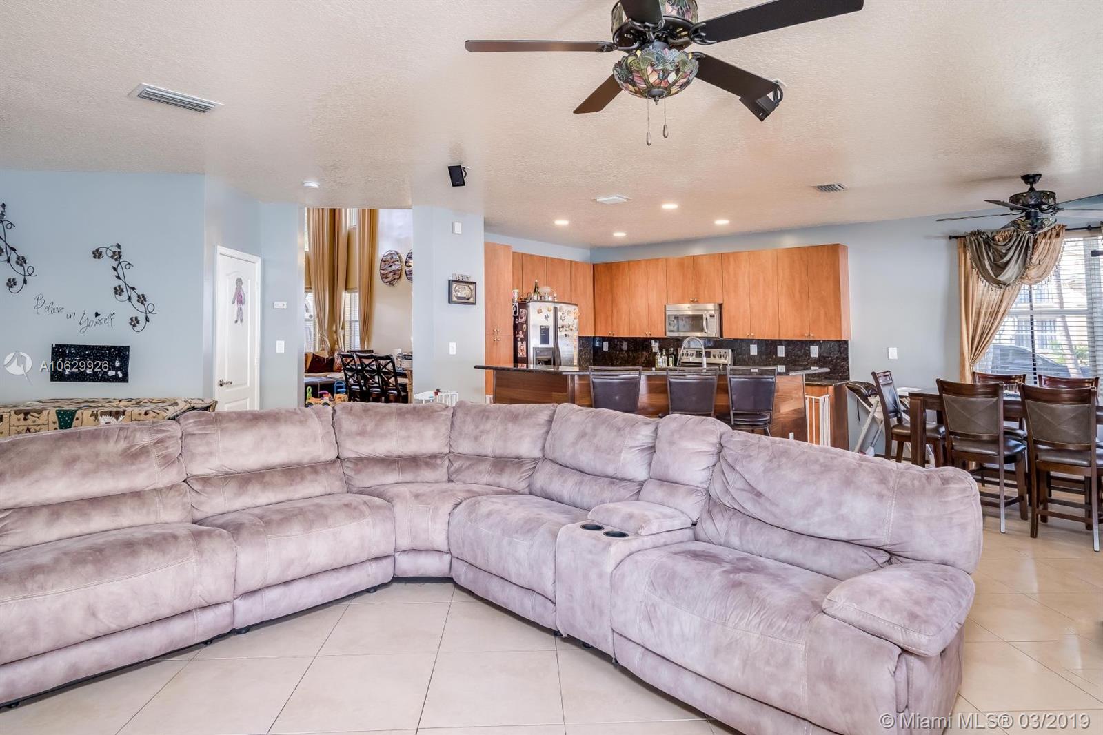 SPACIOUS CORNER LOT 4 BED HOME W/1 BED/1 BATH ON GROUND FLOOR. EAT IN KITCHEN W/42" CABINETS, GRANITE & STAINLESS. WOOD FLOORS IN LIVING, DINING RM & STAIRS, TILED EVERYWHERE ELSE, HIS/HER SINKS & CLOSETS, GORGEOUS WROUGHT IRON STAIRCASE, NEW A/C, TANKLESS WATER HEATER,PROF EXTERIOR PAINTING & SEALED DRIVE. UPGRADED LIGHT FIXTURES W/DIMMERS, INSTALLED USB PORTS THROUGHOUT, SEPARATE FAMILY RM & LAUNDRY RM W/SINK, SMALL "LOFT" AREA UPSTAIRS, GARAGE IS EVERY MANS DREAM W/LIFT, FLOORING & PORTABLE ELECTRIC SOURCE, $14,000 WINDOW TREATMENTS, CEILING FANS, VIDEO SURVEILLANCE SYSTEM/MONITOR CAN BE VIEWED ON MOBILE APP, KEYLESS ENTRY THROUGH GARAGE, ACCORDIAN HURRICANE SHUTTERS, CONTROL GARAGE DOORS W/APP & ALL STAYING W/HOME. SCREENED PATIO. CLOSE TO SCHOOLS, SHOPPING, TURNPIKE & I-75. COMM POOL