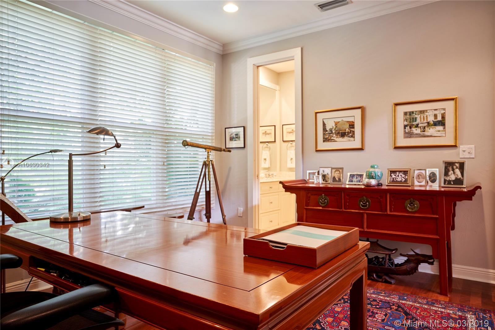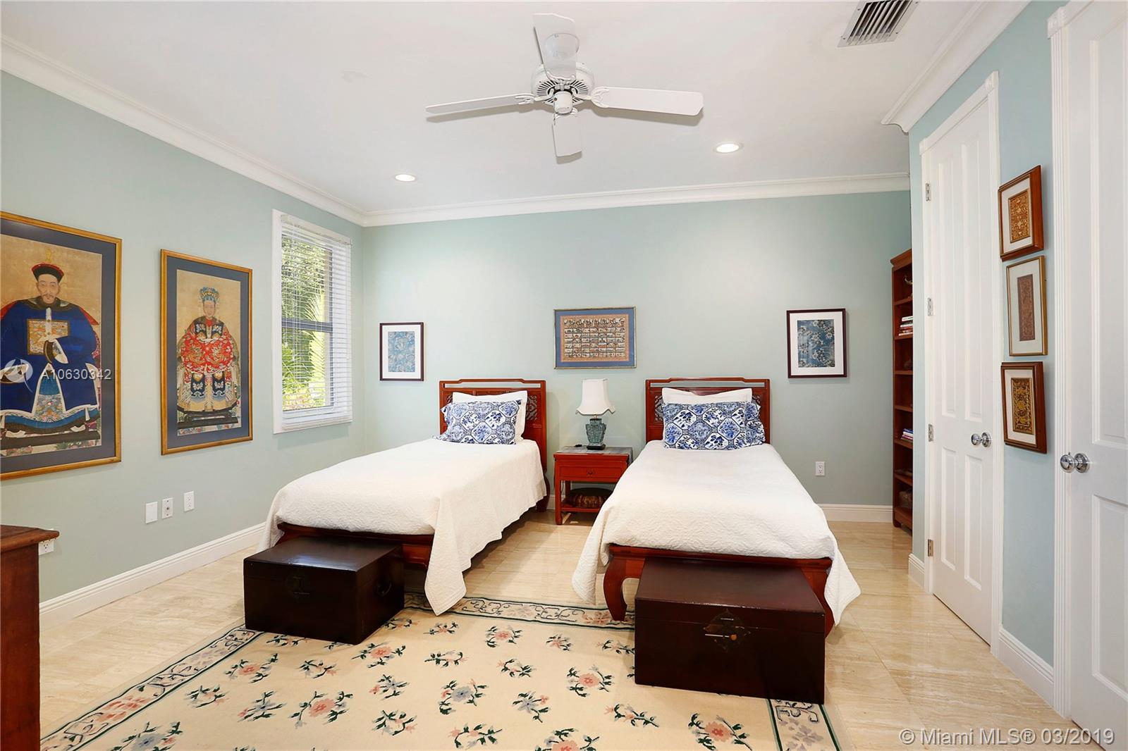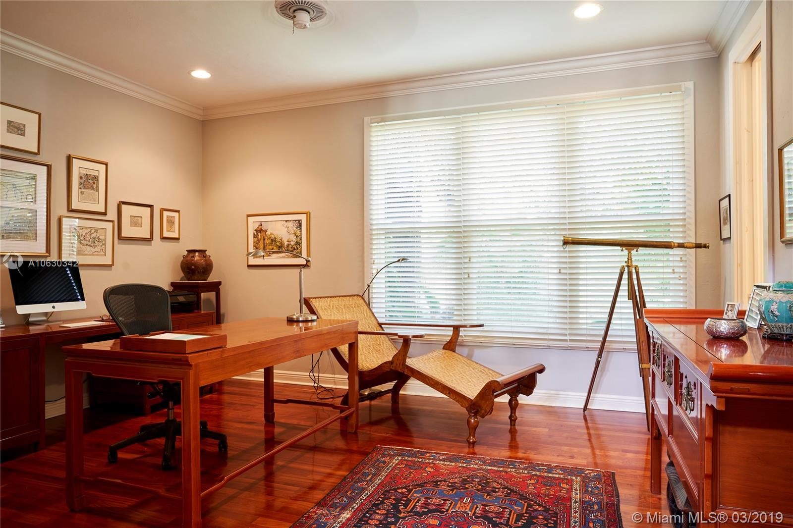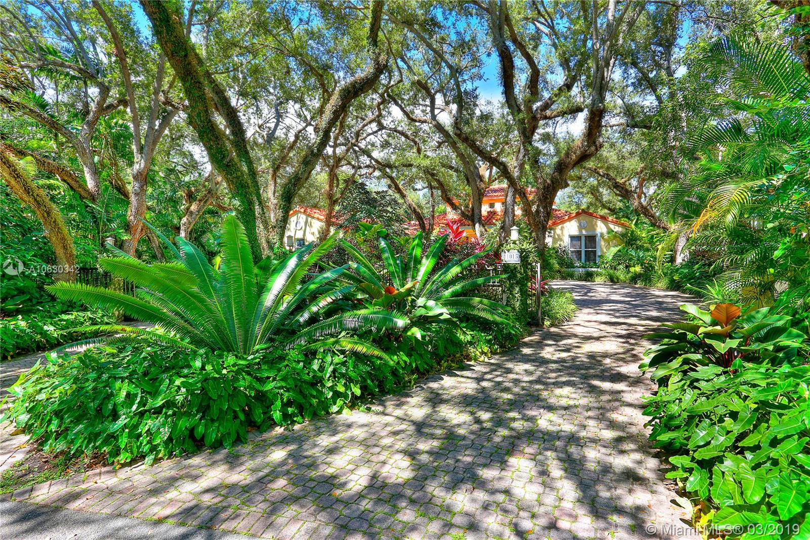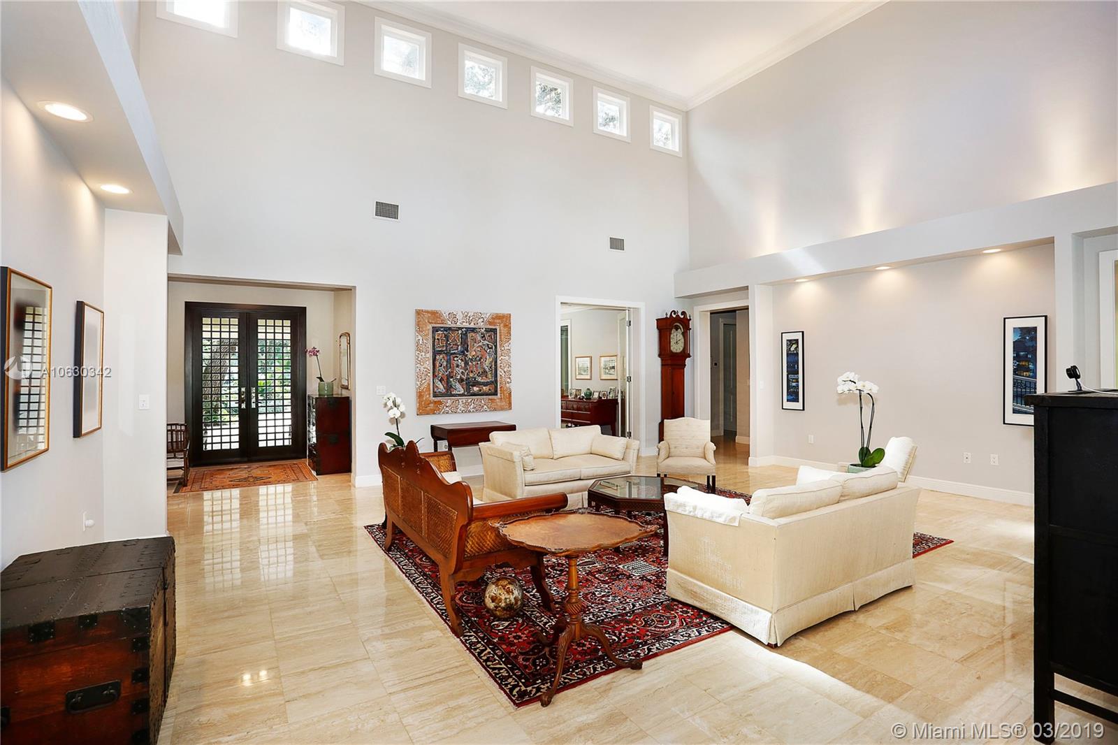 Absolutely beautiful home on private tree lined street in South Gables. This 5 bedroom, 6 bathroom home has been exquisitely updated including a newly enclosed family room, new gourmet kitchen, new master bathroom, full house generator, and impact glass windows and doors. Magnificent oaks and lush landscaping welcome you into this gated property and fabulous one story house with center great room with vaulted ceilings. Generous rooms and split plan make this home so wonderfully livable! The backyard features a newly resurfaced pool, covered patio and outdoor summer kitchen with cabana bath, all on the most private 27,000+ square foot lot. 2 car garage, laundry room, gym, and Pinecrest Elementary!