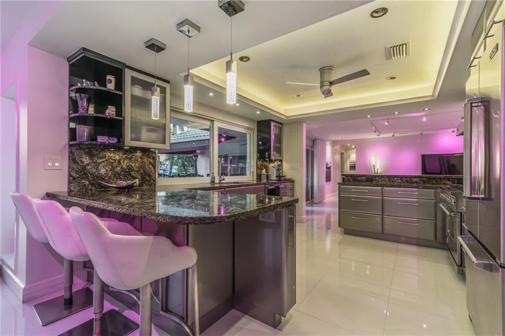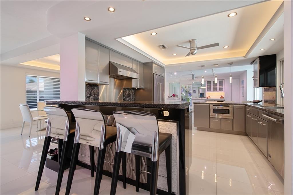 Stunning space and security on spectacular 33rd Ave! Completely rebuilt with every luxury desirable. Brand new electrical, plumbing, impact windows, kitchen, baths, dock, seawall - brand new everything. White porcelain flooring throughout, Venetian plaster and multi-color LED lighting add to the ambiance and relaxed atmosphere. House has natural gas with a full house generator. Kitchen completely redone with custom cabinetry and chiseled granite edges. Viking appliances throughout - gas stove. Bathrooms all done with imported stone and high-end waterfall faucets. Outside enhanced with Platinum mosquito system, fire pit and speakers for entertaining. Full house security with cameras, air-conditioned garage. Located on one of the most desirable streets in Fort Lauderdale.